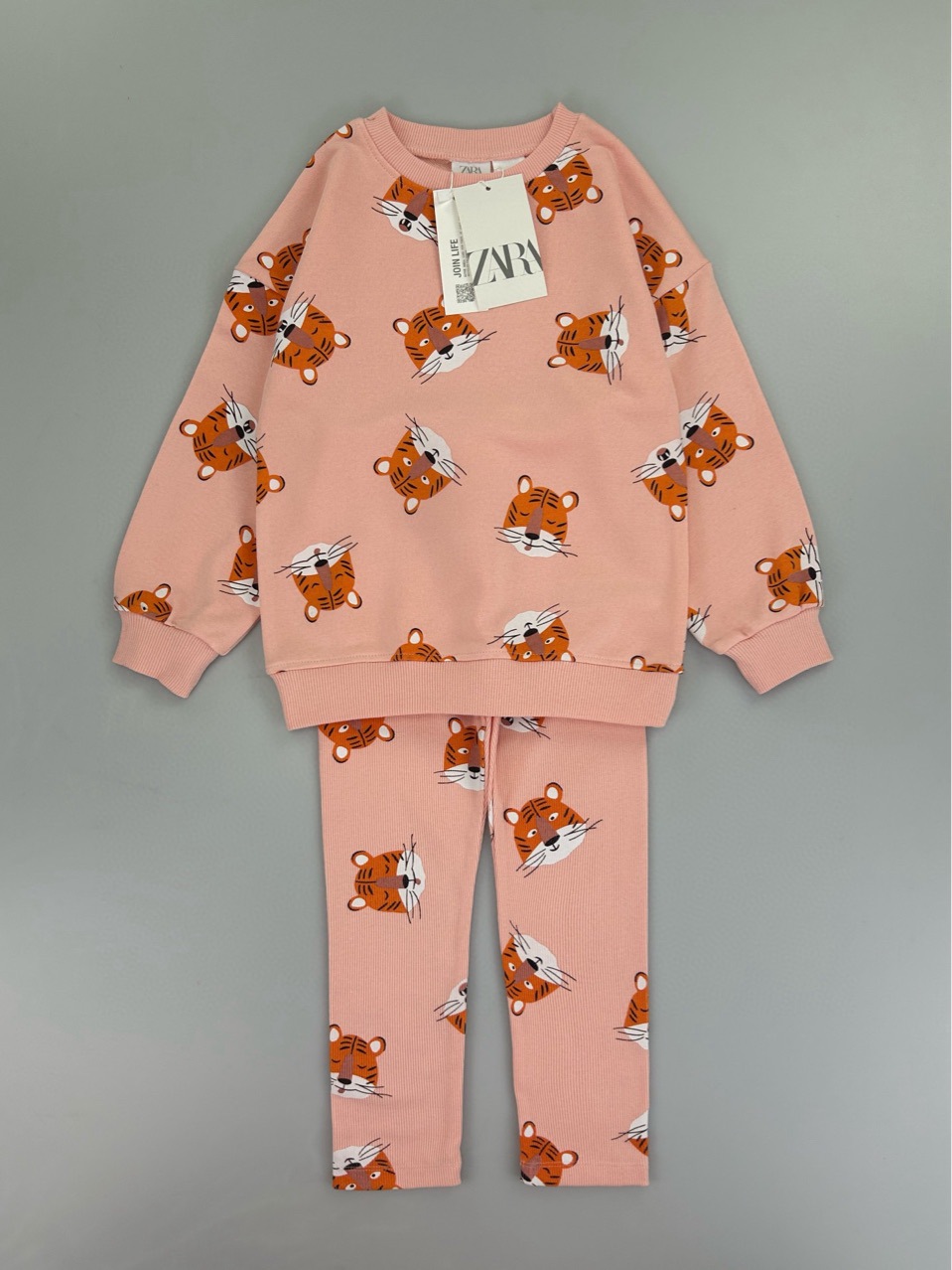 소녀 어린이 2024 새로운 가을베이스 라운드 넥 느슨한 한국 스타일 소녀 패션 전체 인쇄 어린이 세트 트렌디스토어 가기