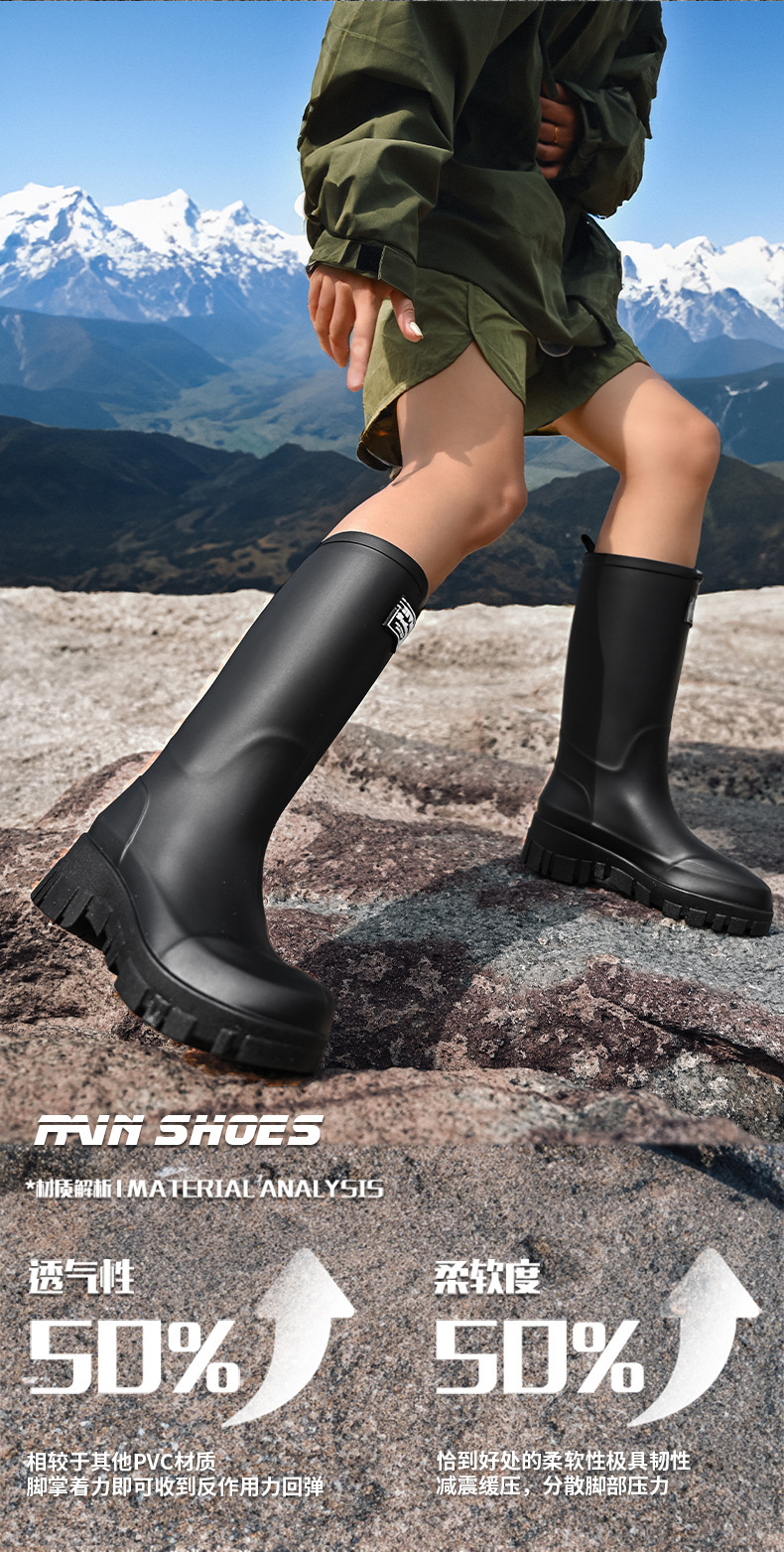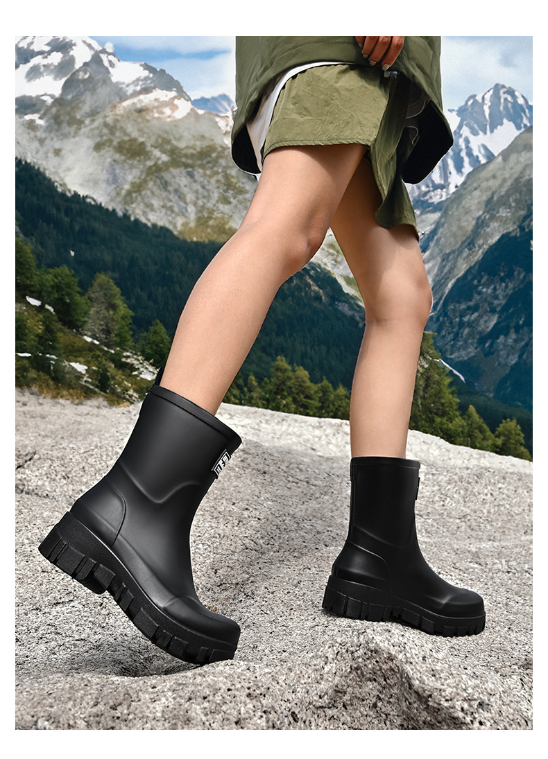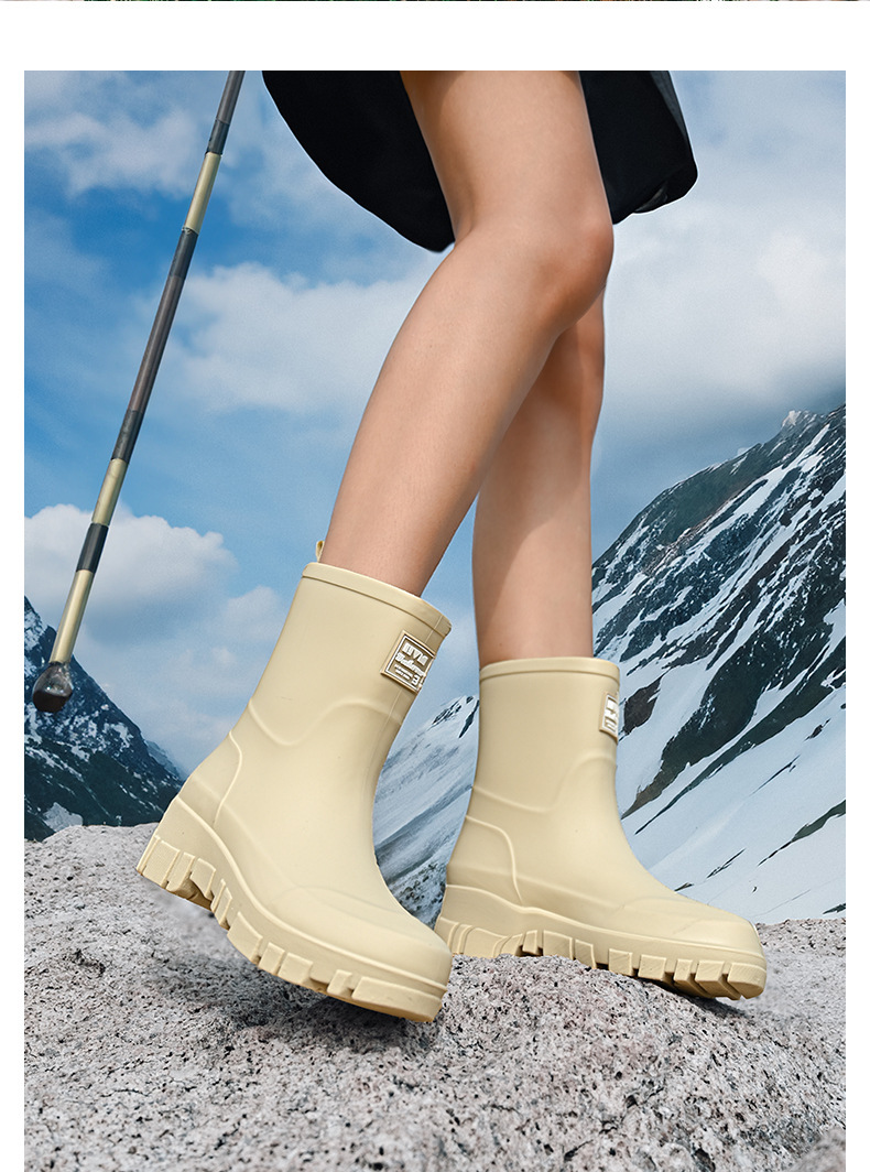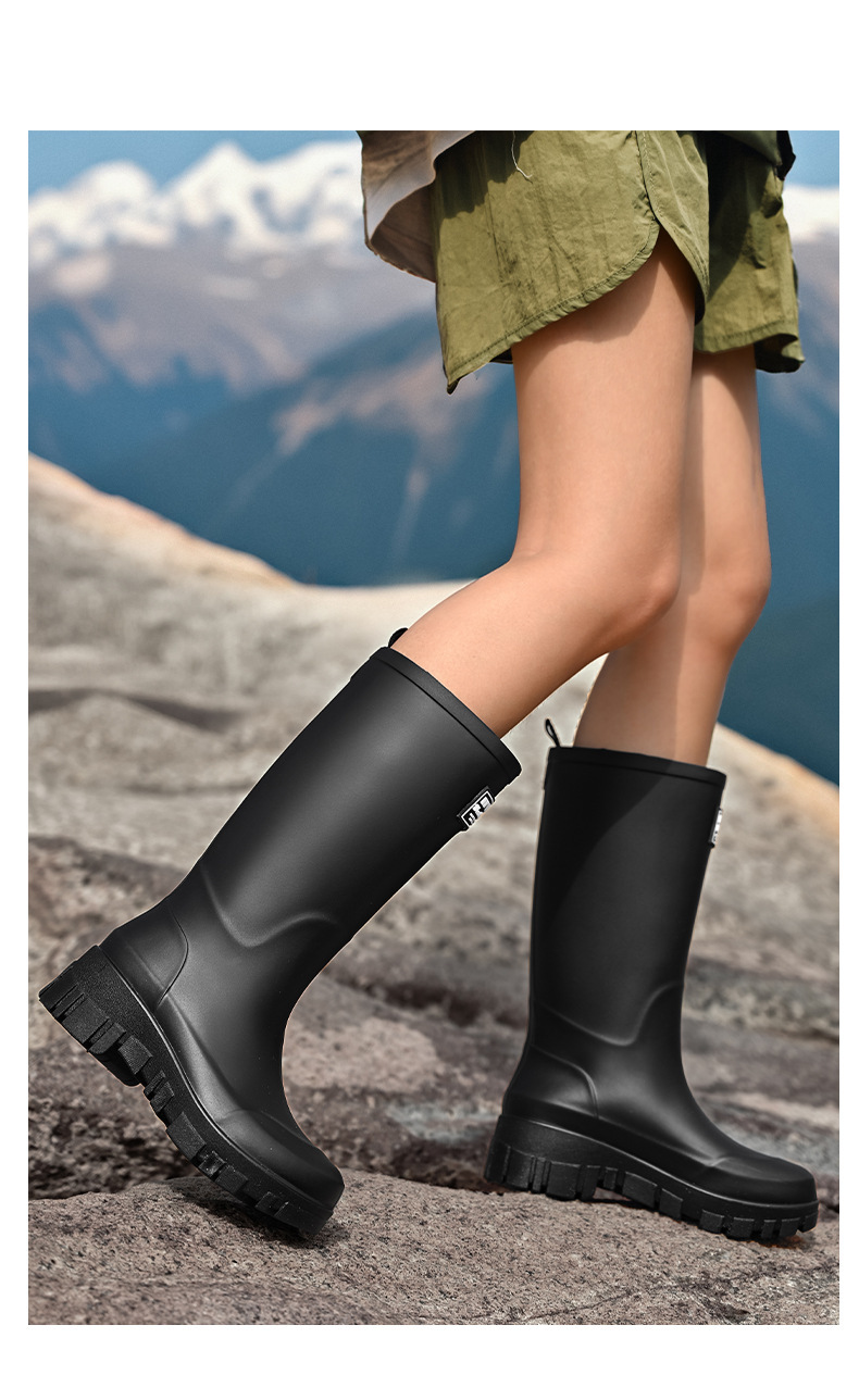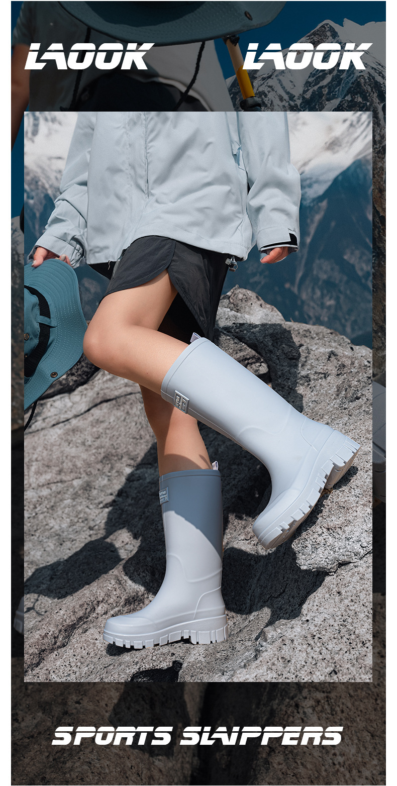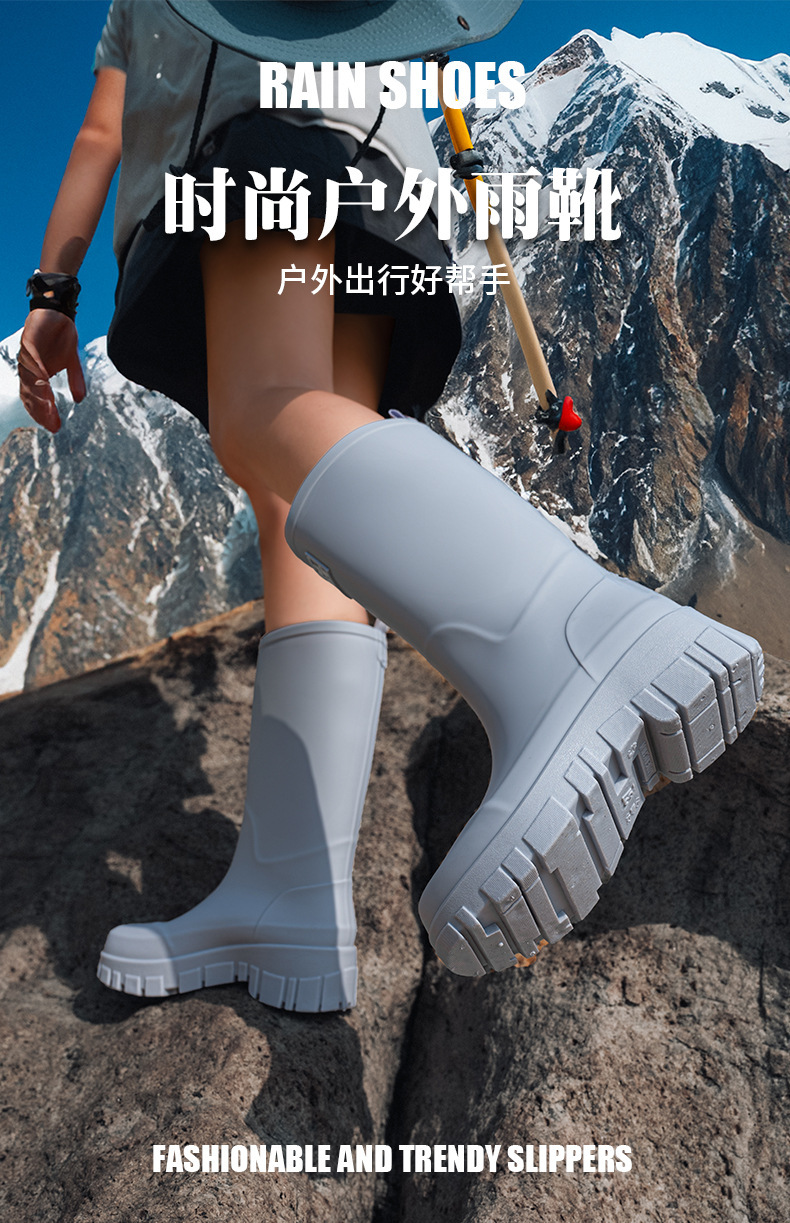 국경 간 패션 장화 여성 두꺼운 밑창 내마모성 미끄럼 방지형 워터 슈즈 한국식 중고 캠핑 장화 방수 세차화