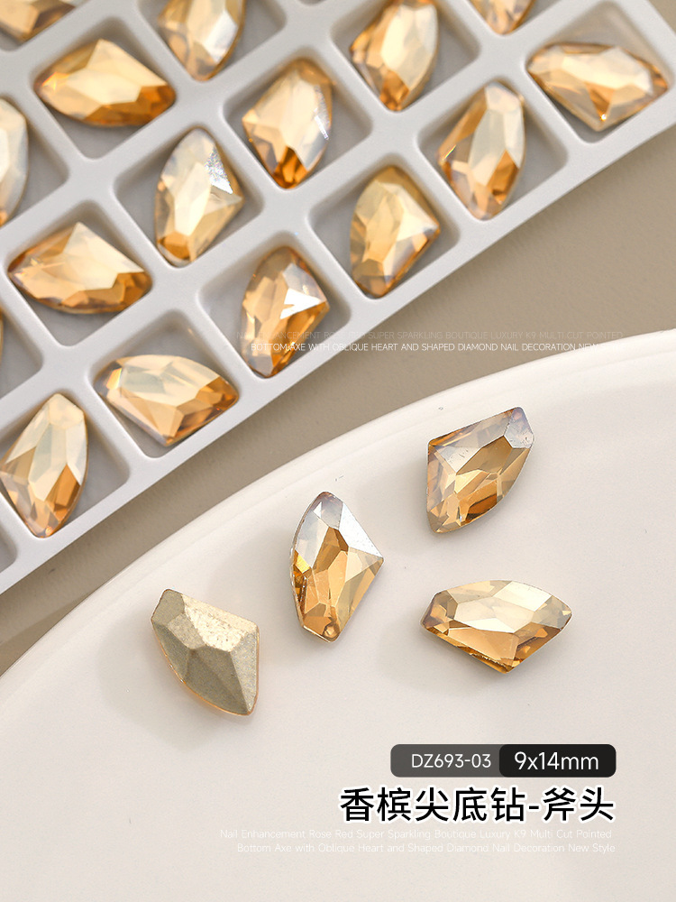 샴페인 매니큐어 다이아몬드 Maillard 포인팅 다이아몬드 스테레오 슈퍼 플래시 크리스탈 다이아몬드 쥬얼리 K9 네일 장식