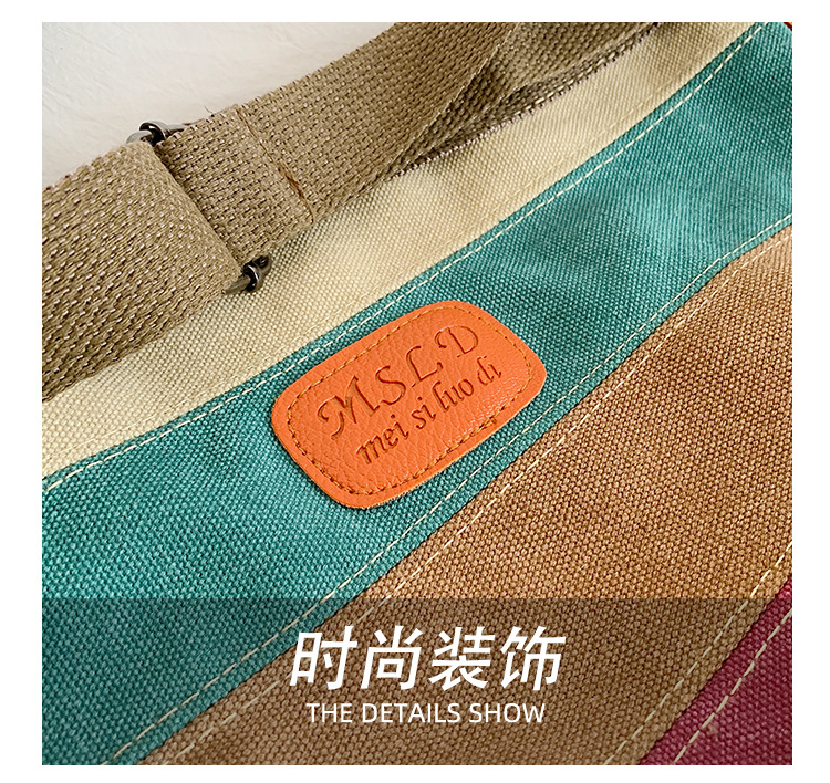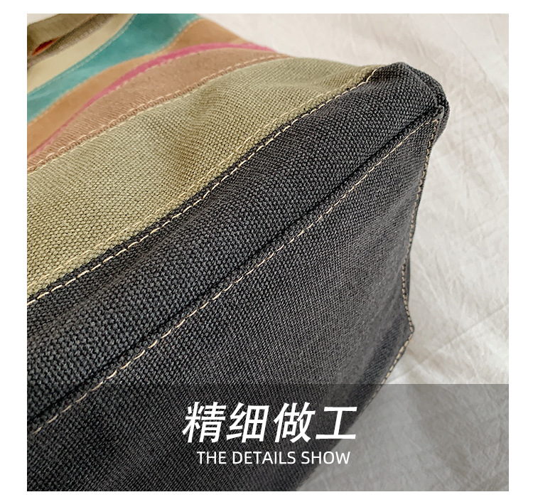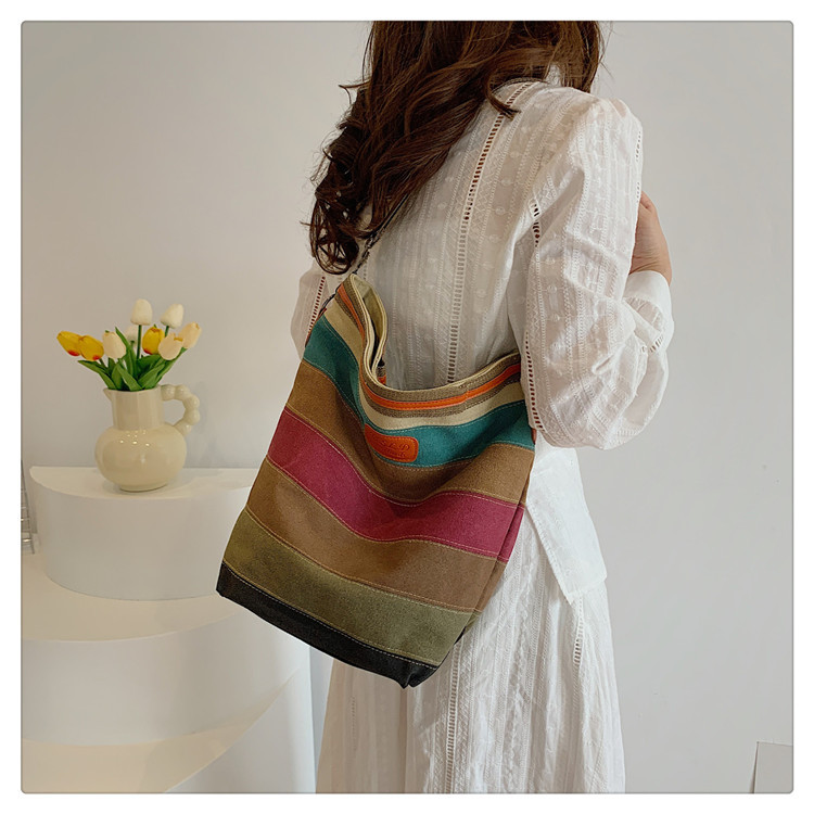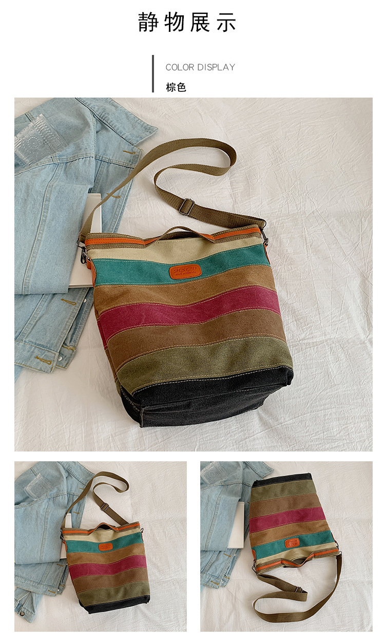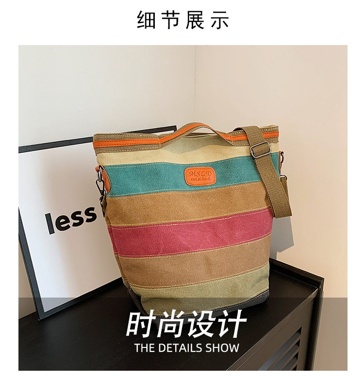 국경 간 버킷 패션 캐주얼 어깨 휴대용 여성용 가방 새로운 한국식 캔버스 가방 대비 컬러 스티칭 크로스 바디 스트라이프 백스토어 가기