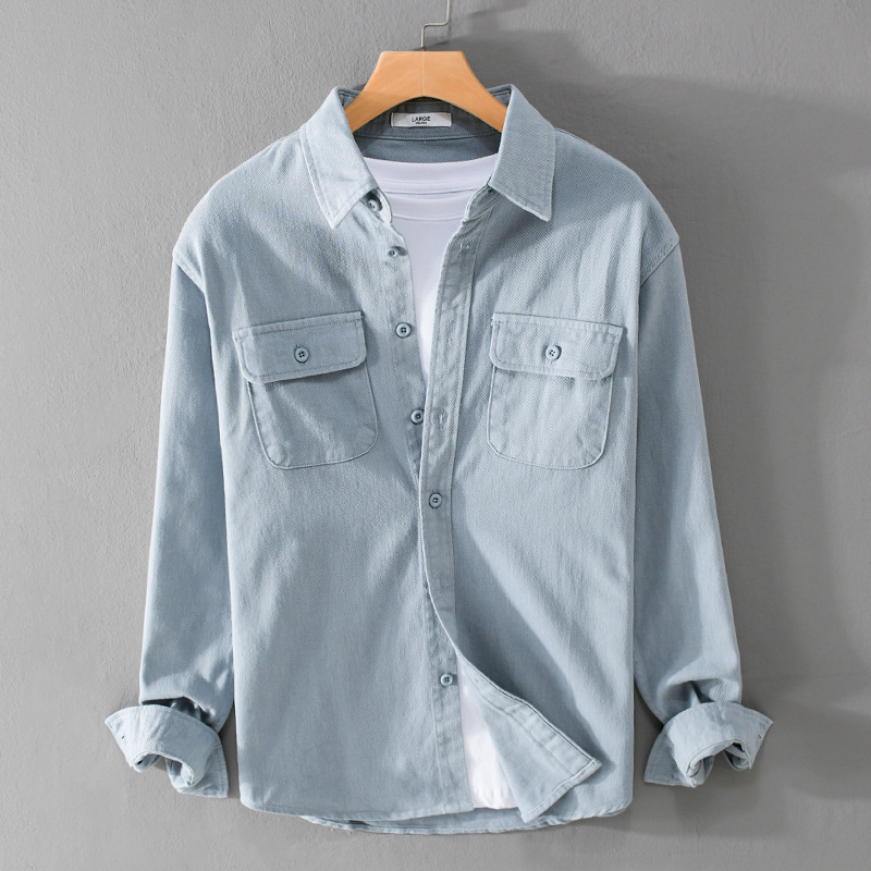 가을과 겨울 남자 간단한 캐주얼 긴팔 셔츠 느슨한 청소년 인기 올매치 편안한 면 남자 셔츠 9653