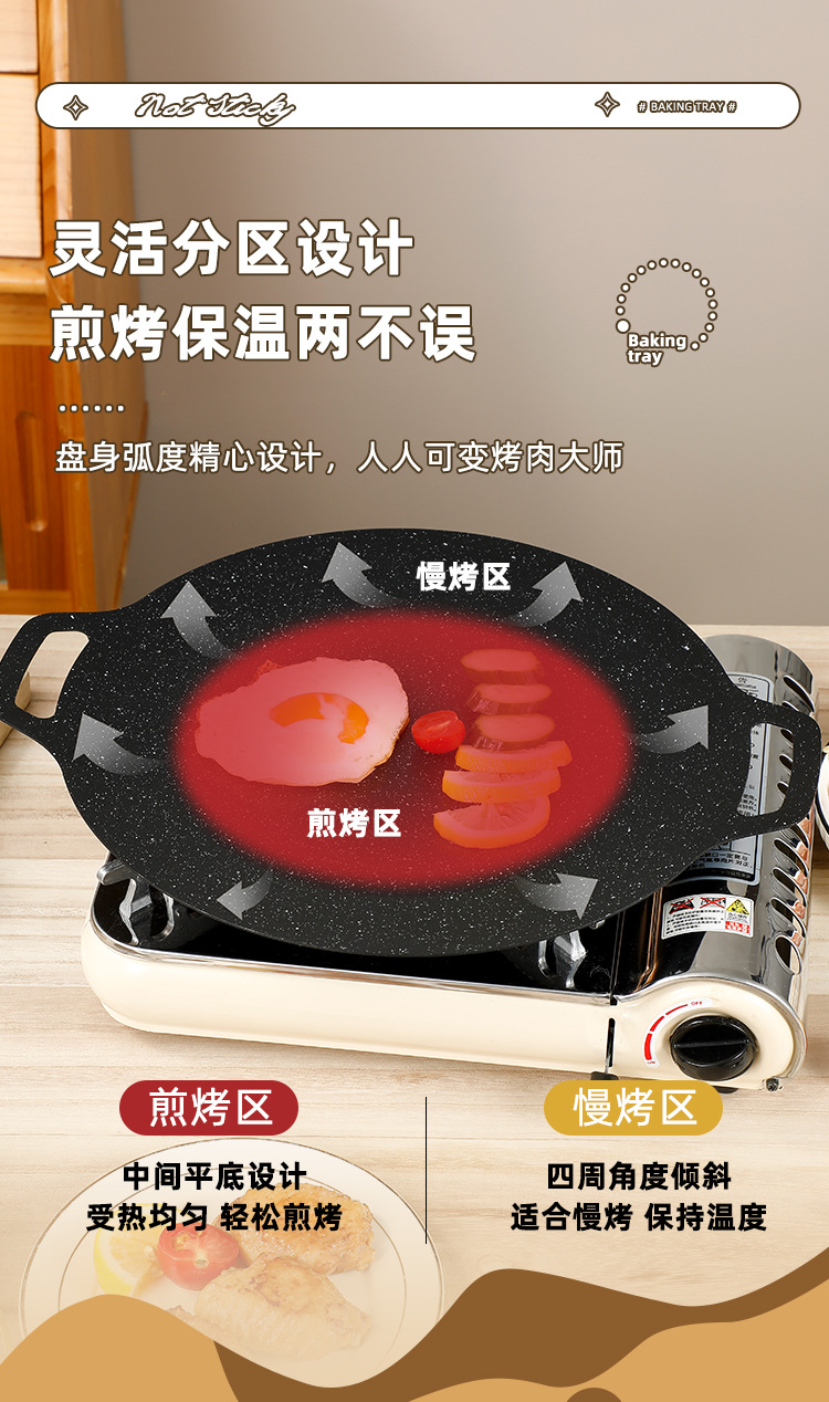 가정용 바베큐 접시 야외 휴대용 캠핑 바베큐 접시 한국 비 스틱 바베큐 냄비 Teppanyaki 둥근 계란 접시