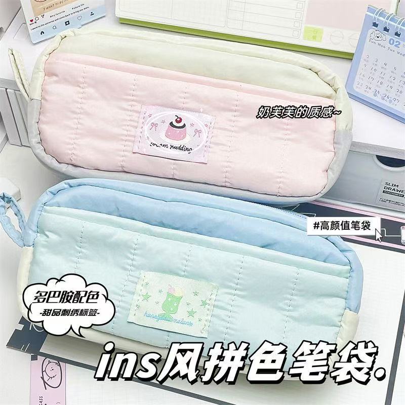 빨간 승마 책 폭발성 소프트 후푸 푸딩 컬러 매칭 연필 가방 Ins 스타일 간단한 높은 색상 가치 대용량 학생 문구 가방스토어 가기