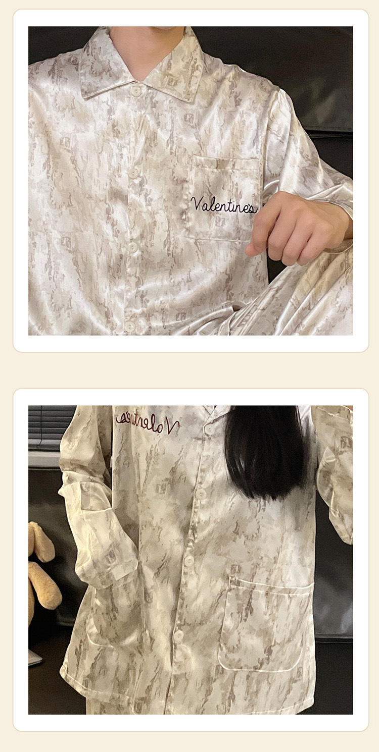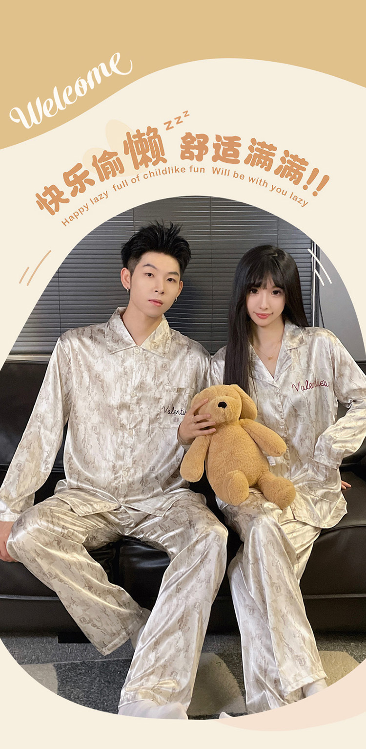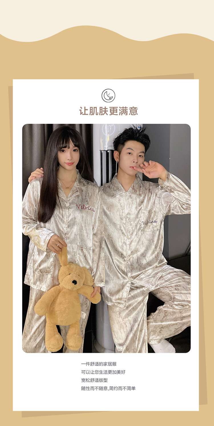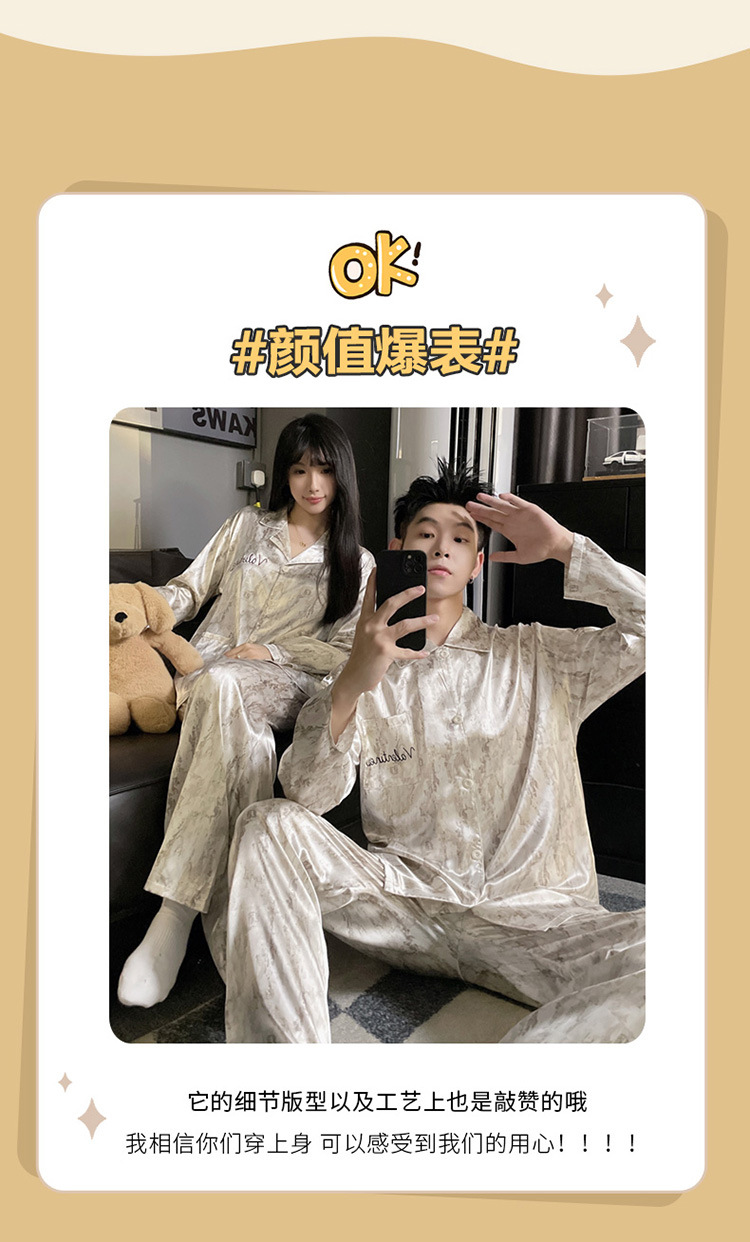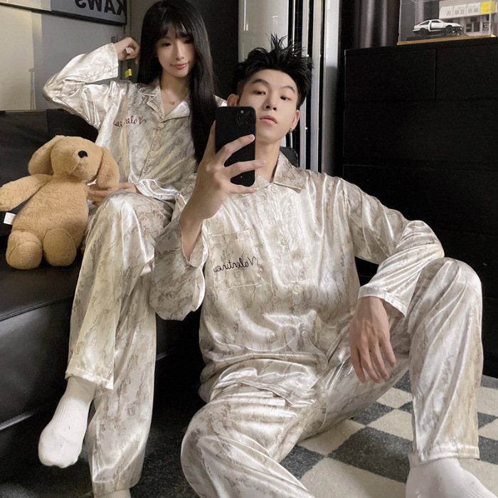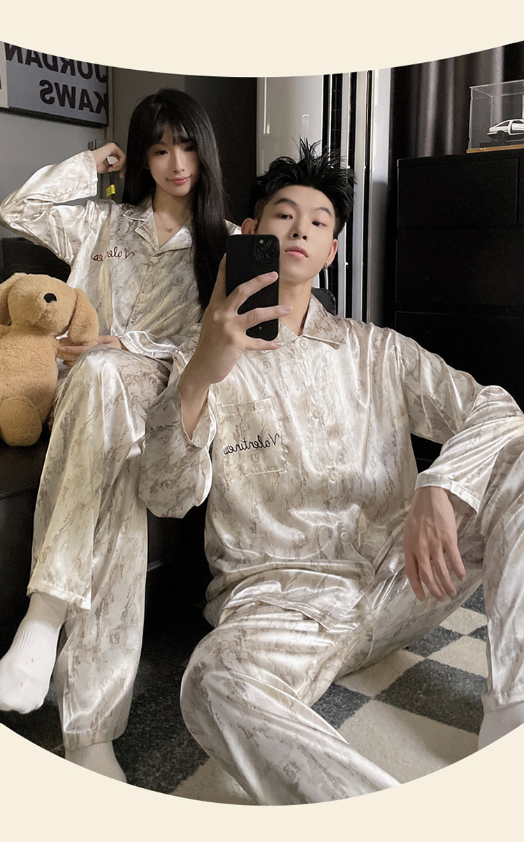 커플 잠옷 봄과 가을 아이스 실크 긴 소매 여성의 하이 엔드 뉴 남성용 얇은 여름 홈 의류 세트 실크스토어 가기