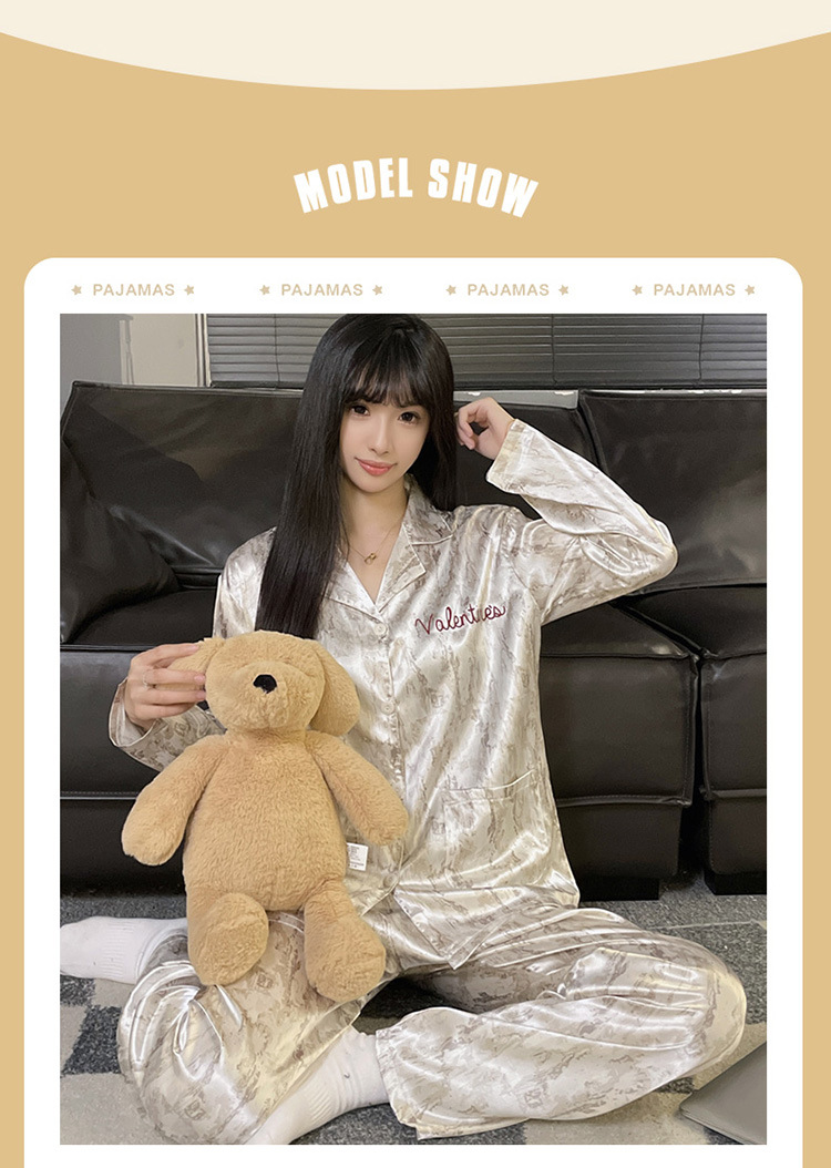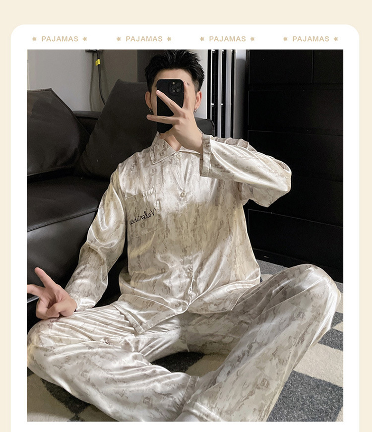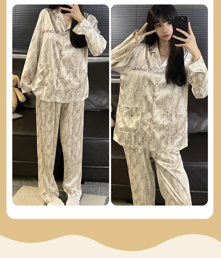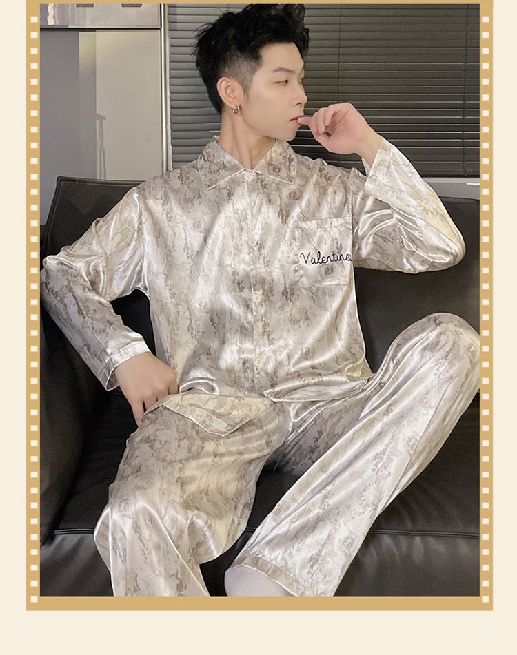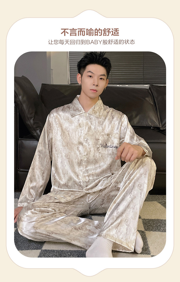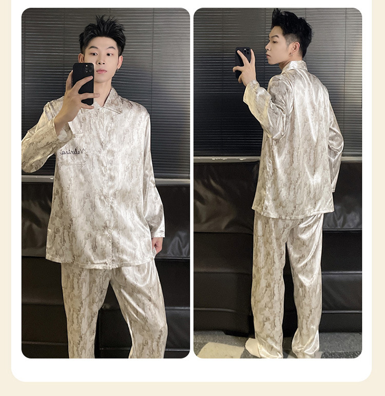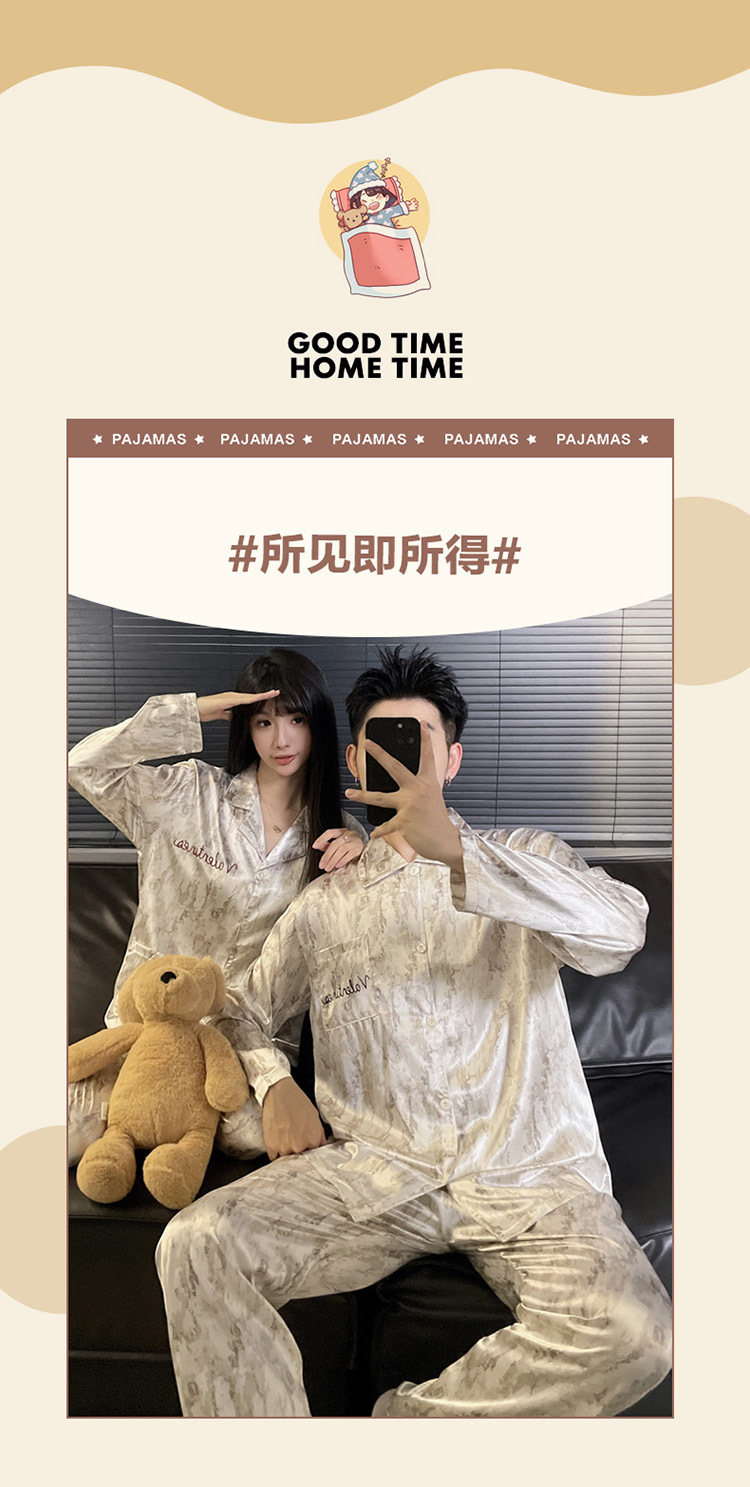 커플 잠옷 봄과 가을 아이스 실크 긴 소매 여성의 하이 엔드 뉴 남성용 얇은 여름 홈 의류 세트 실크스토어 가기