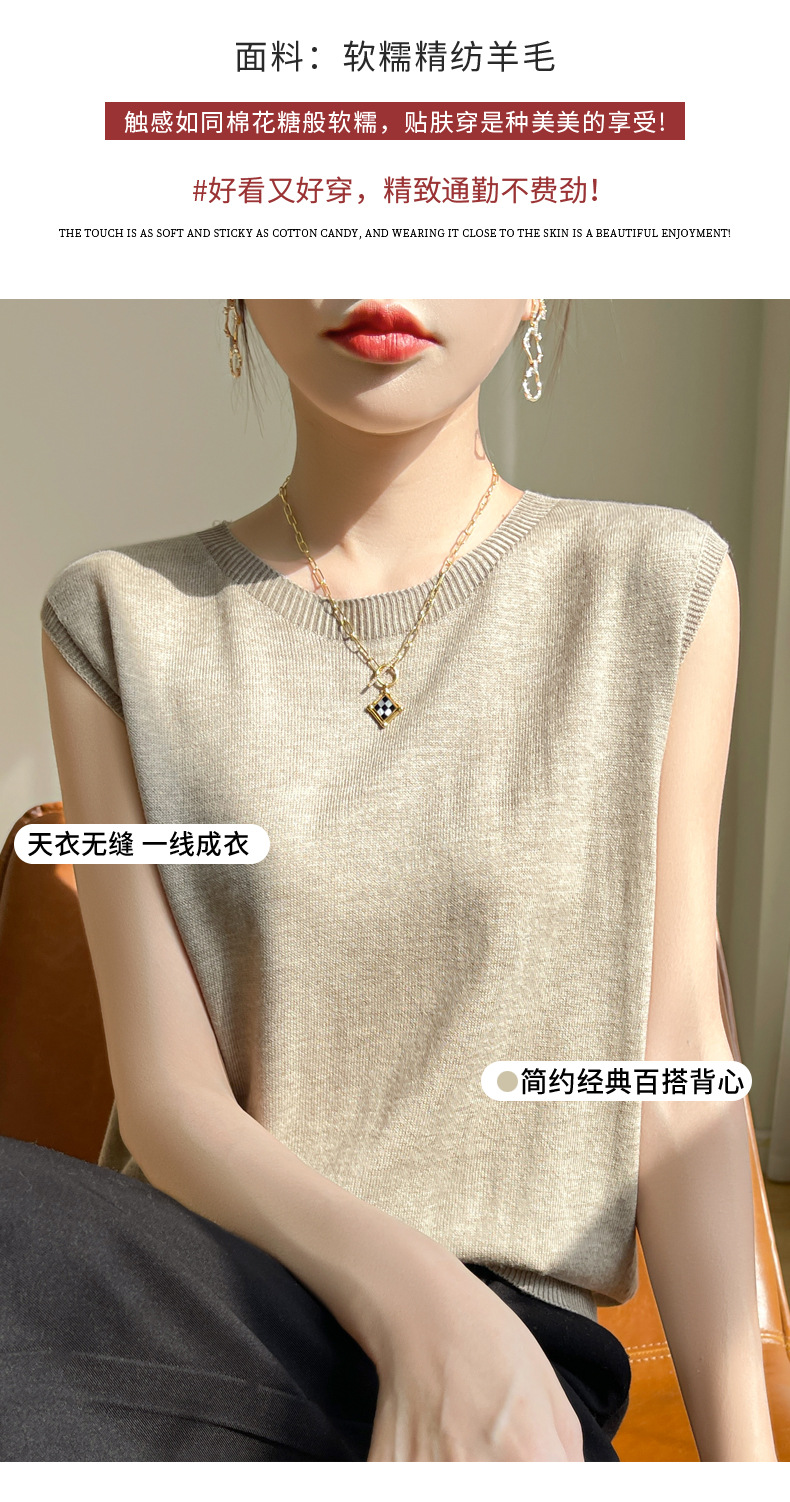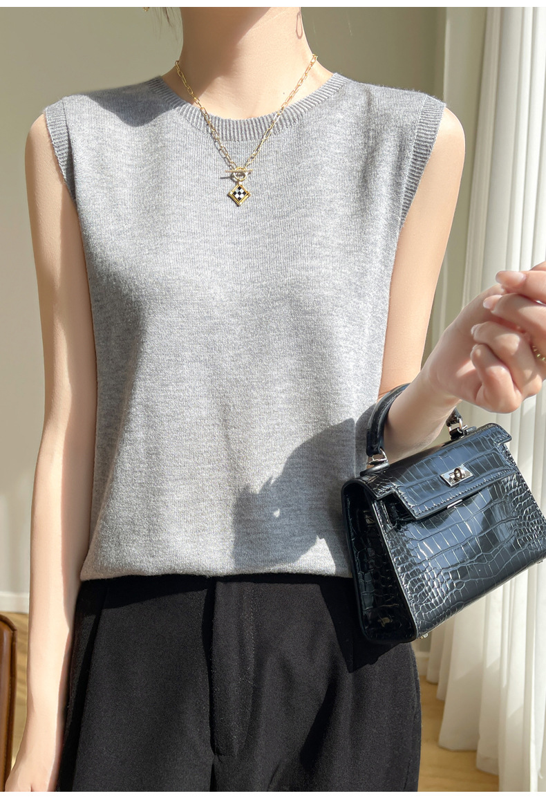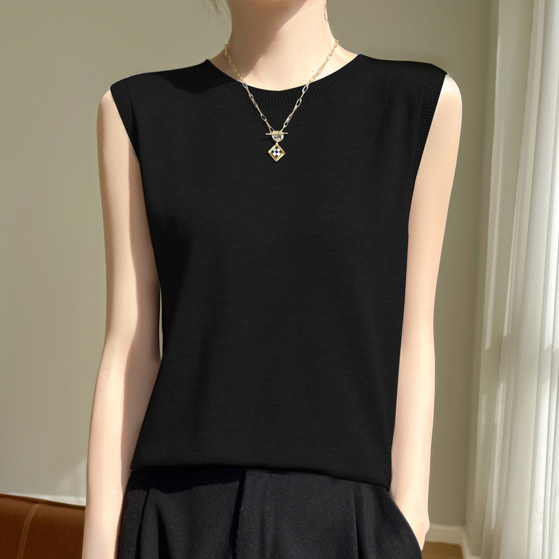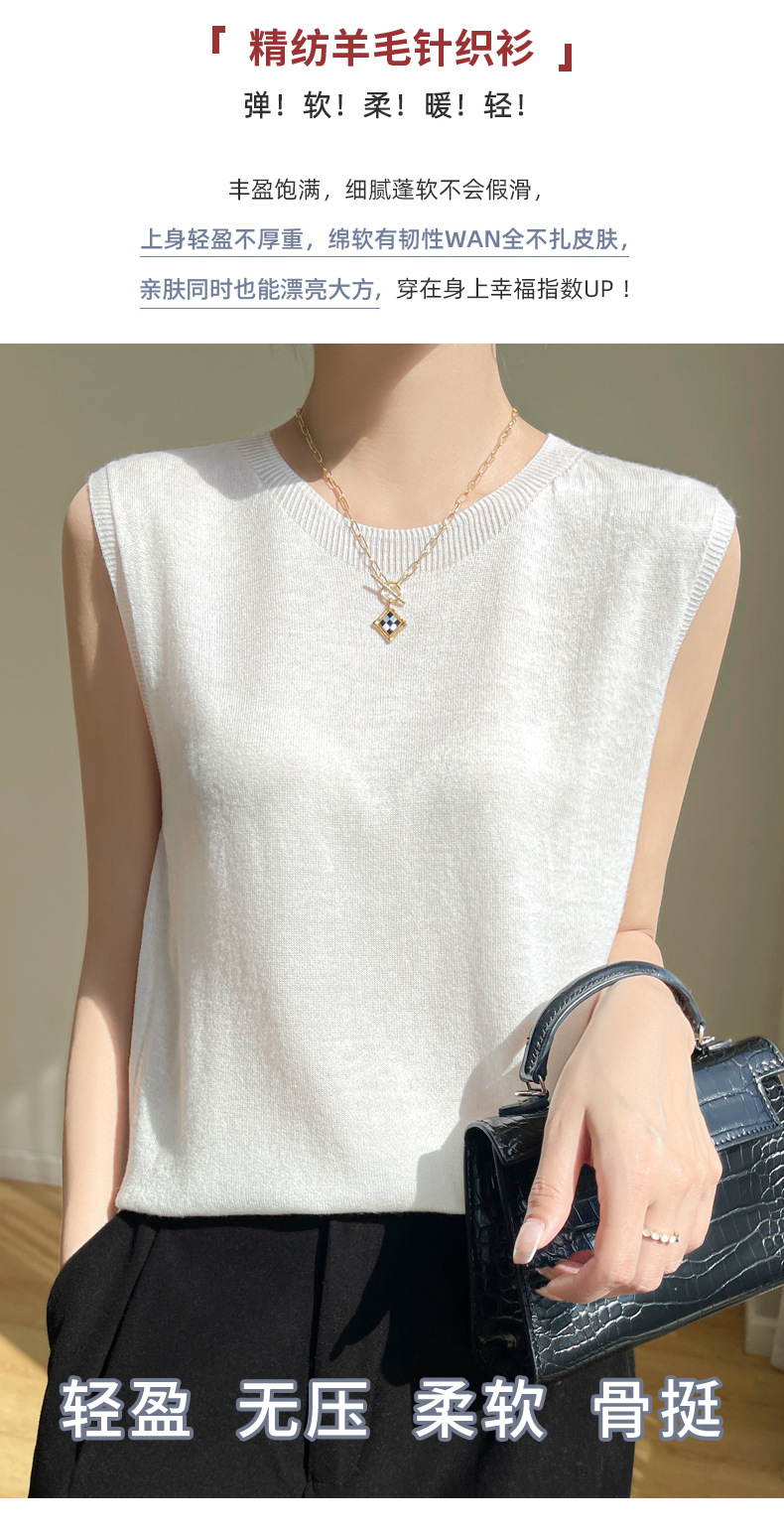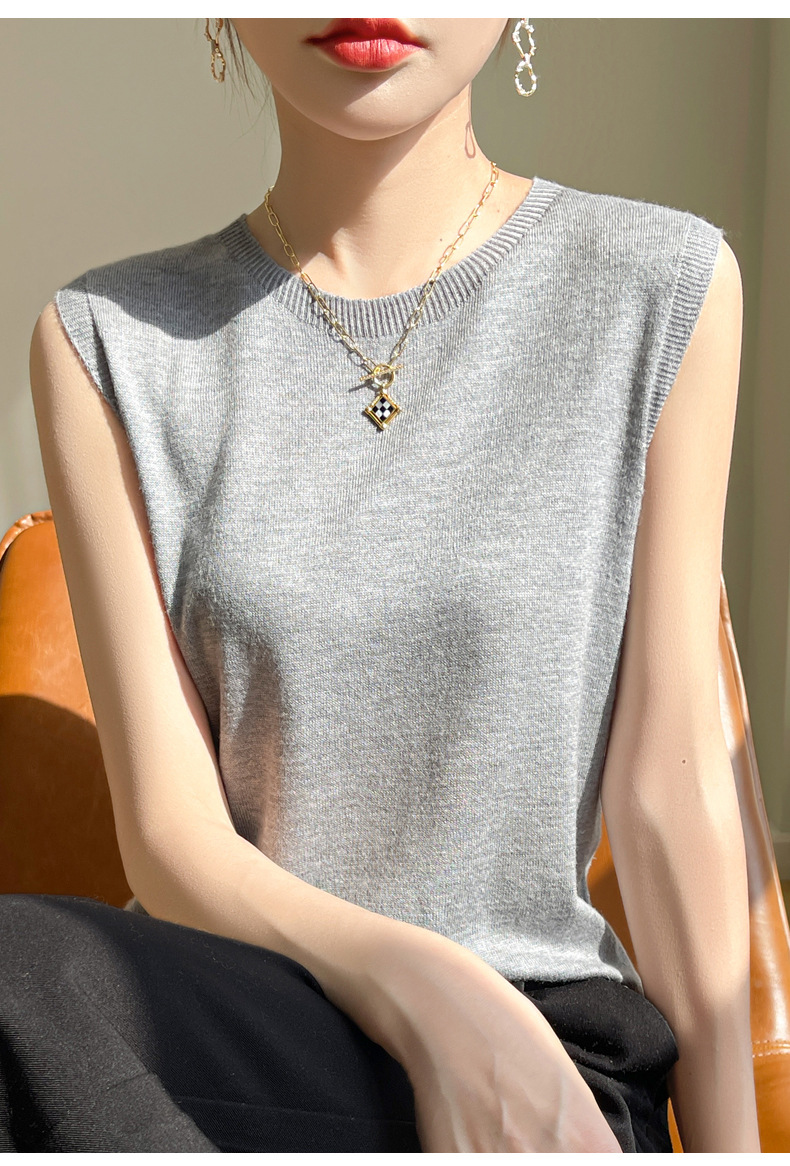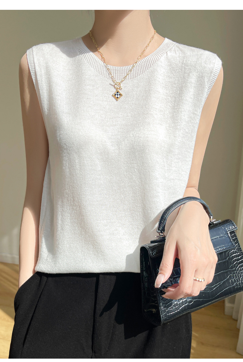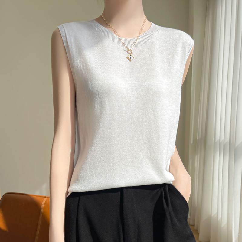 2024 년 여름 새로운 라운드 넥 Worsted 울 1 라인 의류 스웨터 여성 민소매 조끼 기질베이스 셔츠