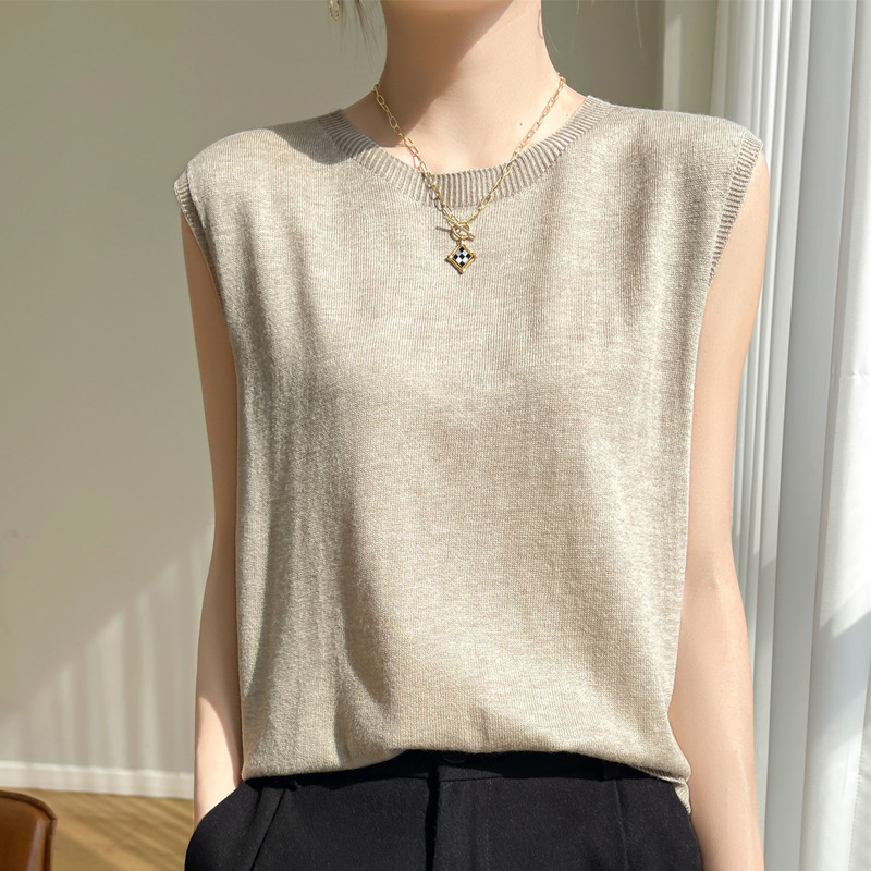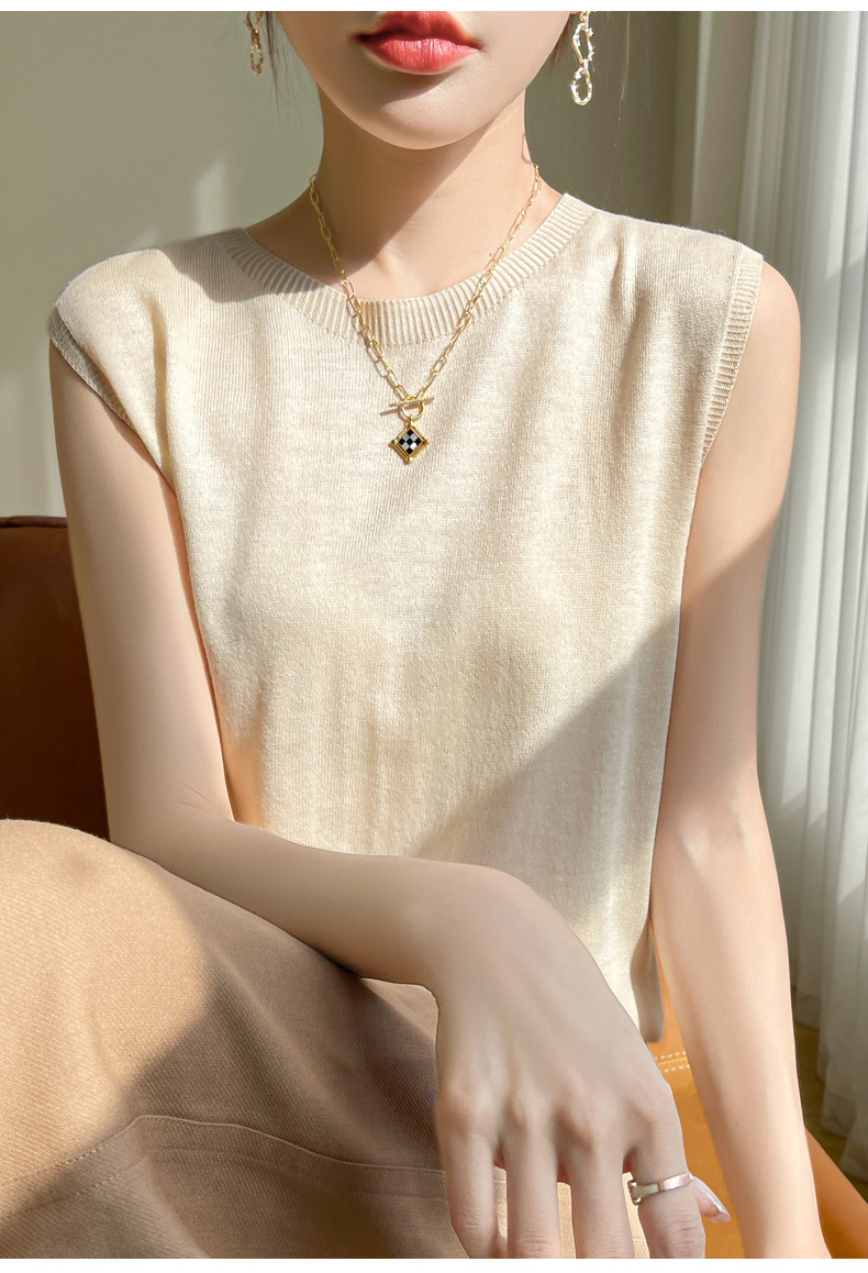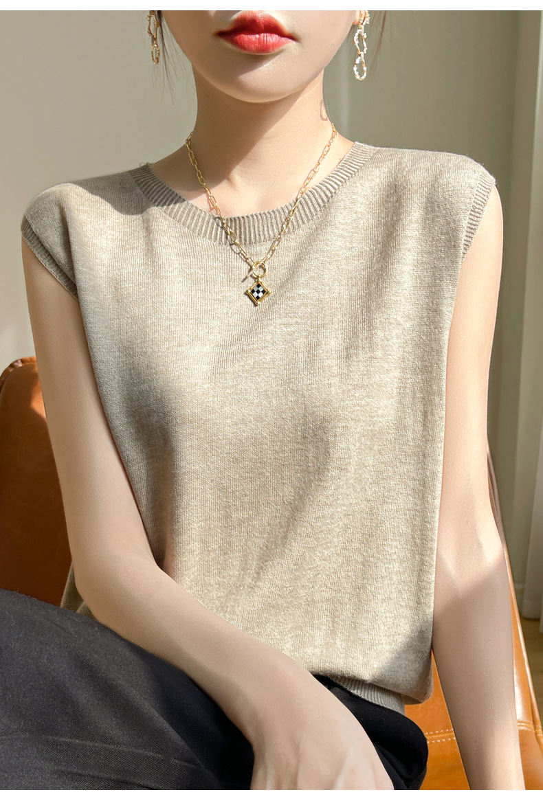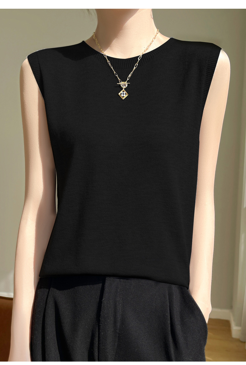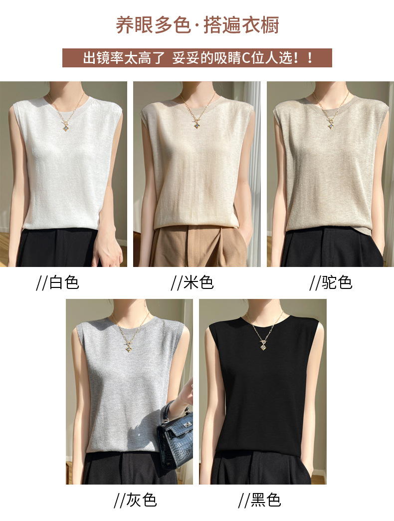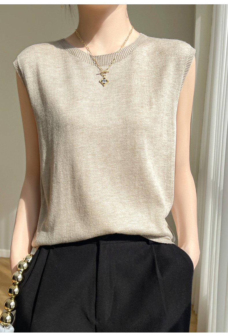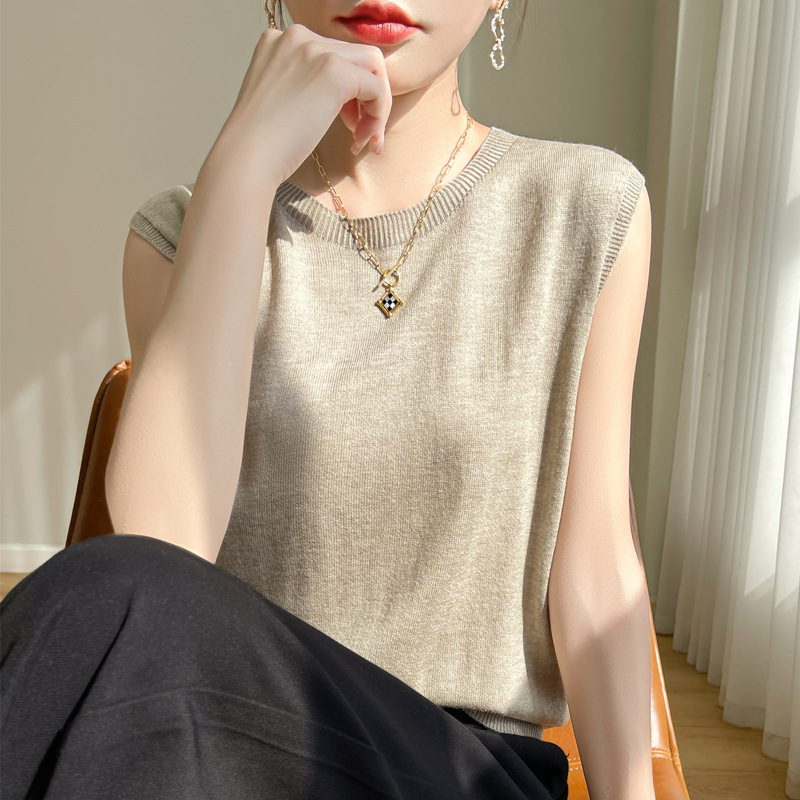 2024 년 여름 새로운 라운드 넥 Worsted 울 1 라인 의류 스웨터 여성 민소매 조끼 기질베이스 셔츠