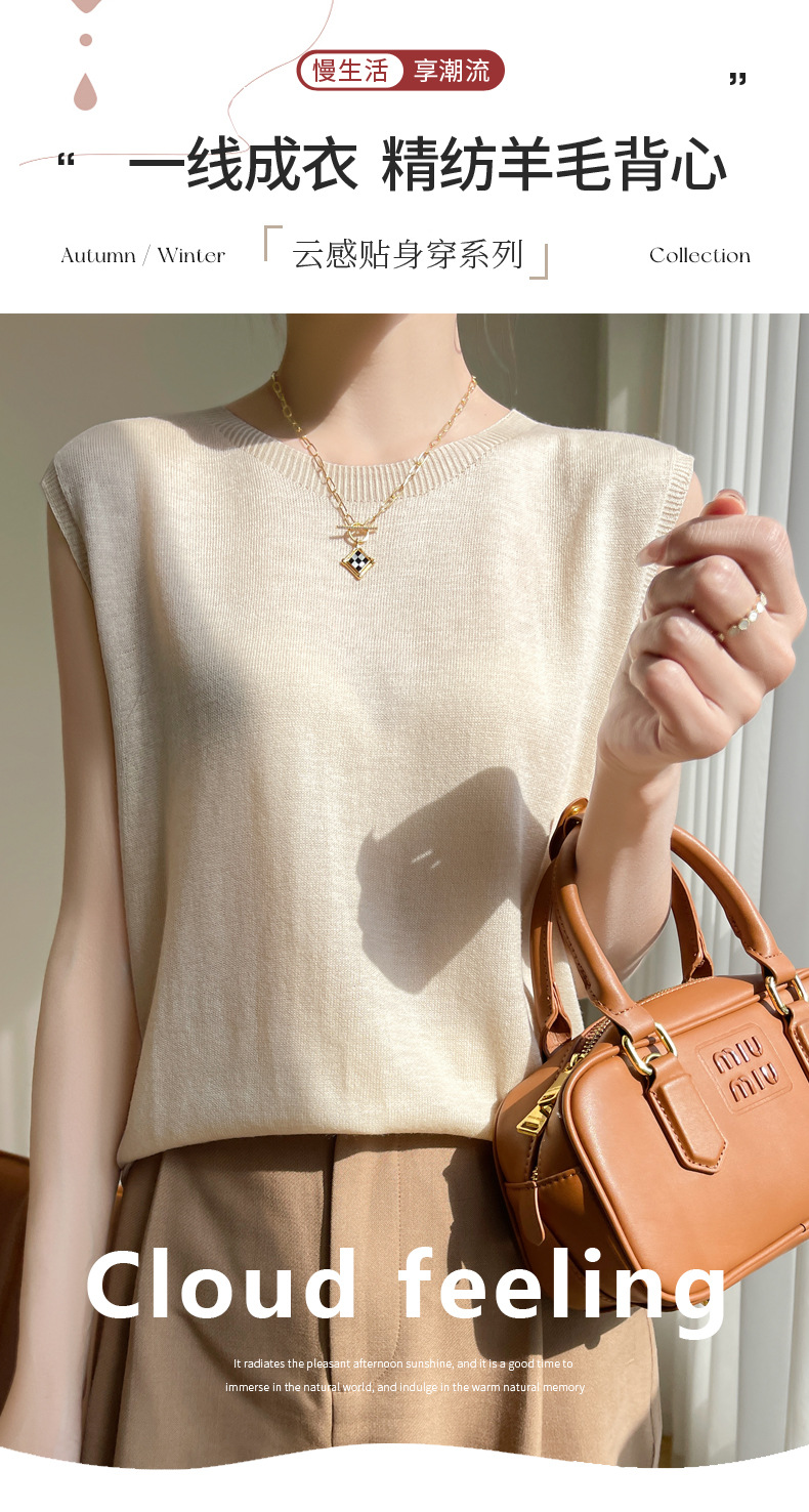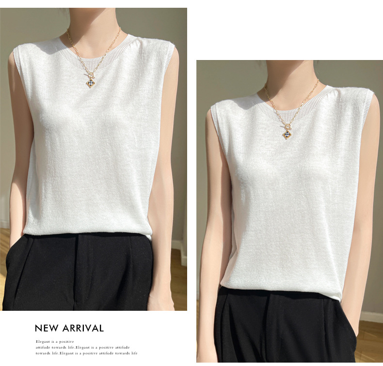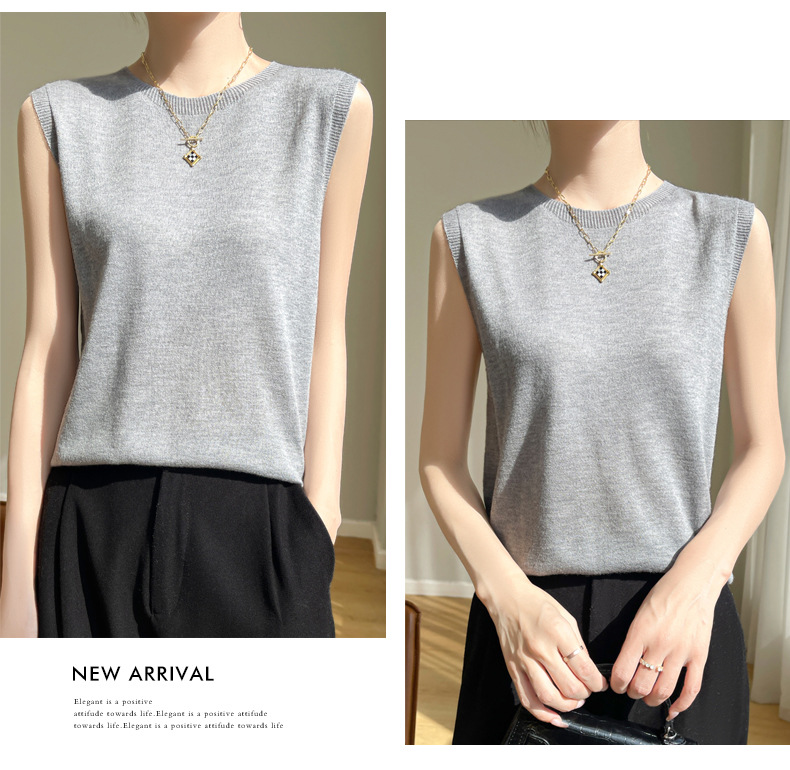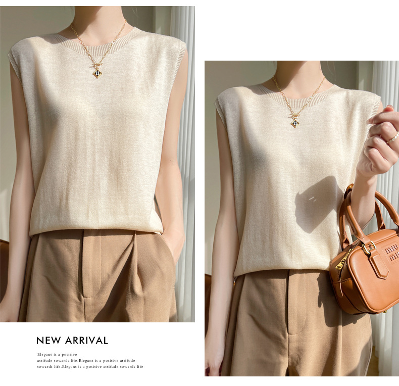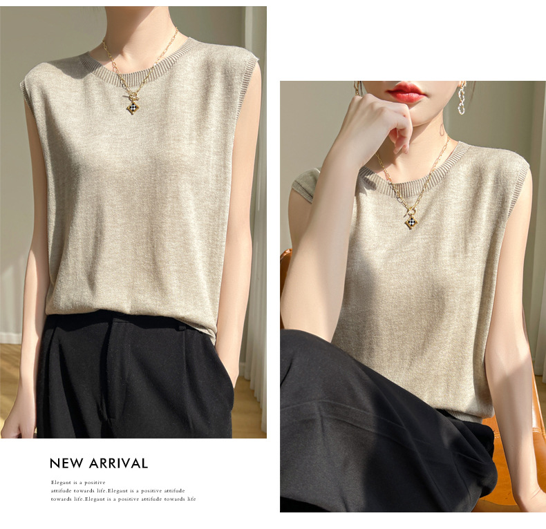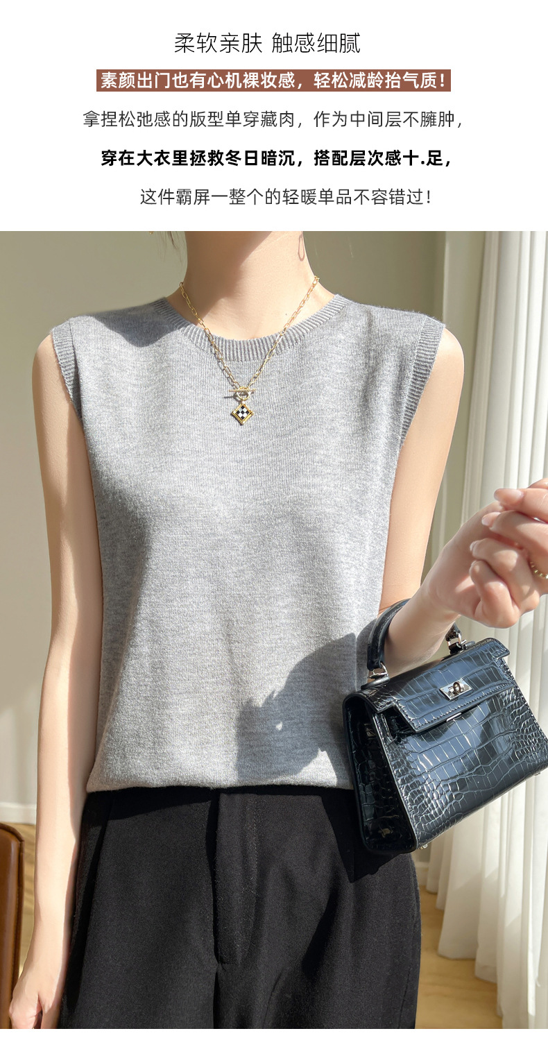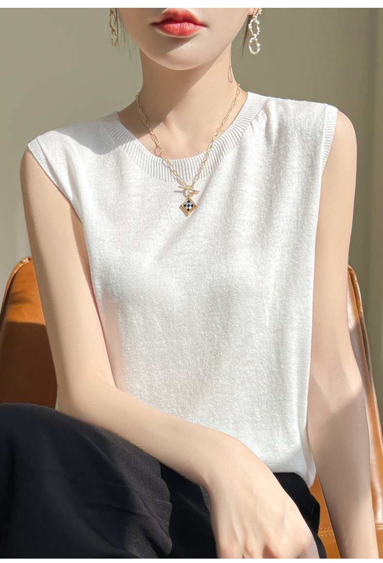 2024 년 여름 새로운 라운드 넥 Worsted 울 1 라인 의류 스웨터 여성 민소매 조끼 기질베이스 셔츠