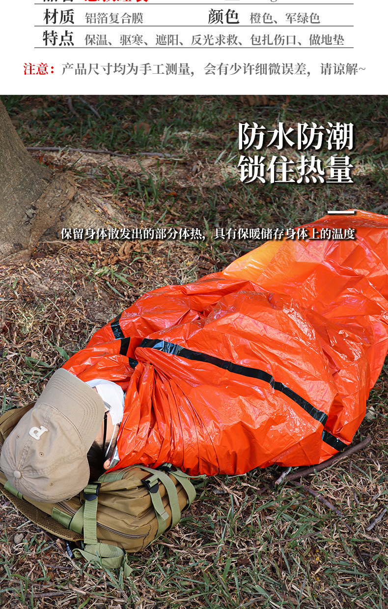 야외용 PE 알루미늄 필름 비상 침낭, 보온 구급 생존 반사 텐트, 방오 방습 매트, 휴대용 캠핑 매트