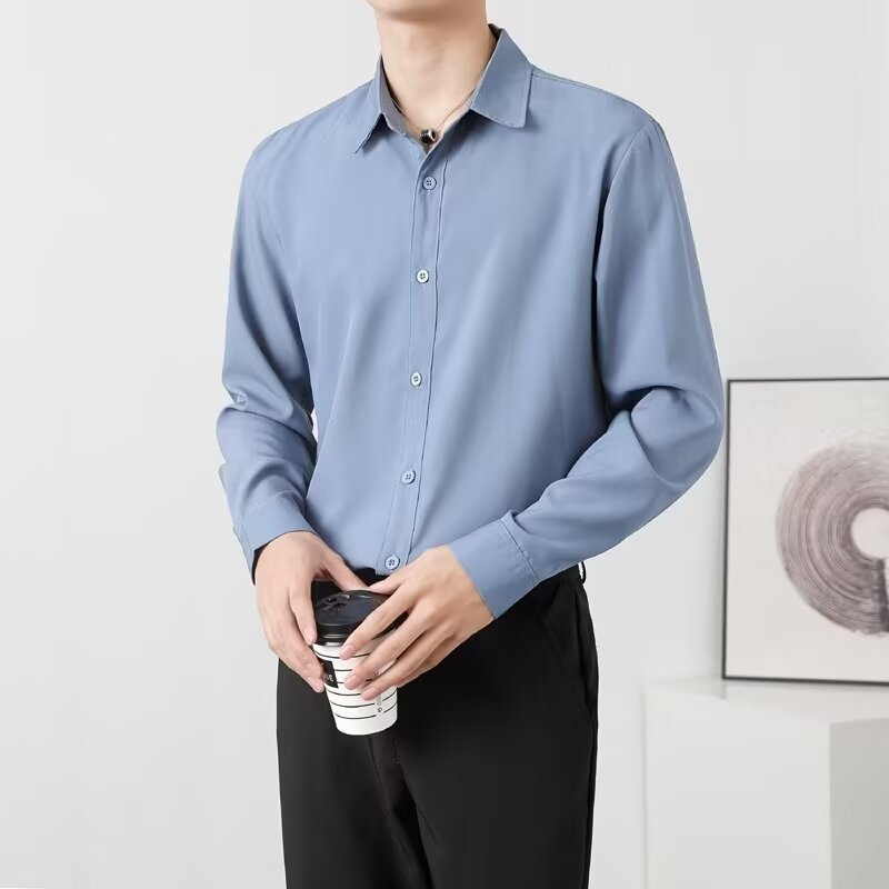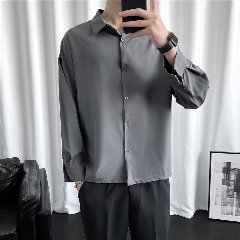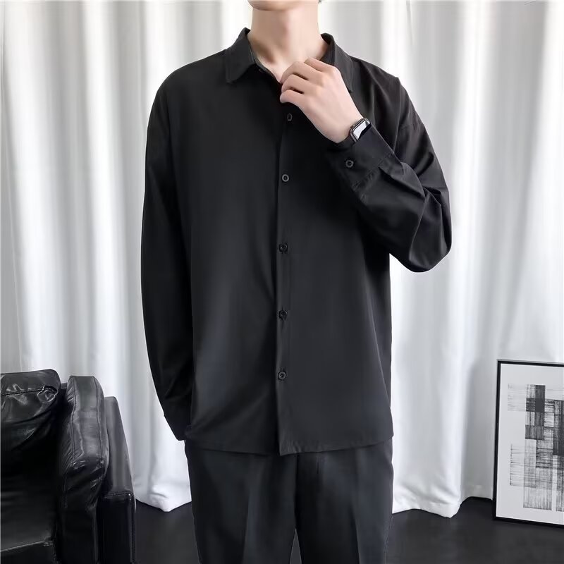 비즈니스 스타일 느슨한 셔츠 남성 긴팔 셔츠 홍콩 스타일 게으른 스타일 남성 화이트 셔츠 일본식 하이 엔드 스타일 소금 스타일