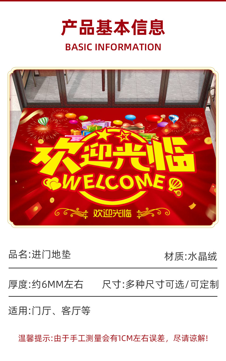 환영합니다! 입구 카펫, 회사 엘리베이터 환영 매트, 상점 호텔 광고용 발매트, 오픈 기념 레드 도어매트스토어 가기