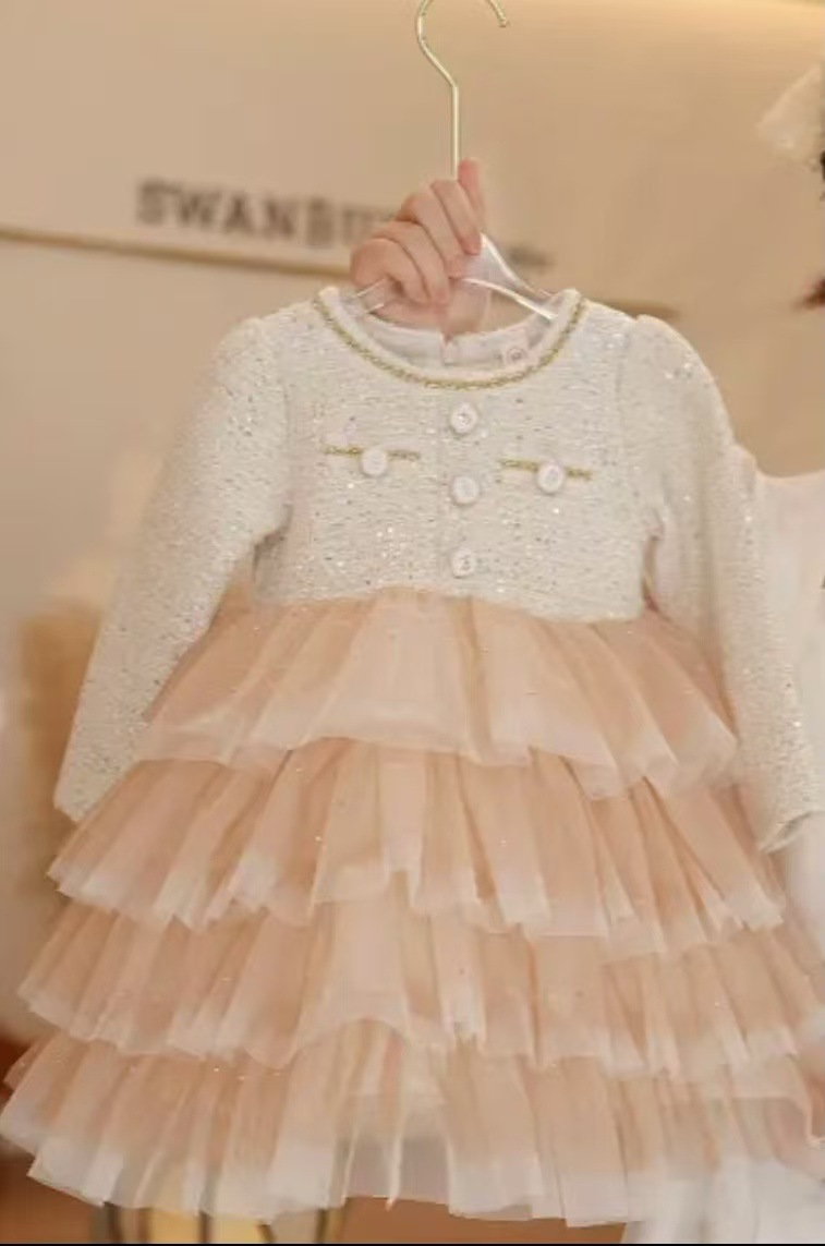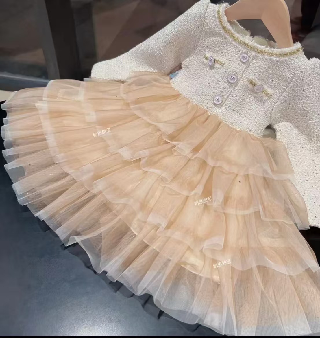 소녀 공주 원피스 가을과 겨울 새로운 스타일 샤넬 스타일 원피스 스타일 중공업 소녀 아기 긴 소매 원피스 달콤한