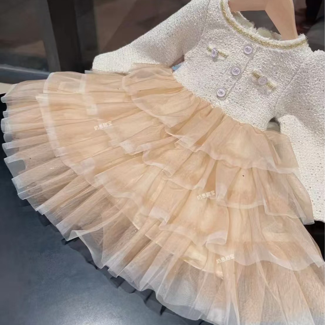 소녀 공주 원피스 가을과 겨울 새로운 스타일 샤넬 스타일 원피스 스타일 중공업 소녀 아기 긴 소매 원피스 달콤한스토어 가기