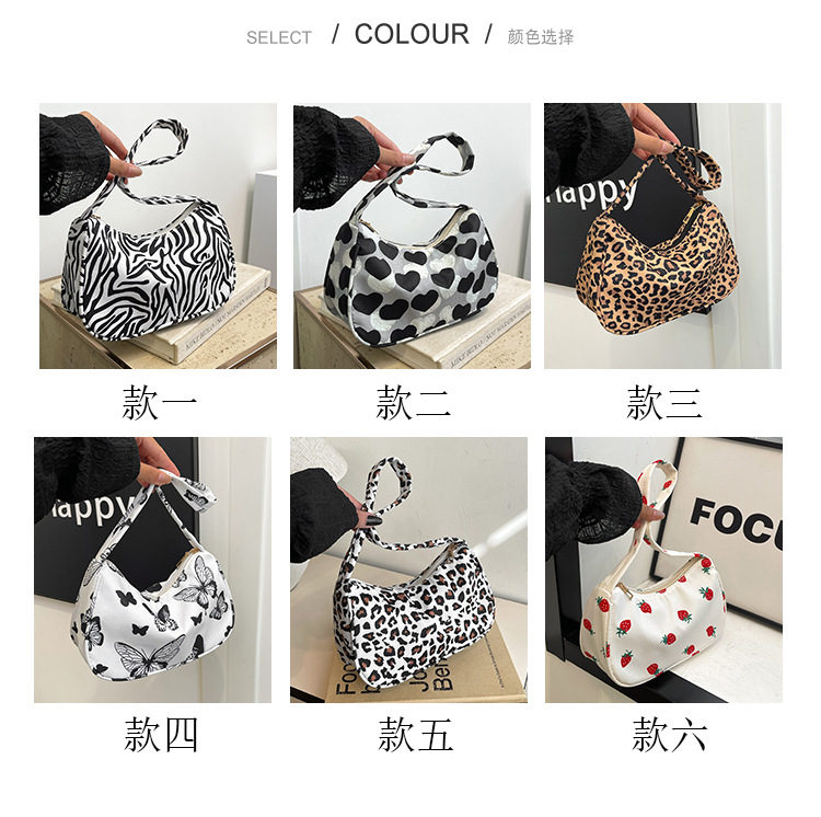 레오파드 인쇄 겨드랑이 가방 여성 2025 새로운 인쇄 우유 패턴 격자 무늬 핸드백 유행 패션 캐주얼 어깨 가방스토어 가기