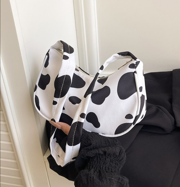 레오파드 인쇄 겨드랑이 가방 여성 2025 새로운 인쇄 우유 패턴 격자 무늬 핸드백 유행 패션 캐주얼 어깨 가방