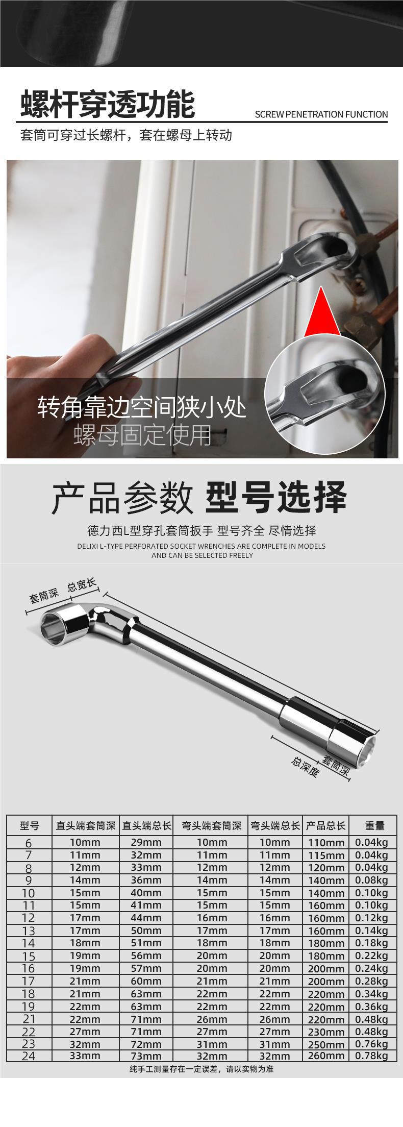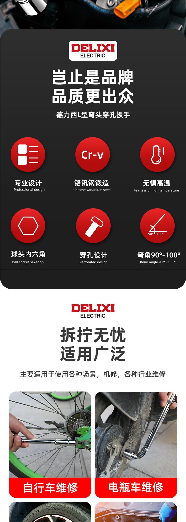 Delixi 파이프 렌치 L 자형 소켓 렌치 도구 벤드로드 타이어 렌치 자동 수리 벤드 담배 입 렌치