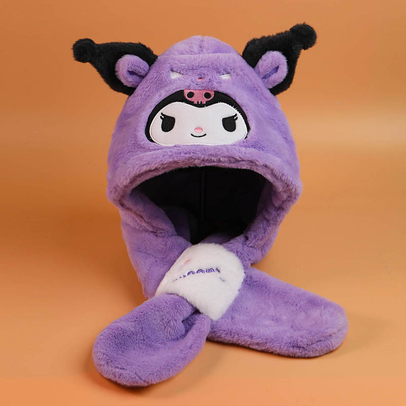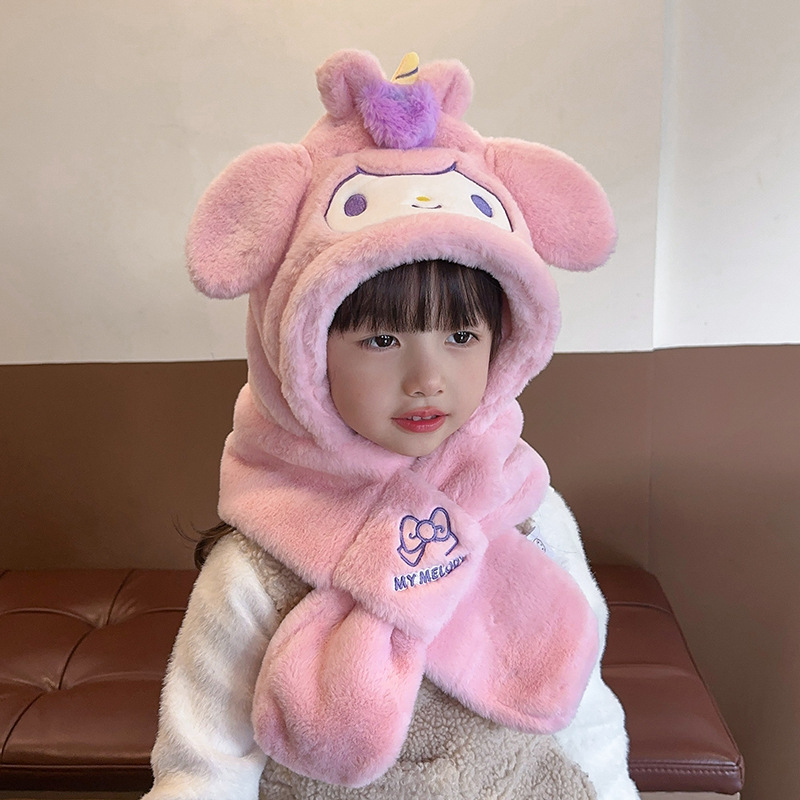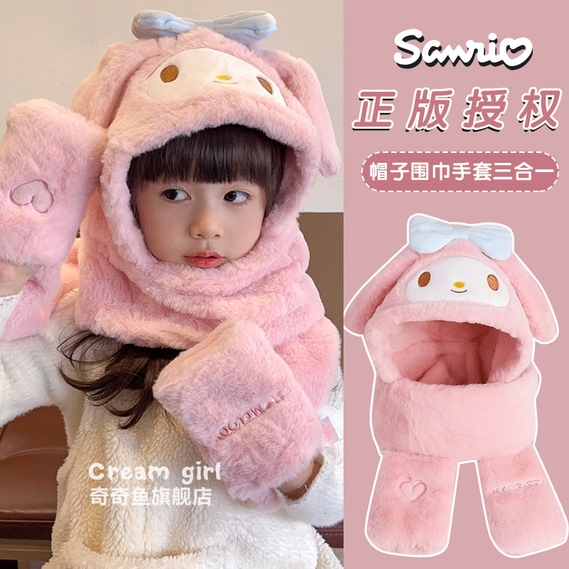 산리오 정품 어린이 따뜻한 모자 스카프 장갑 가을과 겨울 소녀 봉제 스카프 방풍 귀 보호 캡