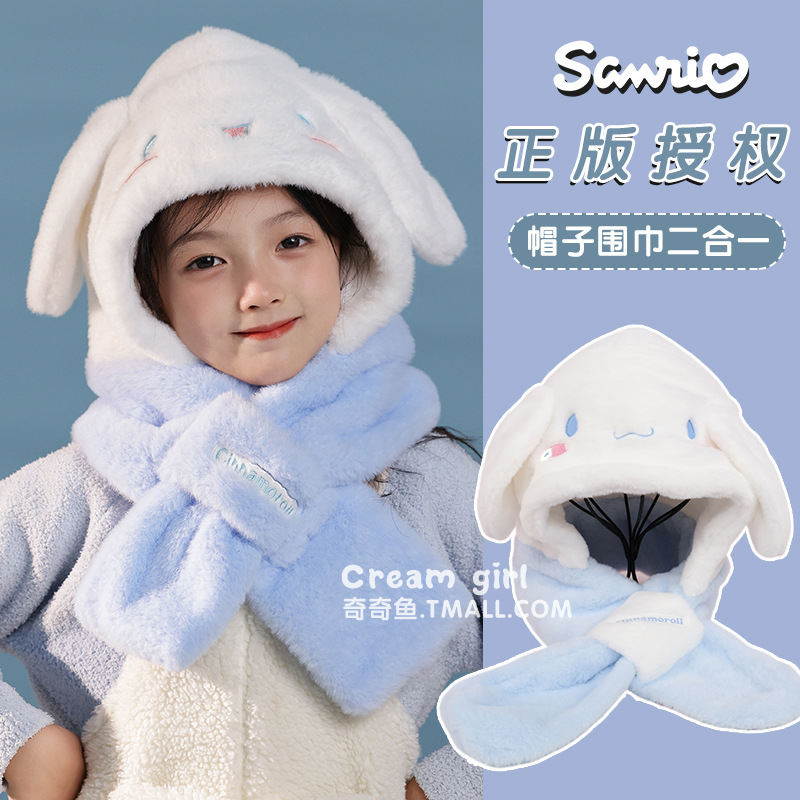 산리오 정품 어린이 따뜻한 모자 스카프 장갑 가을과 겨울 소녀 봉제 스카프 방풍 귀 보호 캡스토어 가기
