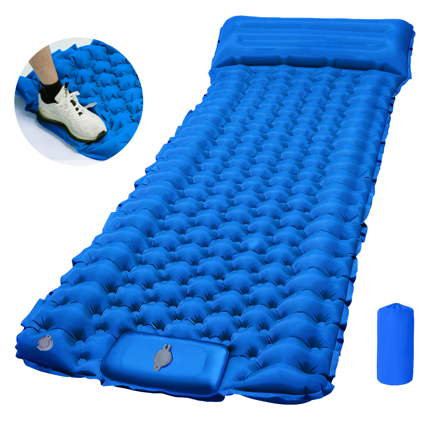 공장 직접 야외 나일론 에어 매트리스 캠핑 플레이 수동 에어 매트리스 발 프레스 에어 매트리스