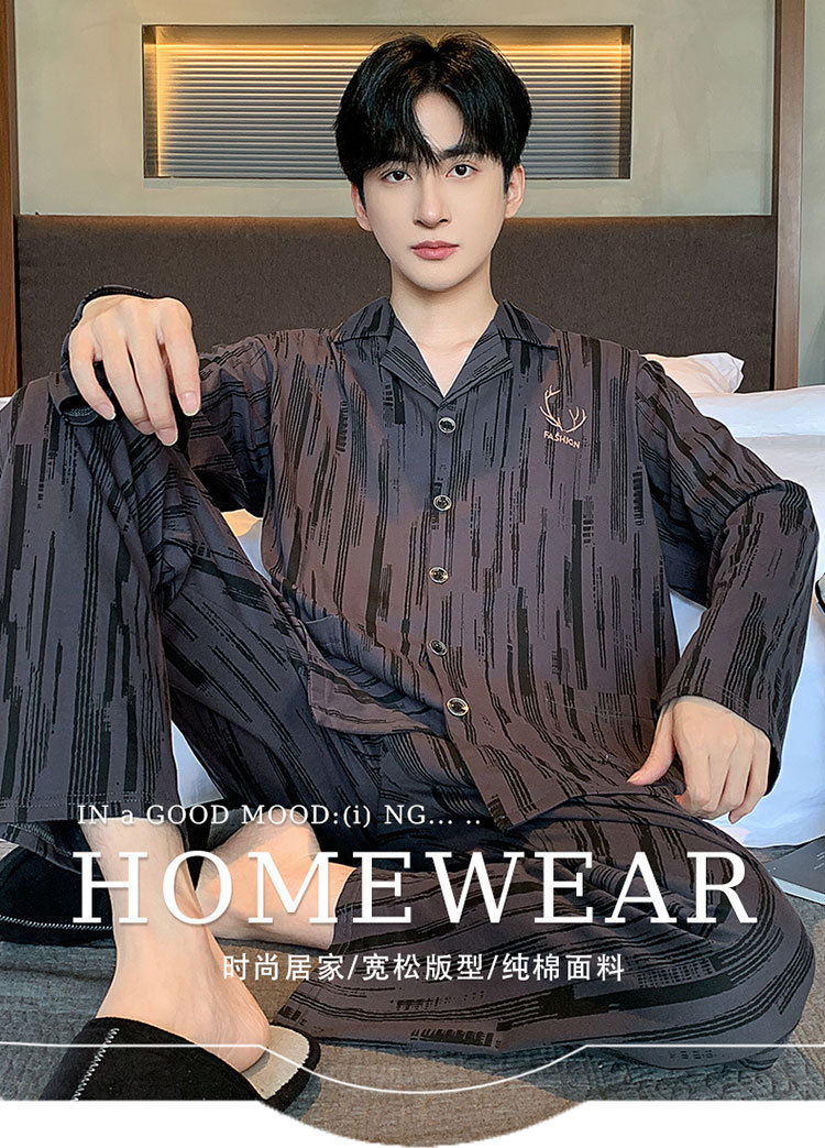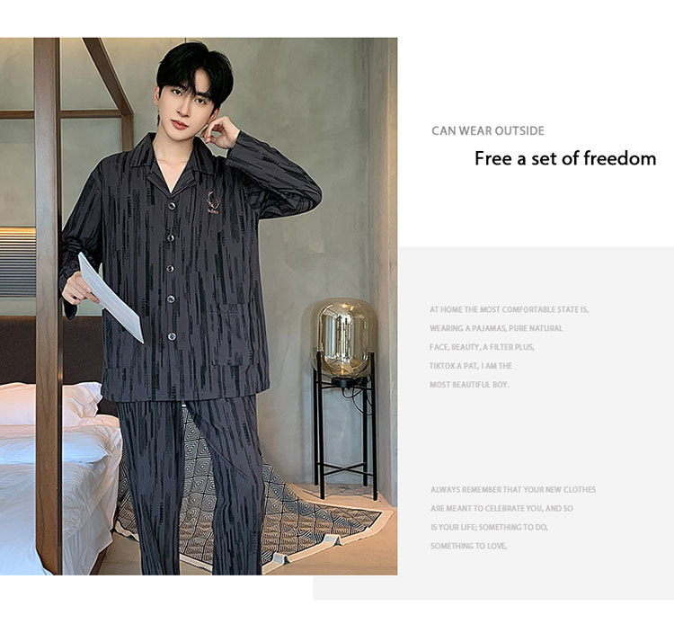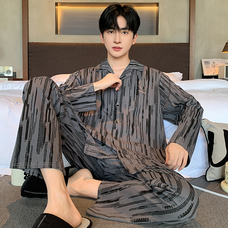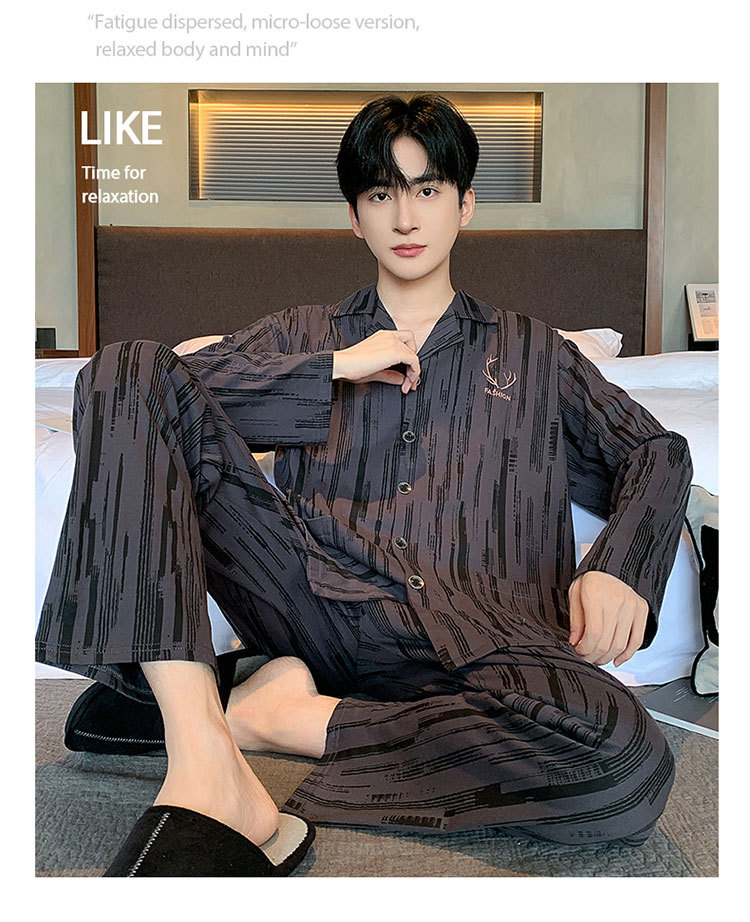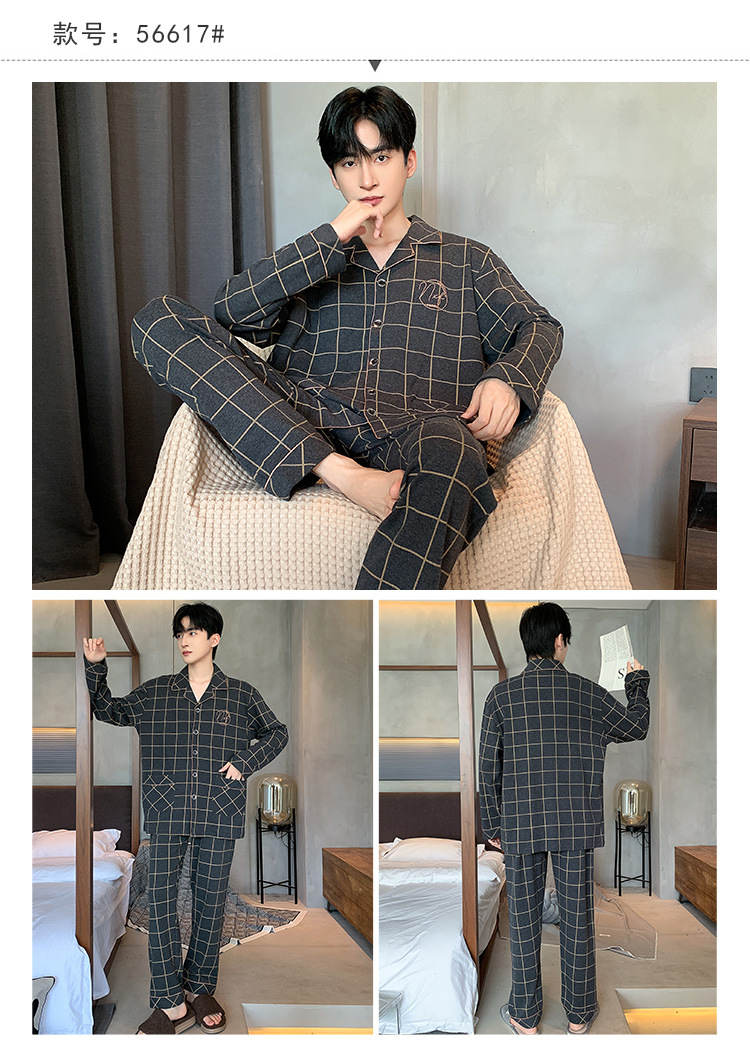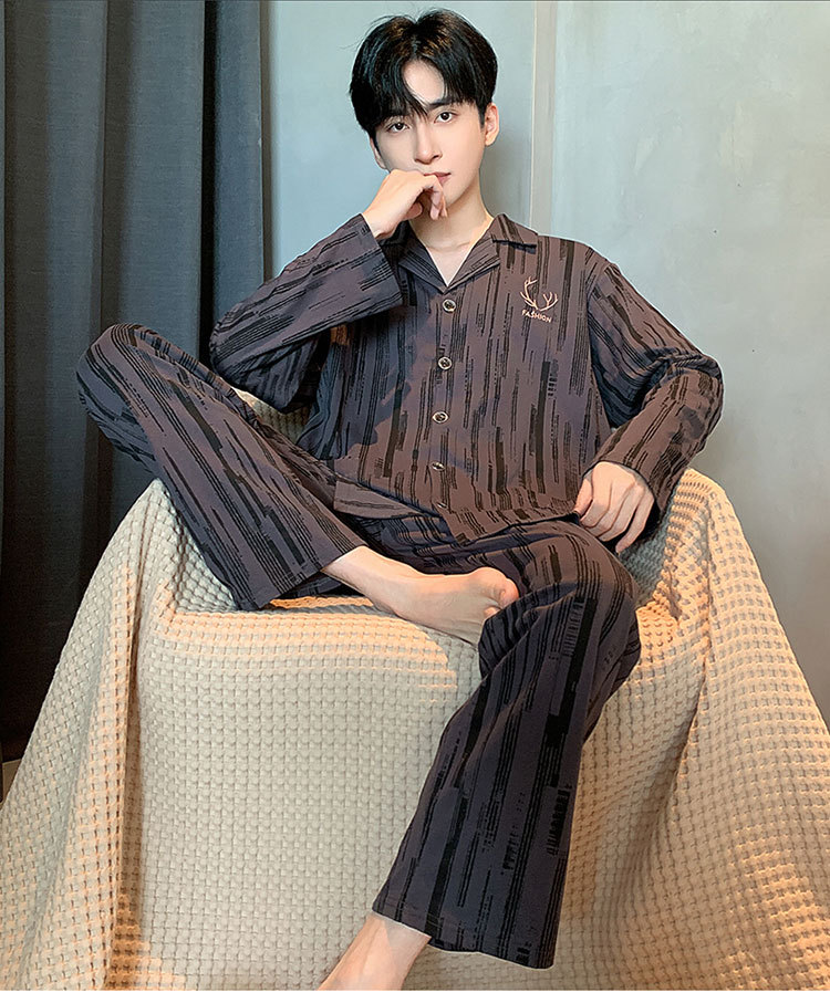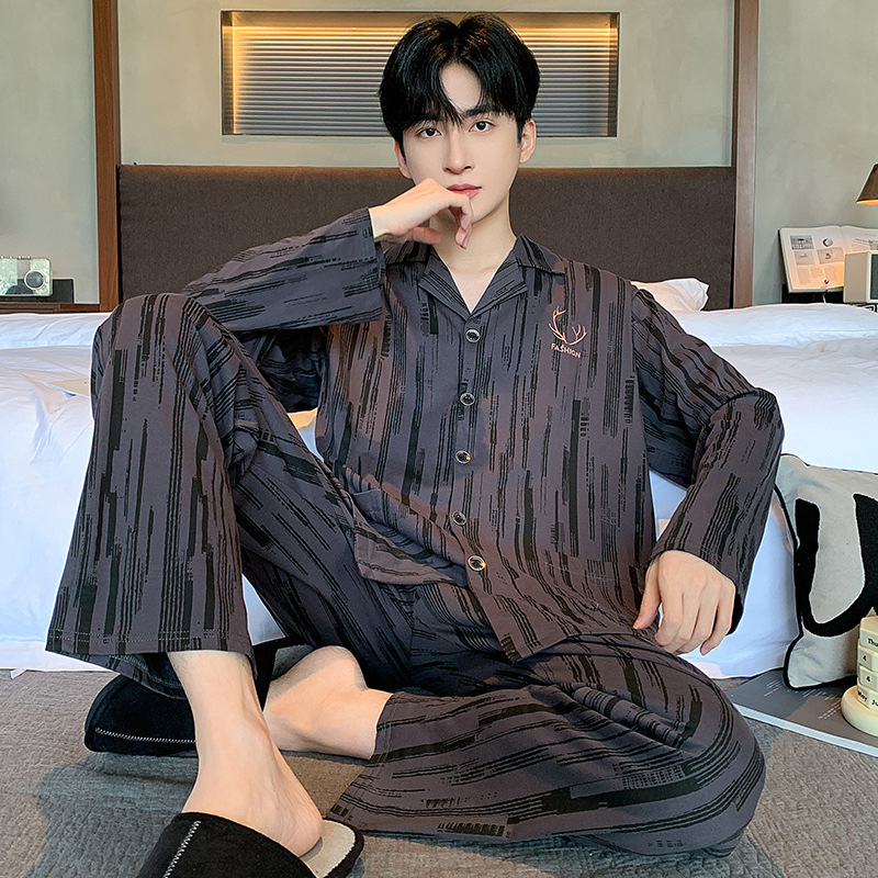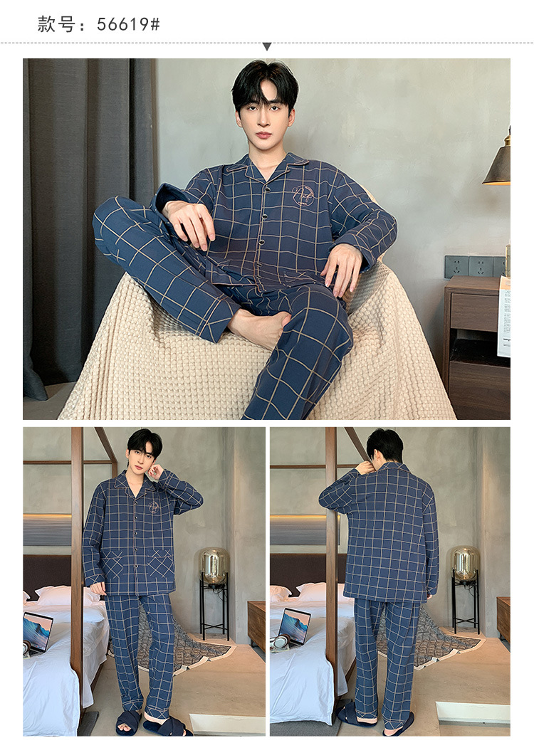 100% 면 잠옷 남자의 봄과 가을 새로운 카디건 긴 소매 플러스 사이즈 가을과 겨울 40 양면 면면 홈 옷스토어 가기