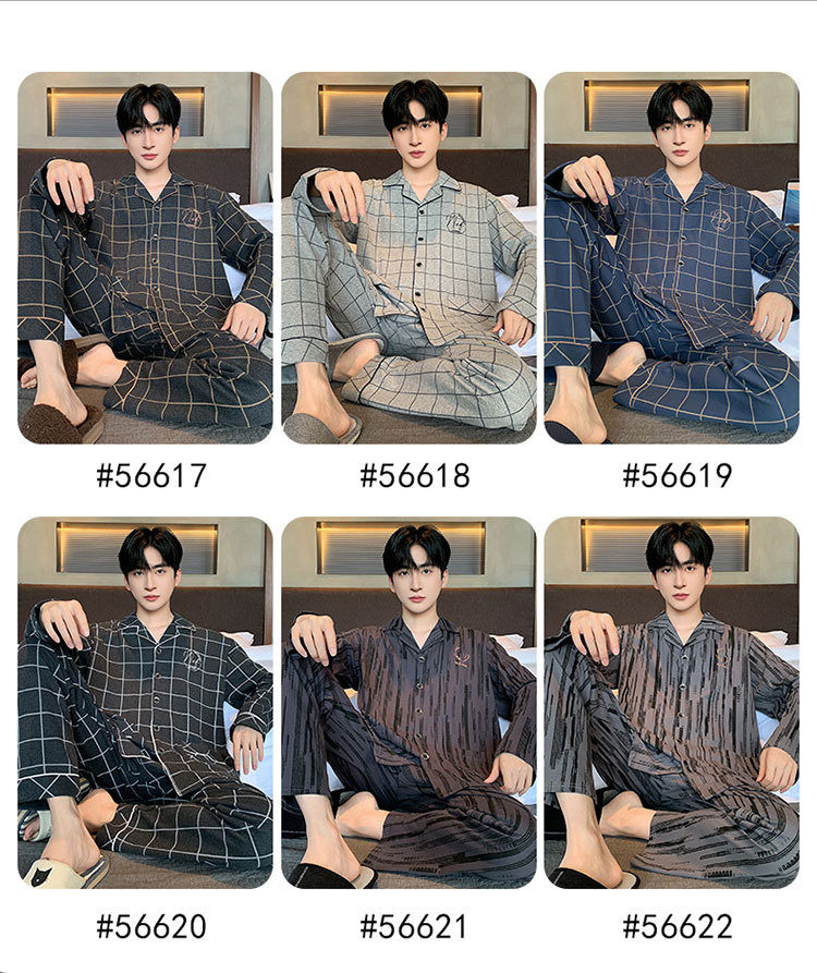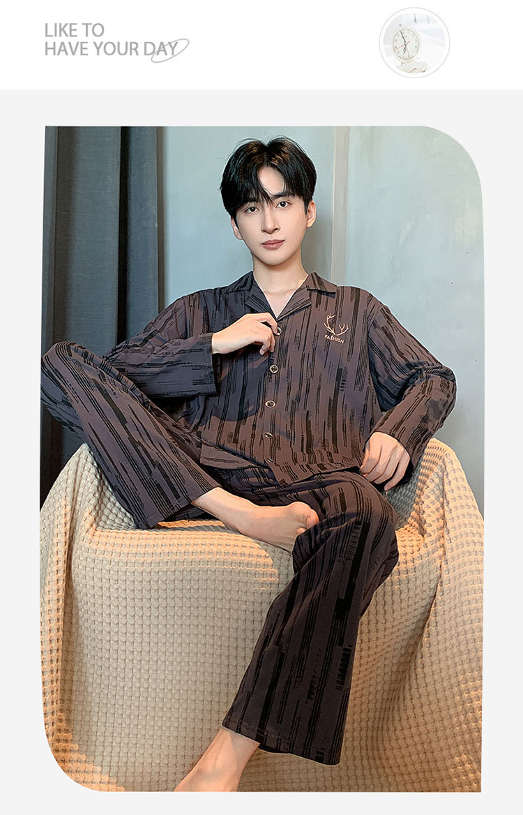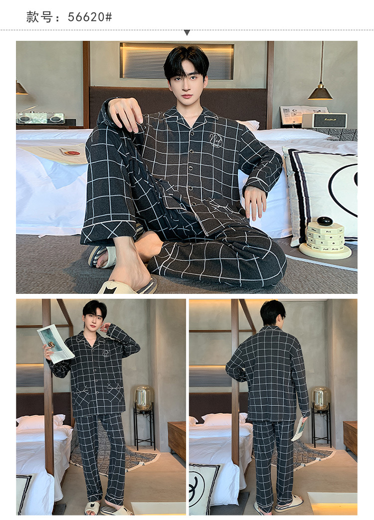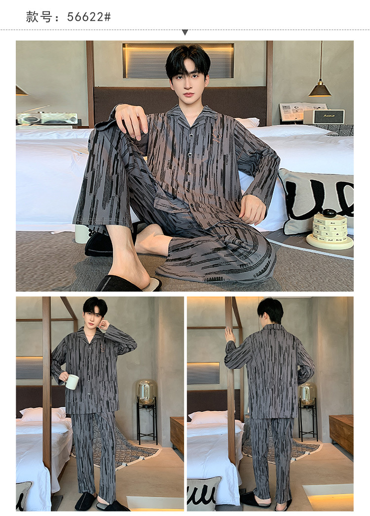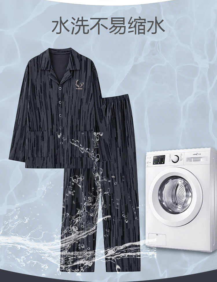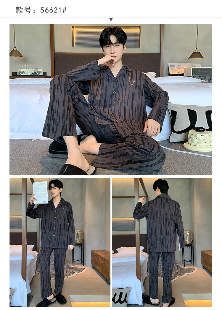 100% 면 잠옷 남자의 봄과 가을 새로운 카디건 긴 소매 플러스 사이즈 가을과 겨울 40 양면 면면 홈 옷스토어 가기
