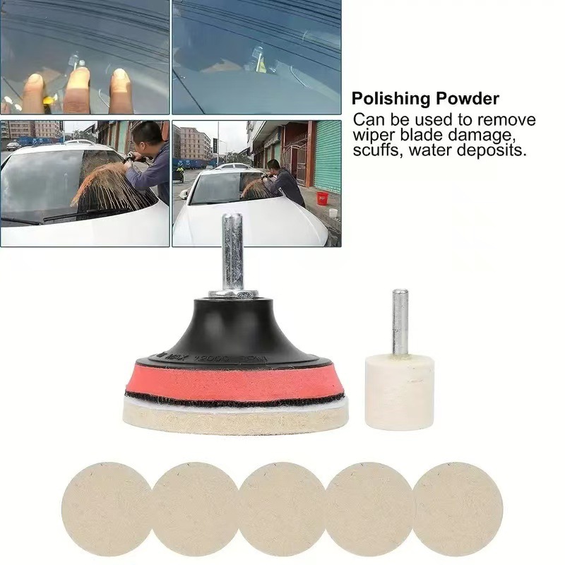 국경 간 폭발 3 인치 울 휠 자동차 창 강화 유리 연마 도구 산화 세륨 연마가 포함 된 9 피스 세트