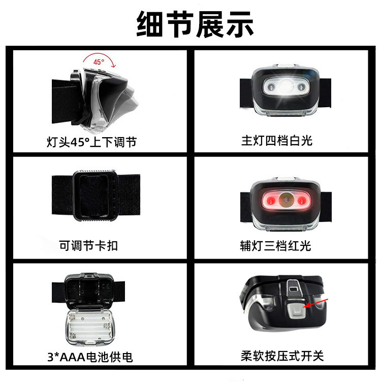 뜨거운 판매 폭발 LED 강한 빛 헤드라이트 경량 헤드 장착형 야외 달리기 사이클링 낚시 등산 캠핑 슈퍼 브라이트