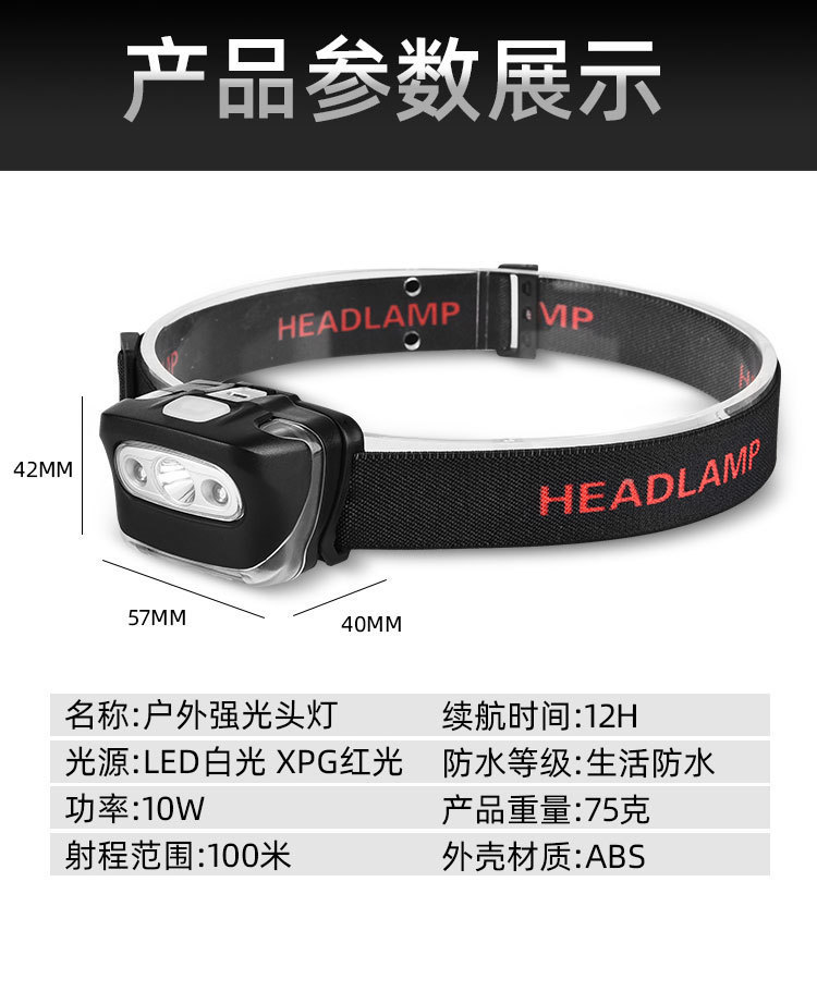 뜨거운 판매 폭발 LED 강한 빛 헤드라이트 경량 헤드 장착형 야외 달리기 사이클링 낚시 등산 캠핑 슈퍼 브라이트스토어 가기