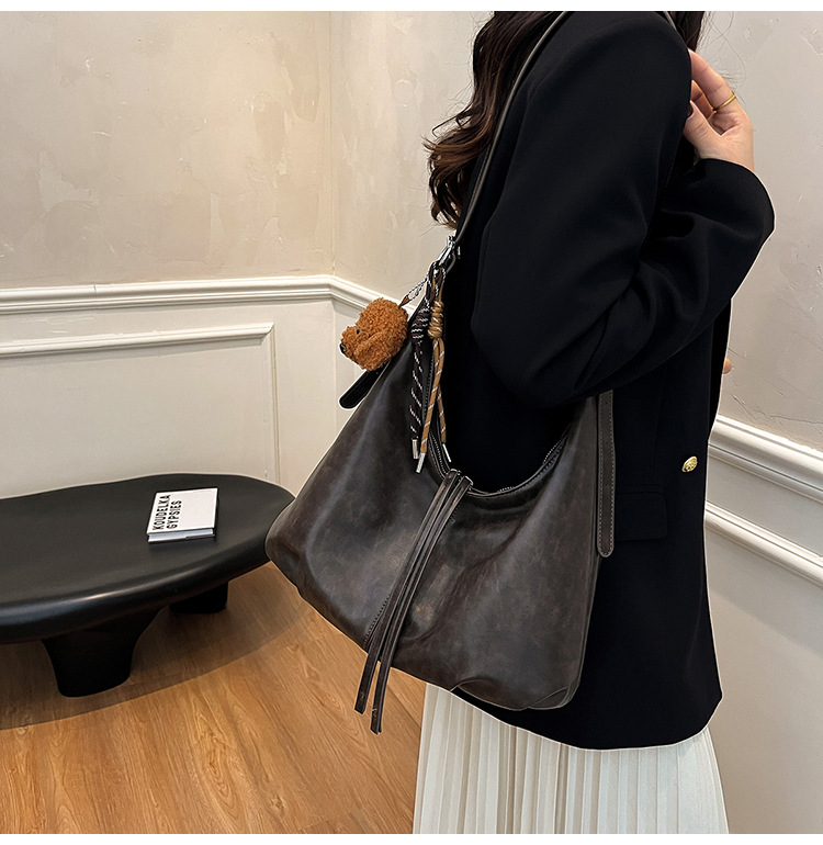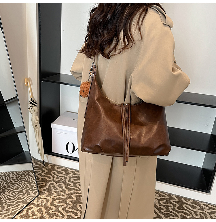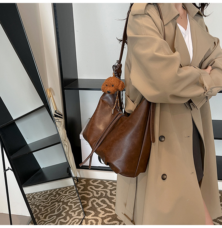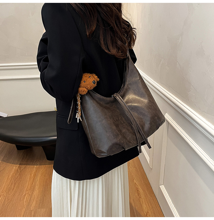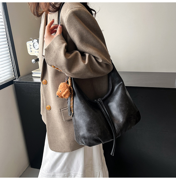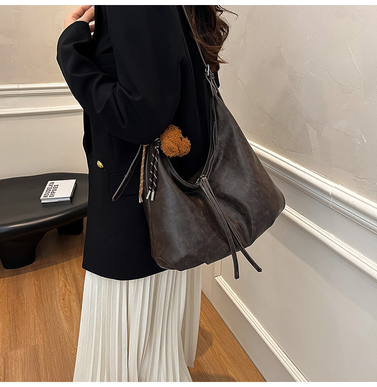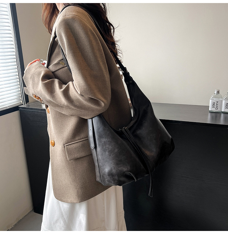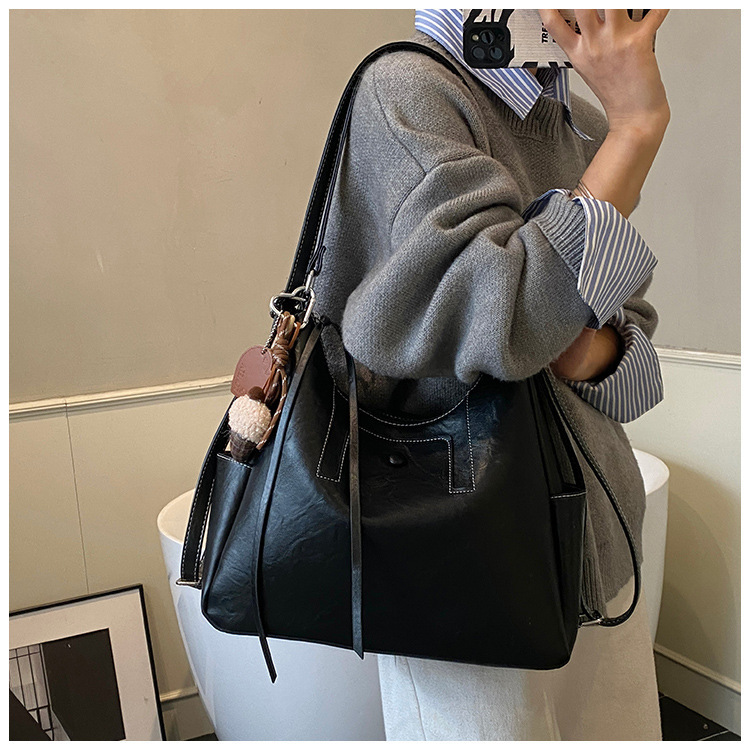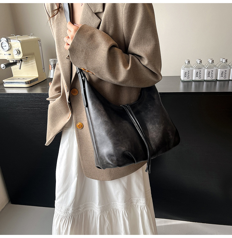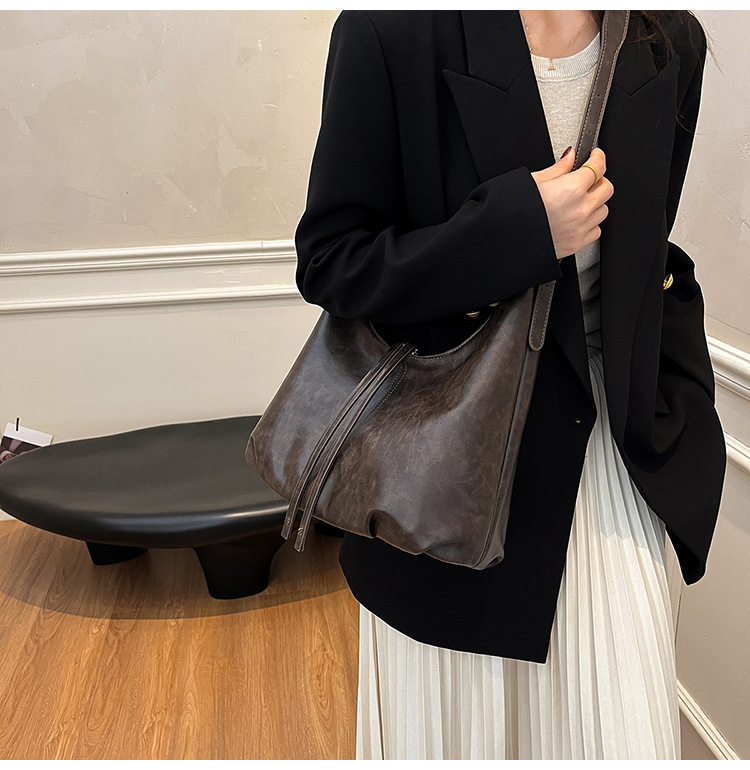 캐주얼 레트로 대용량 토트백 여성용 2026 신상 통근 숄더백 고급스러운 레이지 스타일 크로스백스토어 가기