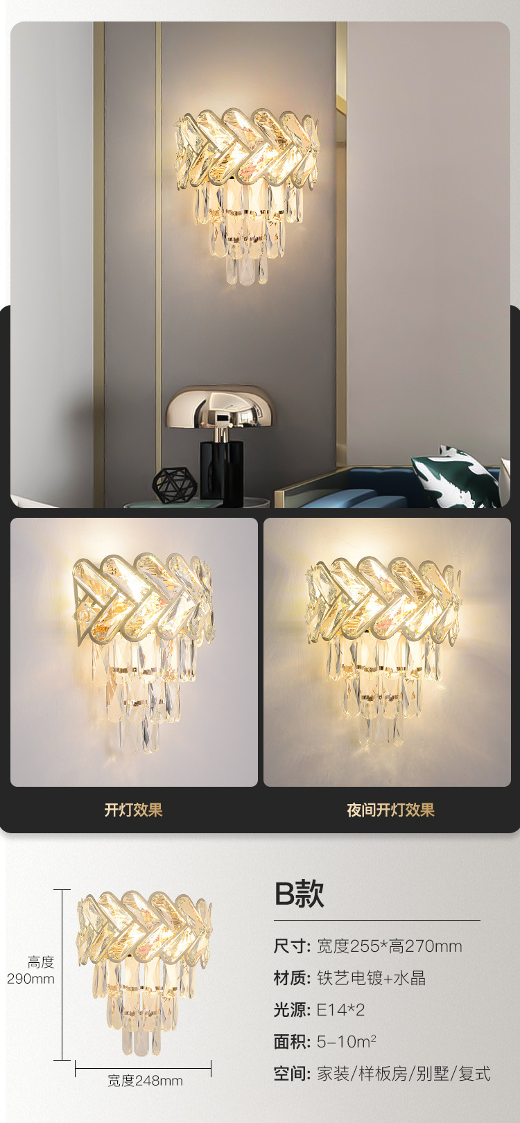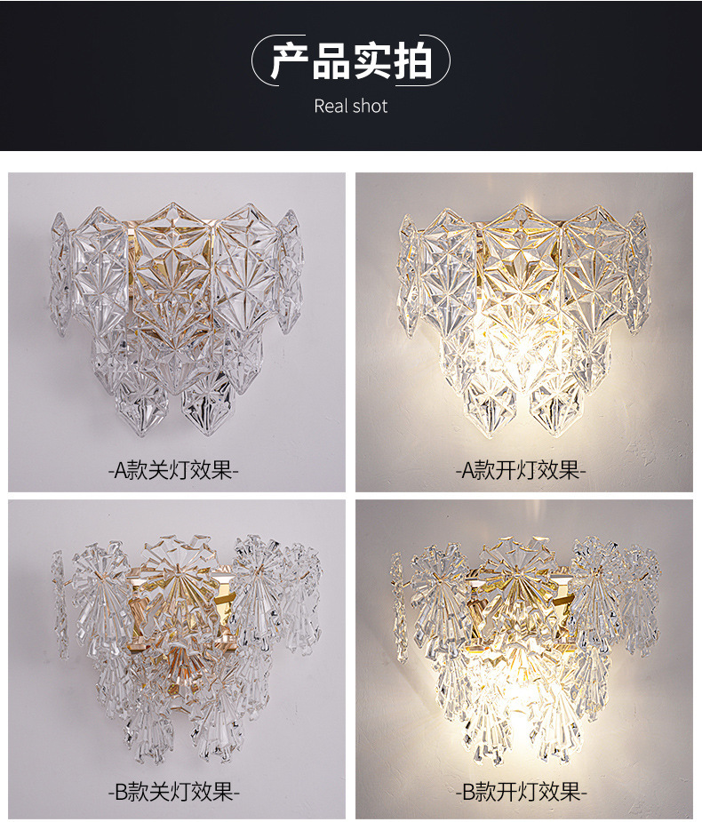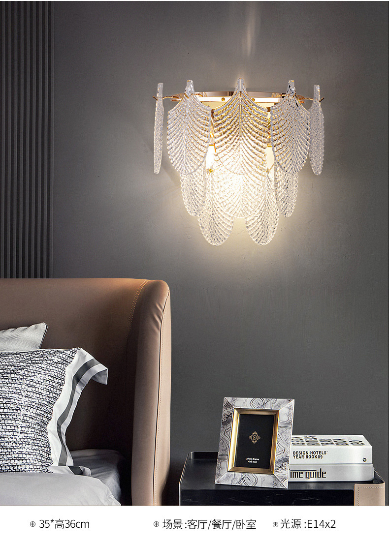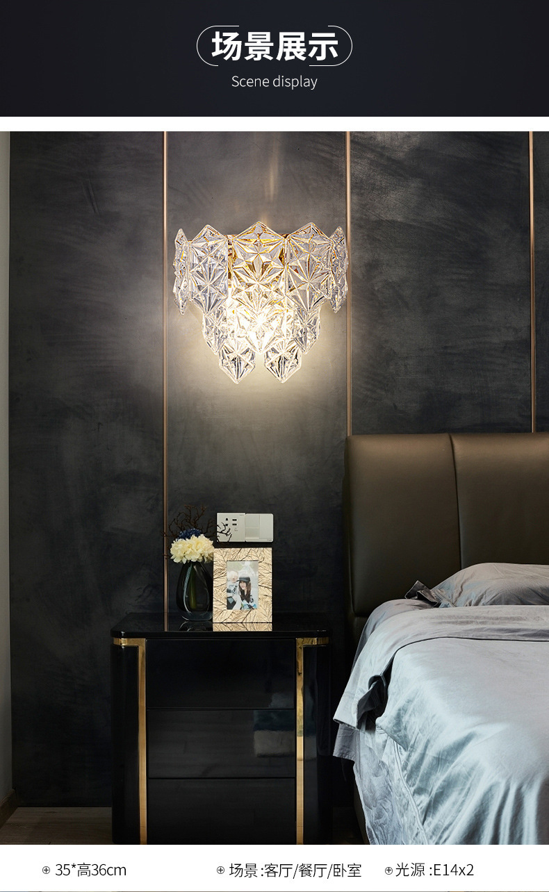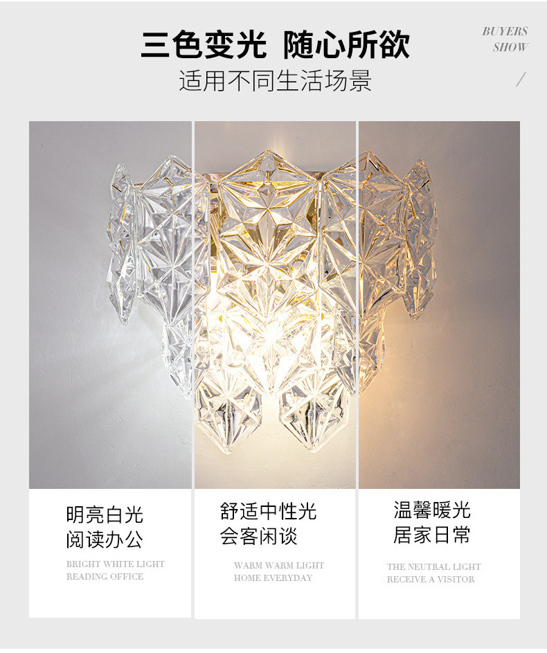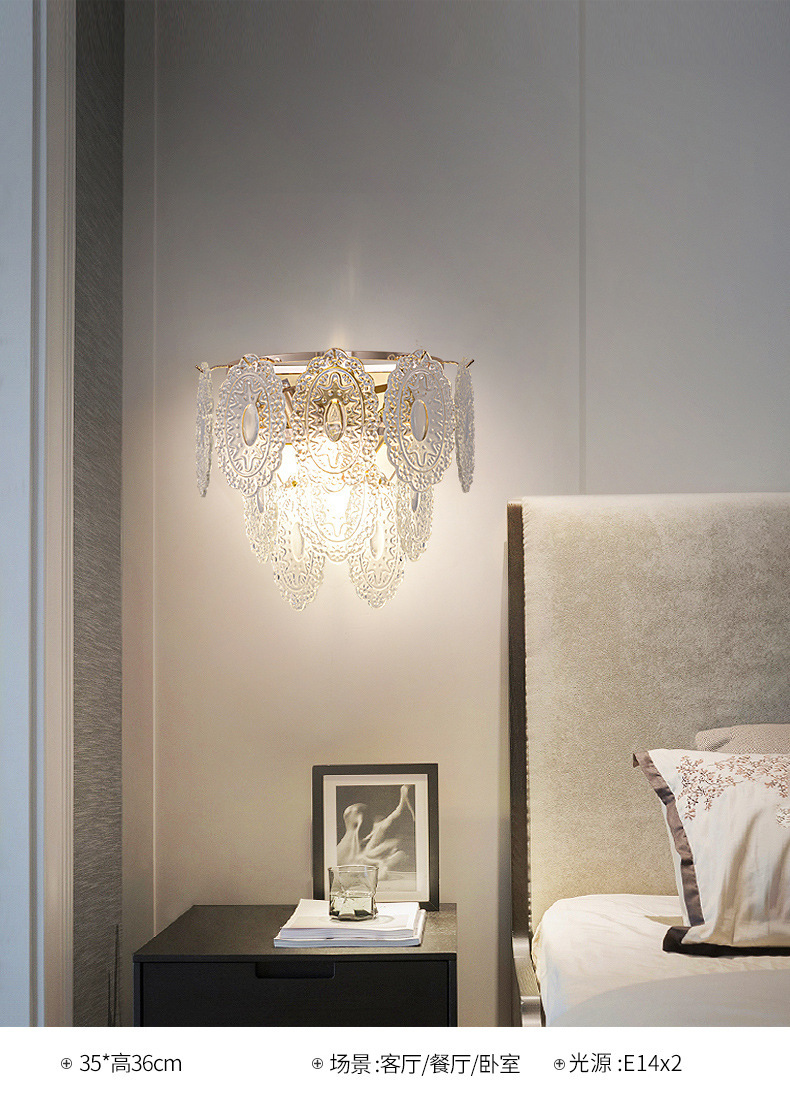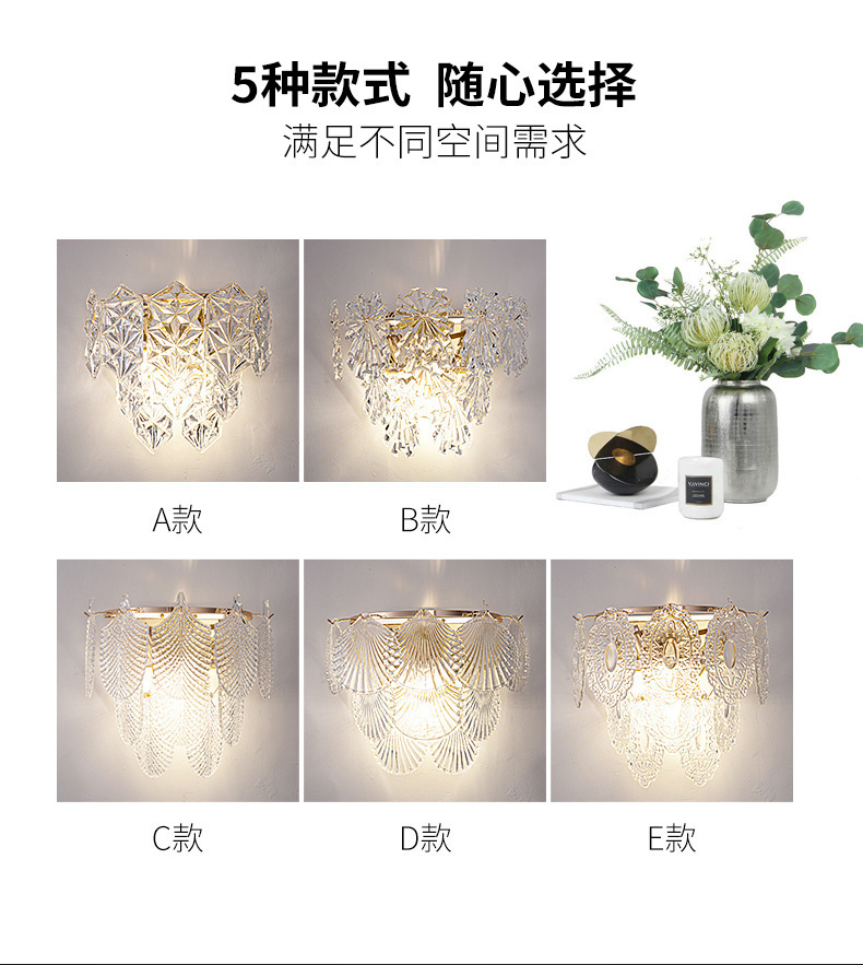 프랑스 스타일 가벼운 럭셔리 거실 벽 램프 크리스탈 인터넷 연예인 포스트 모던 간단한 배경 벽 침실 침실 램프 중산 램프스토어 가기