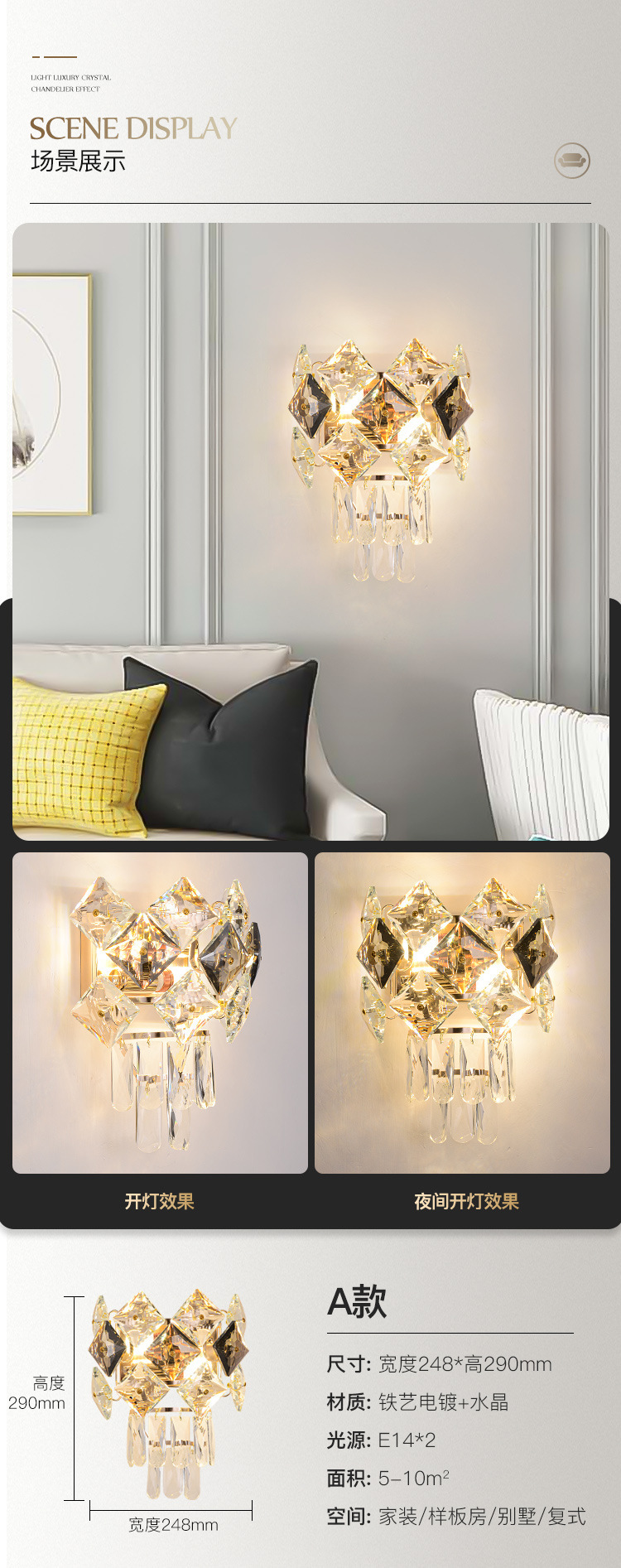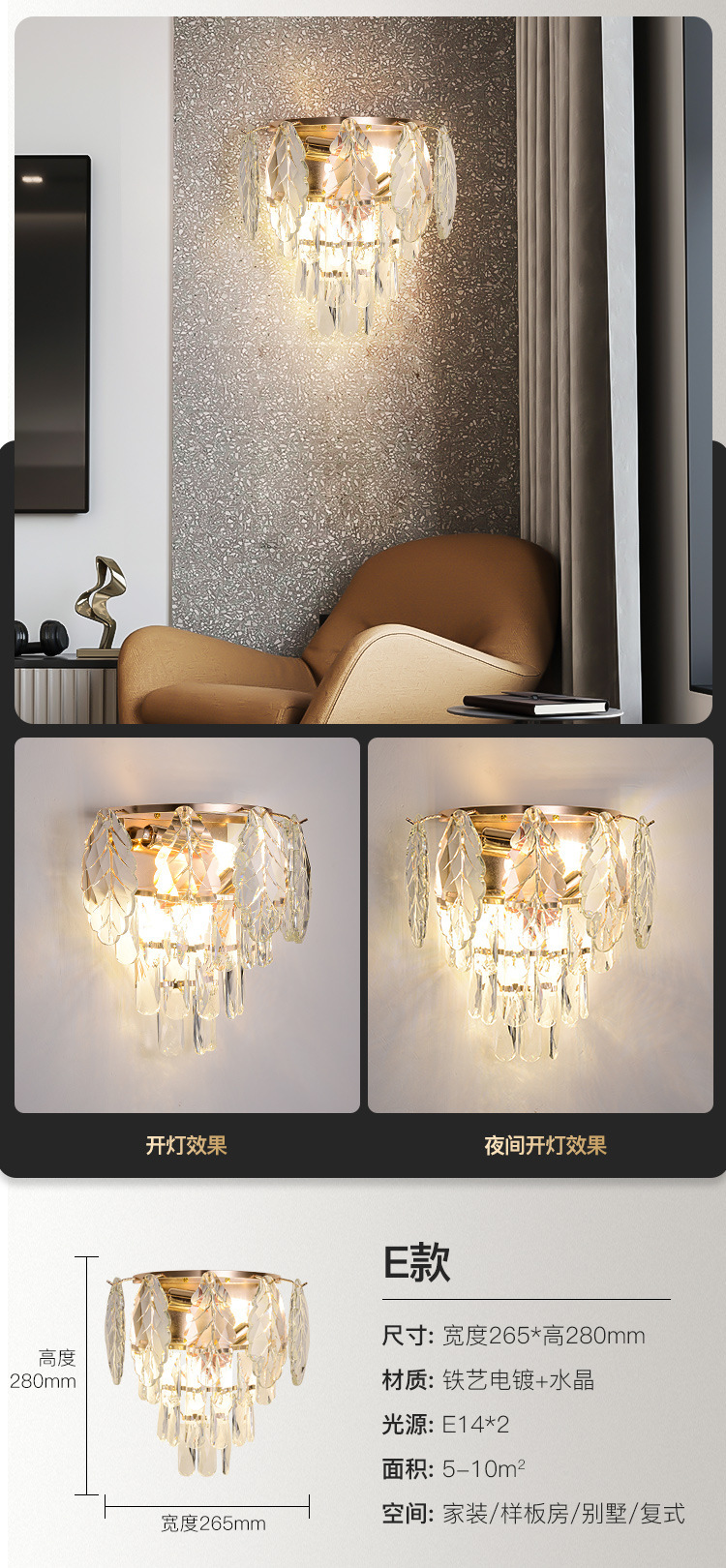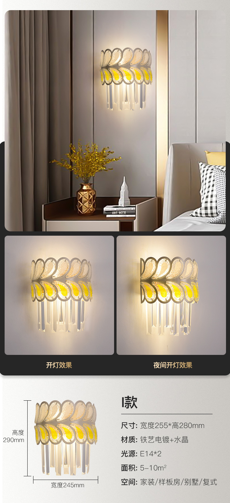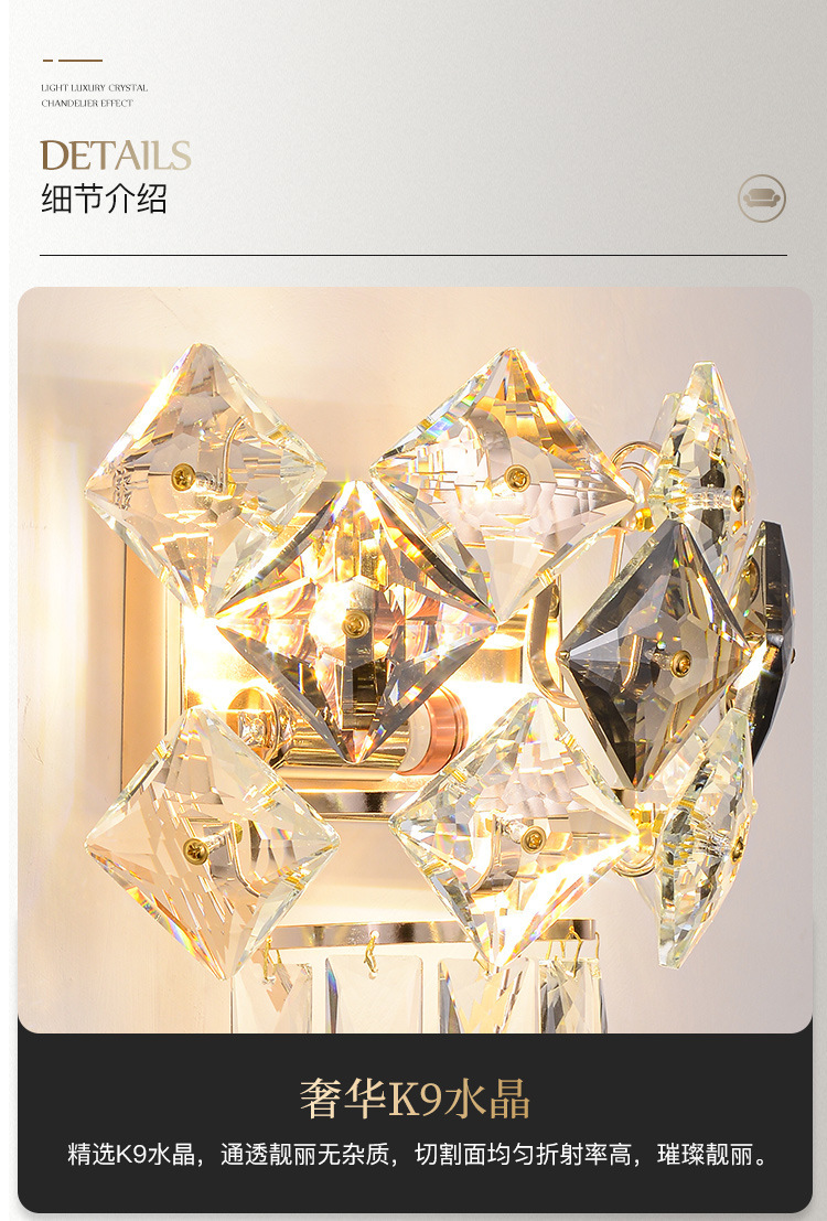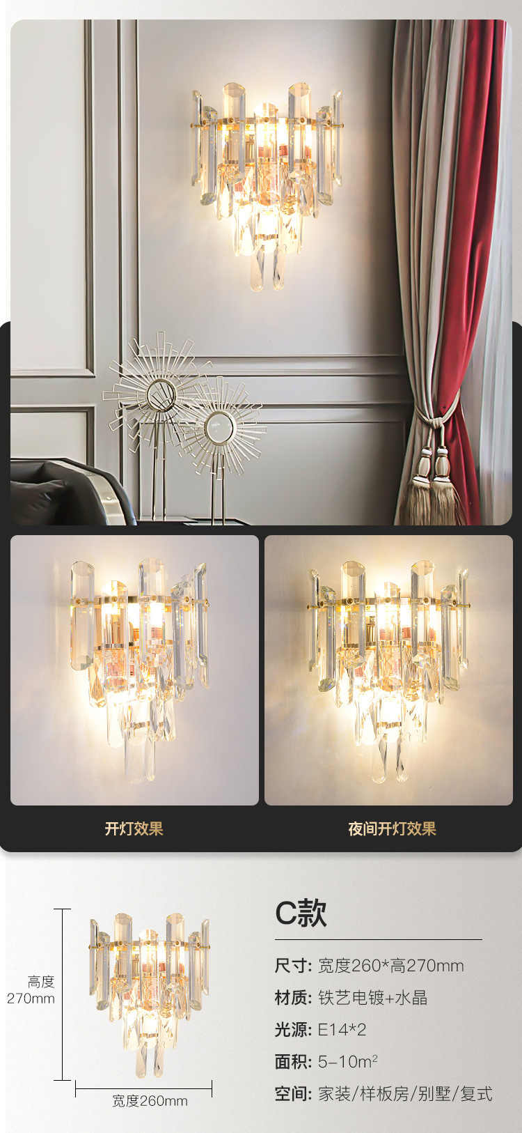 프랑스 스타일 가벼운 럭셔리 거실 벽 램프 크리스탈 인터넷 연예인 포스트 모던 간단한 배경 벽 침실 침실 램프 중산 램프스토어 가기