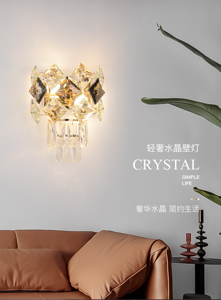 프랑스 스타일 가벼운 럭셔리 거실 벽 램프 크리스탈 인터넷 연예인 포스트 모던 간단한 배경 벽 침실 침실 램프 중산 램프