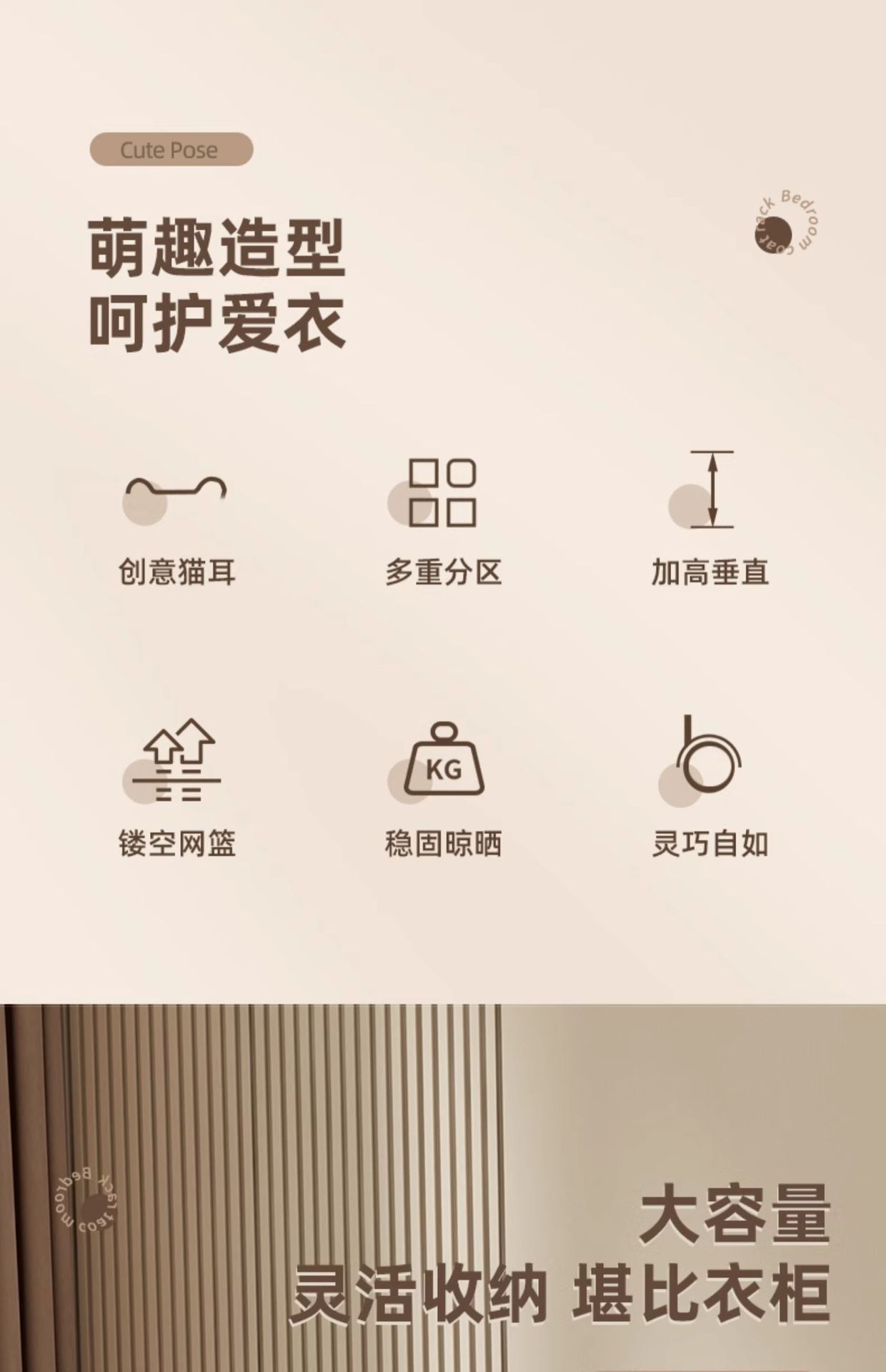 침실 바닥 크림 스타일 고양이 귀 코트 랙 휴대품 조립 이동식 인터넷-레드 크리에이티브 스토리지 행거