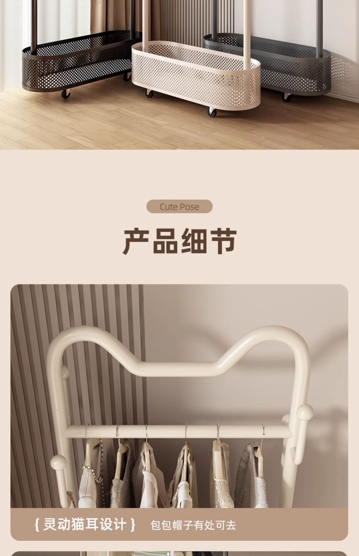 침실 바닥 크림 스타일 고양이 귀 코트 랙 휴대품 조립 이동식 인터넷-레드 크리에이티브 스토리지 행거스토어 가기