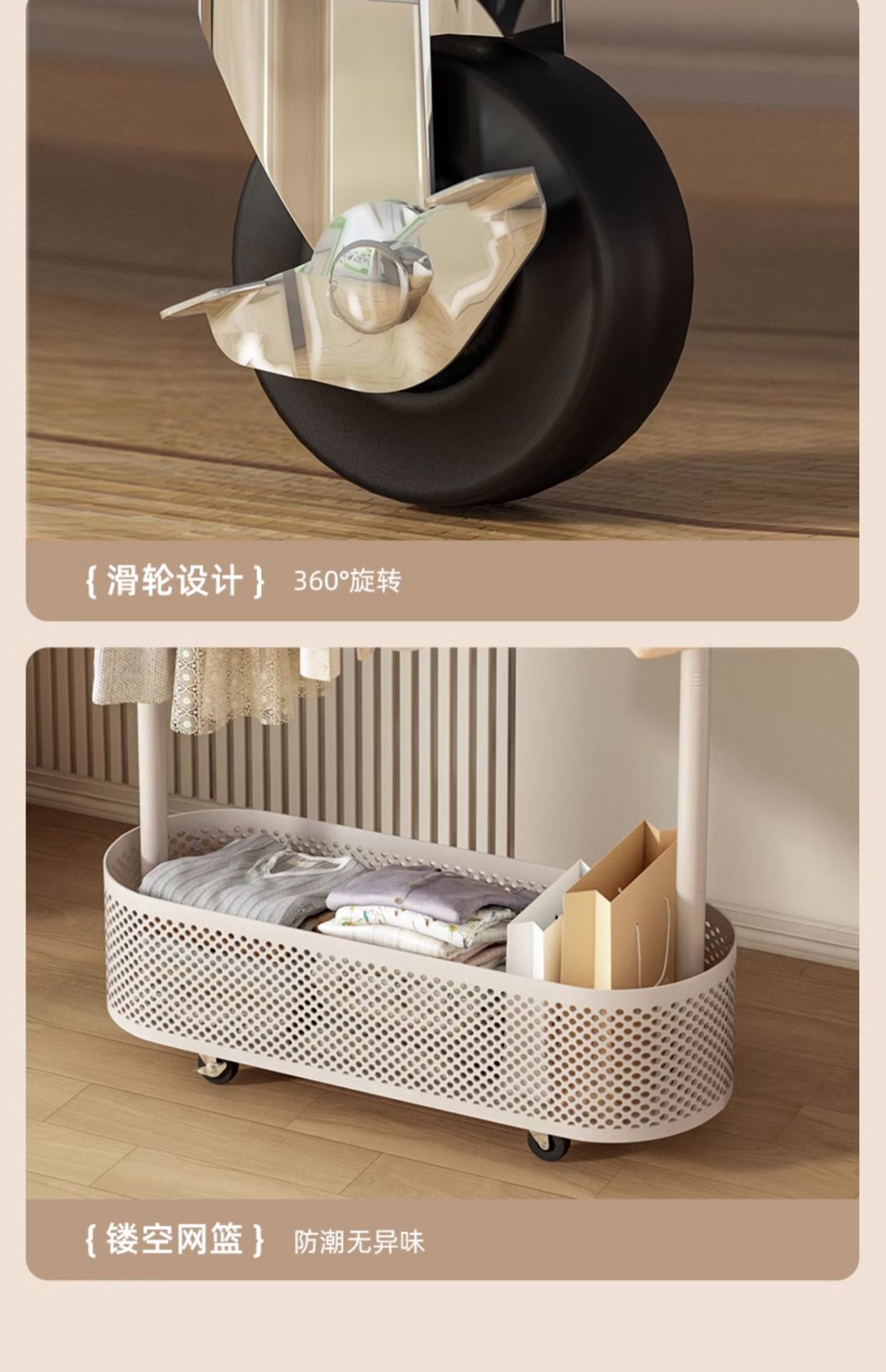 • 크림화이트 100cm [창의적인 고양이귀]☆중공 메쉬 바구니☆범용 휠]