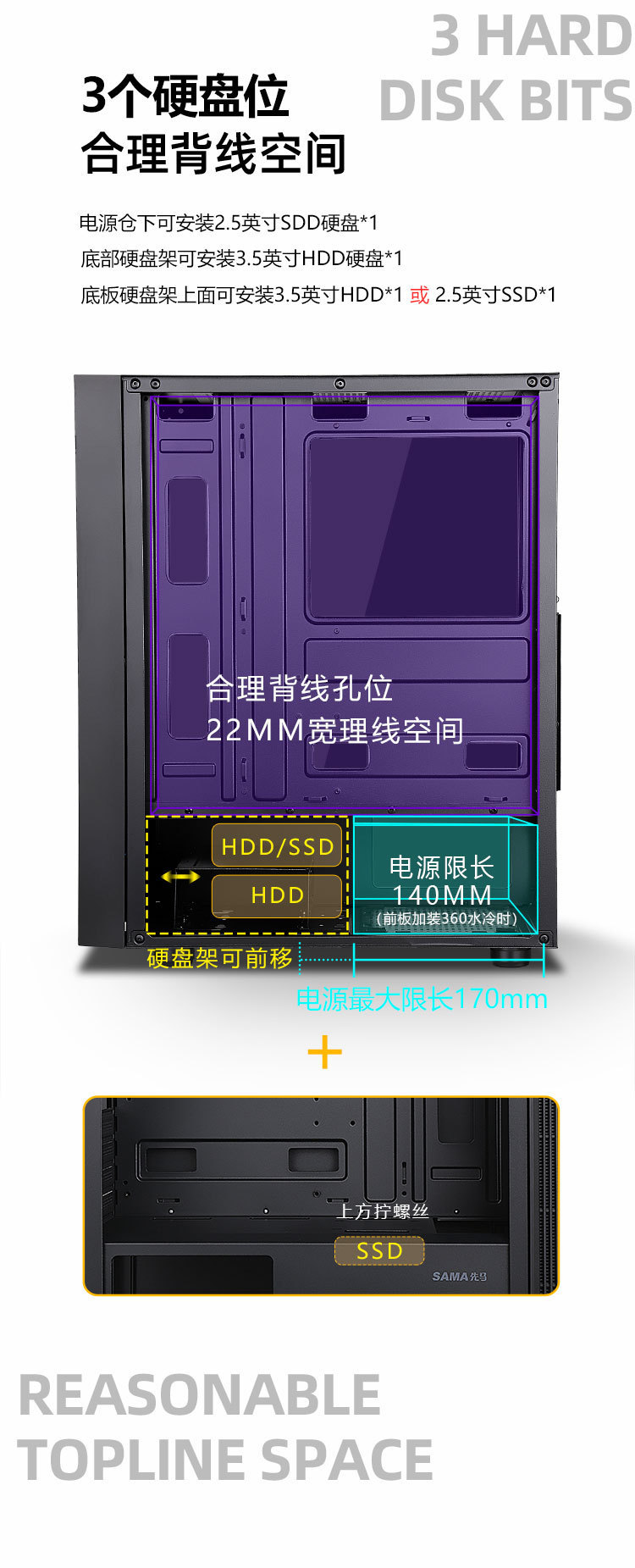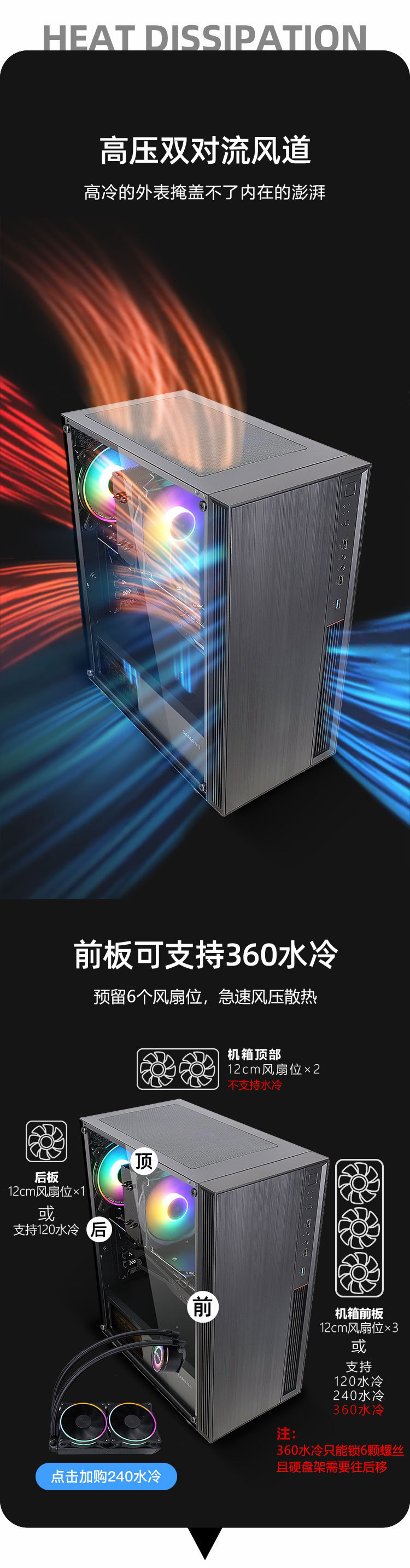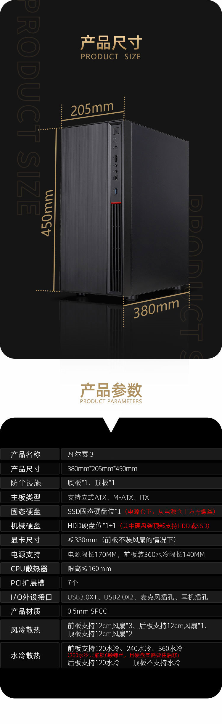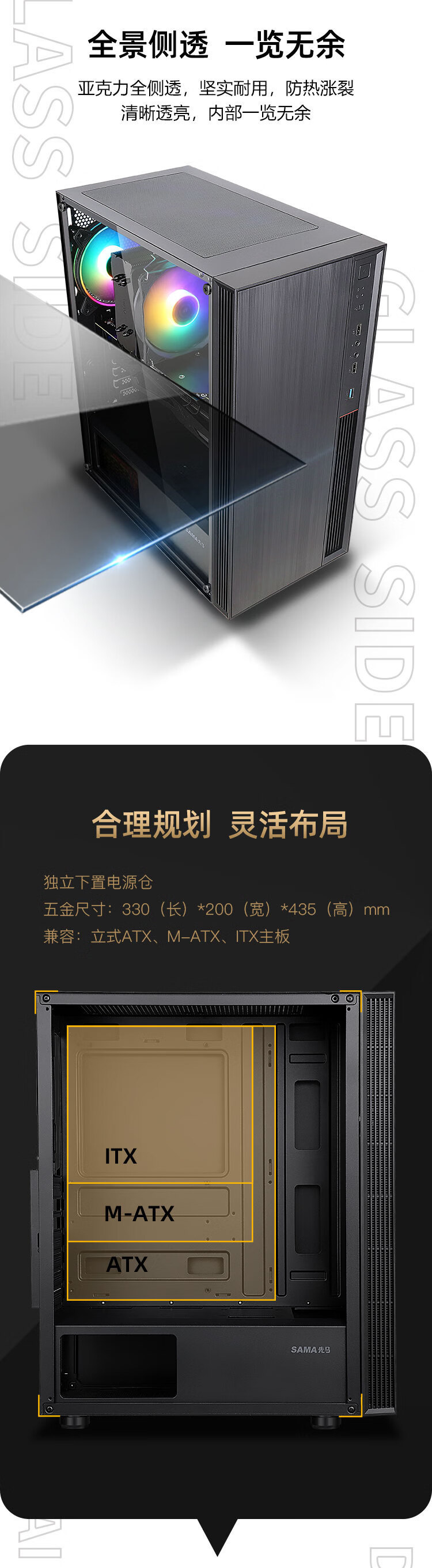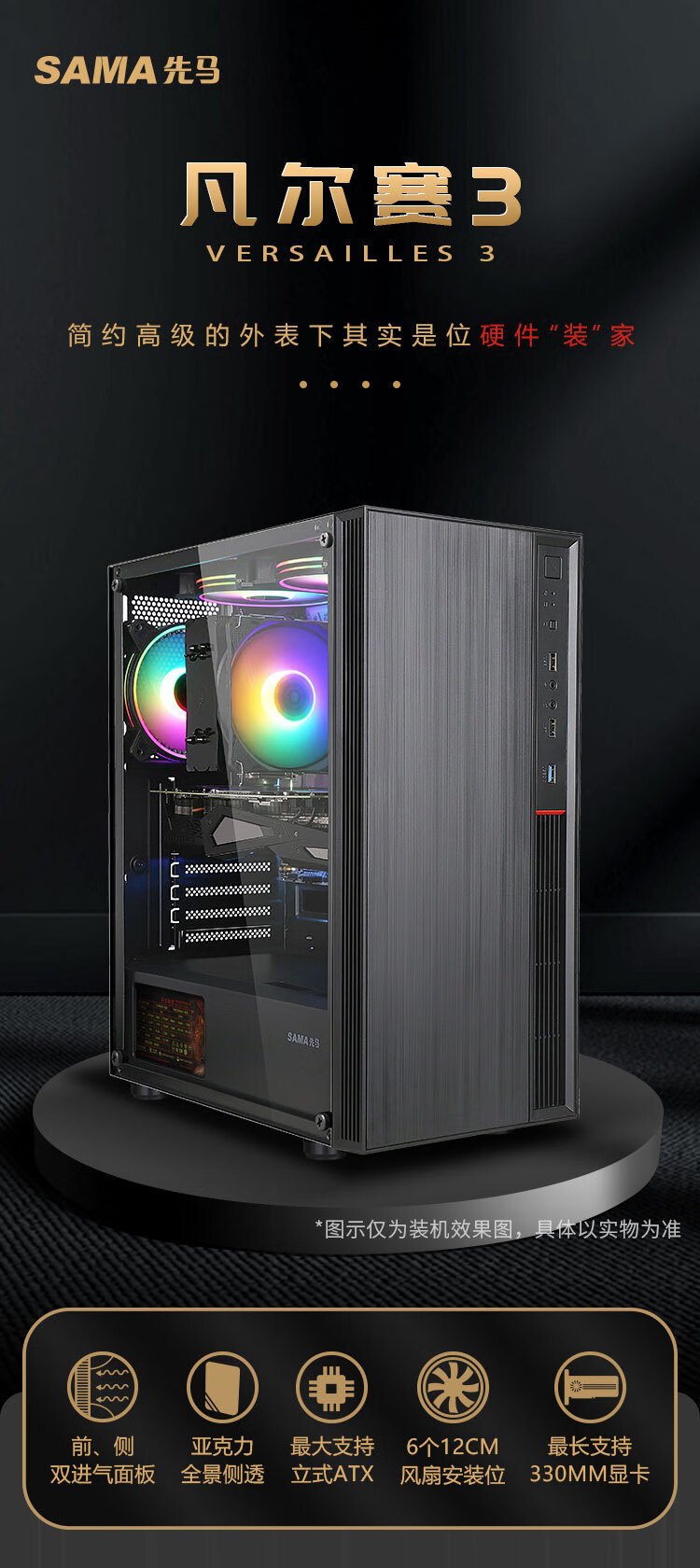 SAMA Versailles 3 데스크탑 섀시는 ATX 마더 보드 360 물 냉각/아크릴 전체 측면 침투를 지원합니다.