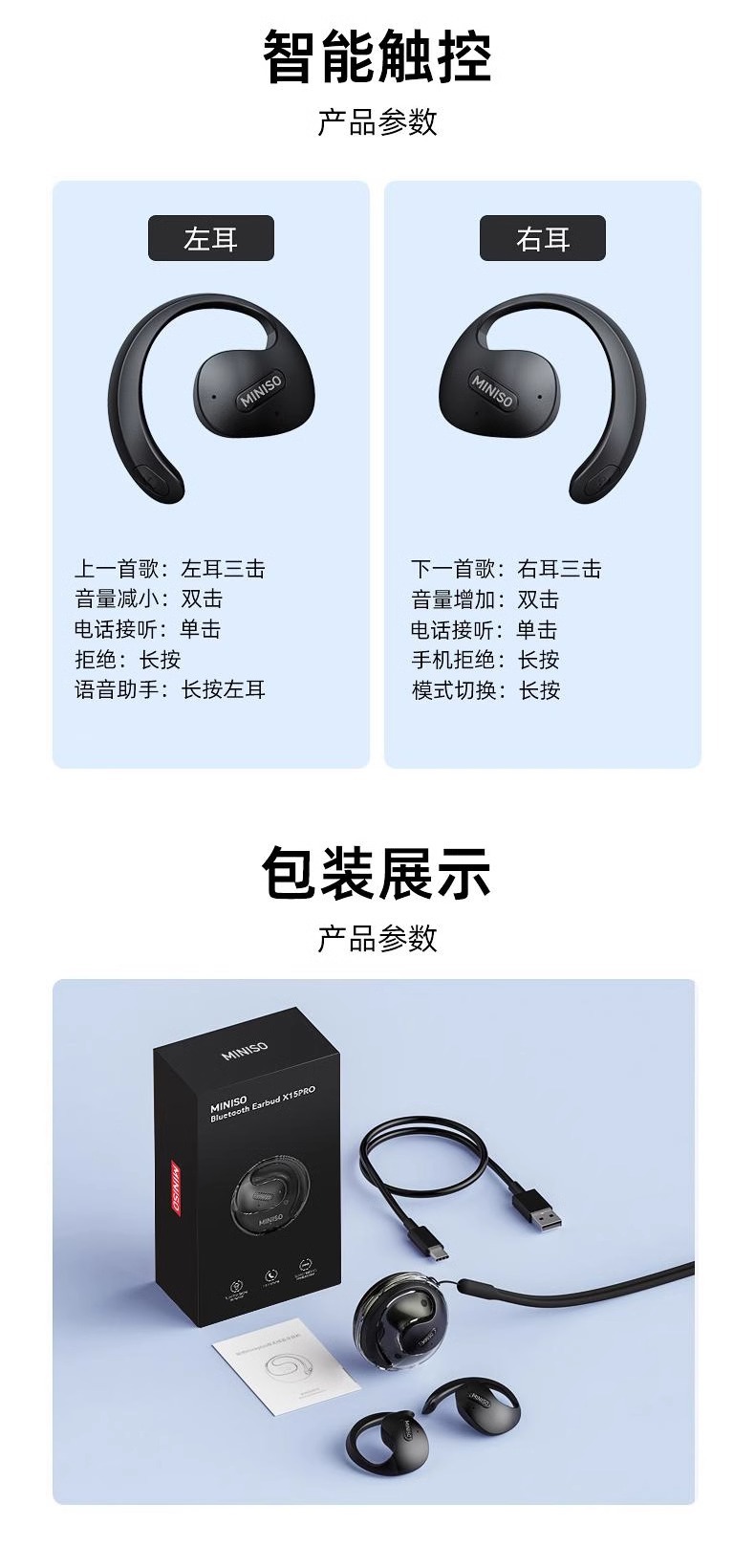 파워 X15pro 작은 코코넛 볼 디자인 무선 블루투스 5.4 걸이 귀 헤드폰 높은 음질 낮은 지연 소음 감소스토어 가기