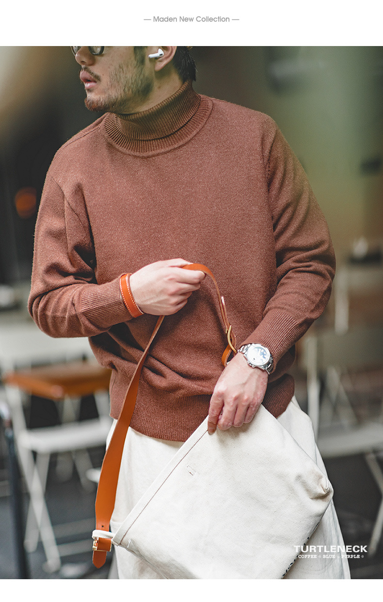 매든 툴링 미국 캐주얼 솔리드 컬러 작은 터틀넥 스웨터 따뜻한 라젤 기본베이스 스웨터 남자의 가을스토어 가기