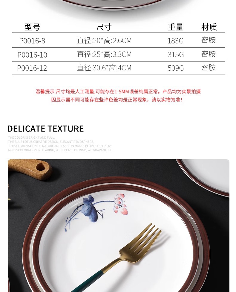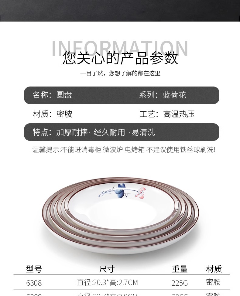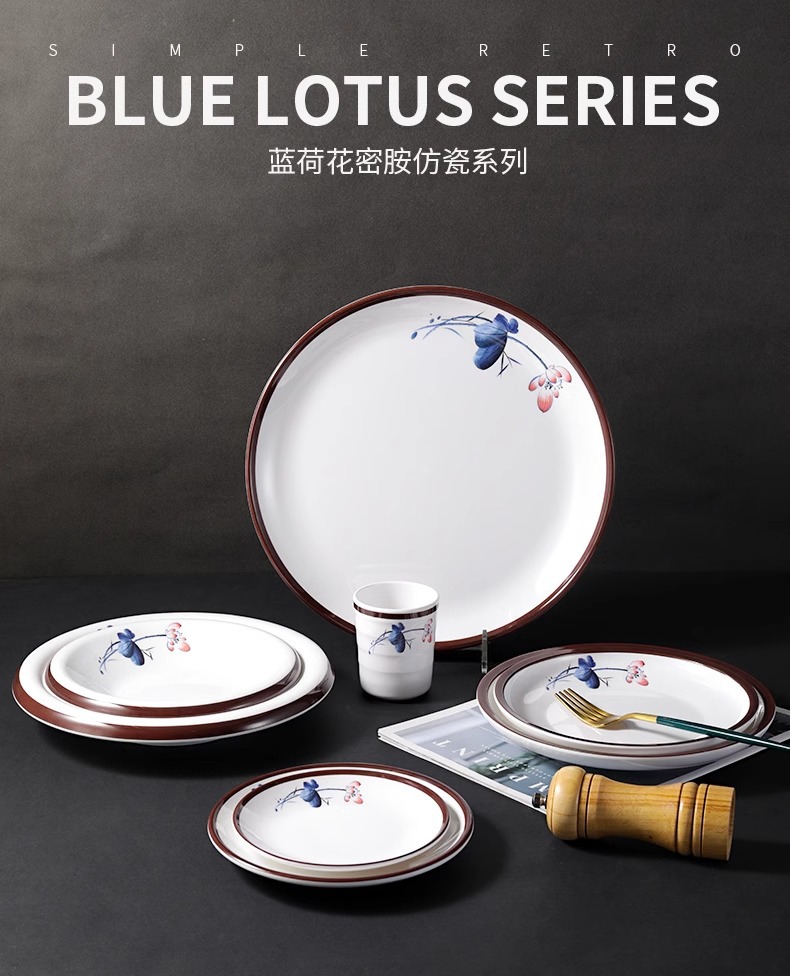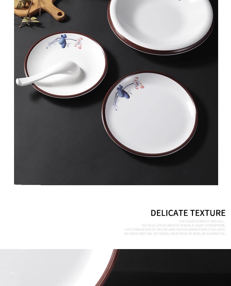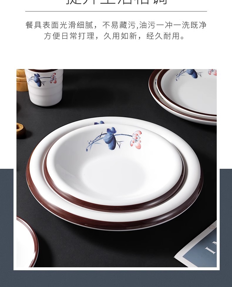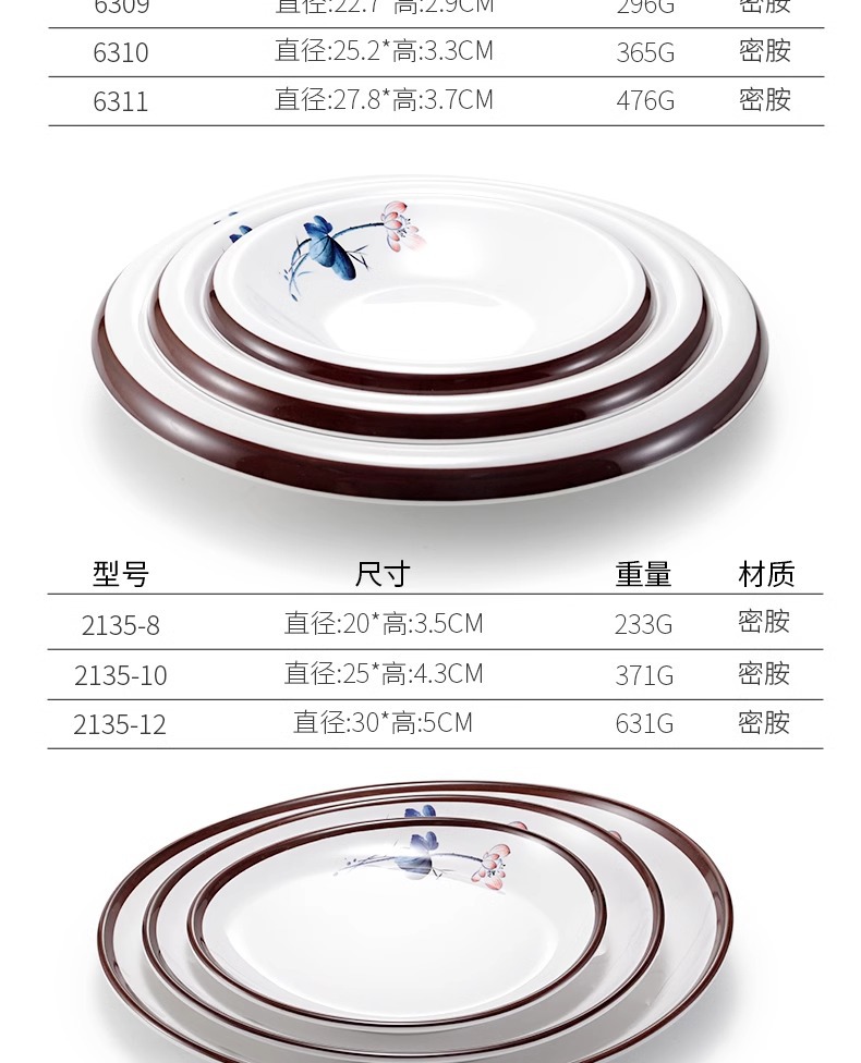 멜라민 둥근 얕은 접시 레스토랑 차가운 접시 상업 볶음 판 플라스틱 플레이트 모방 도자기 플레이트 창조적 인 깊은 접시