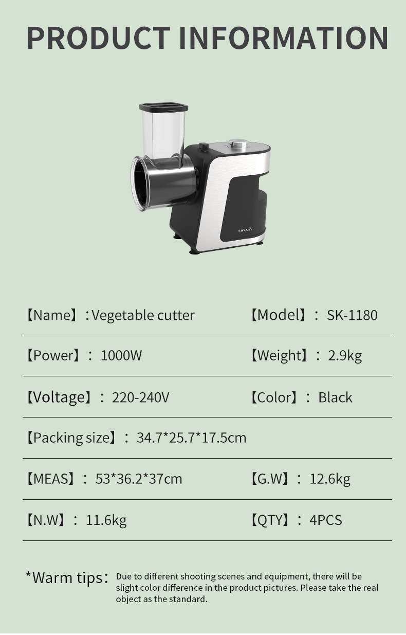국경 간 유럽 게이지 전기 야채 커터 다기능 야채 커터 파쇄 및 슬라이스 통합 기계 감자 강판 오이