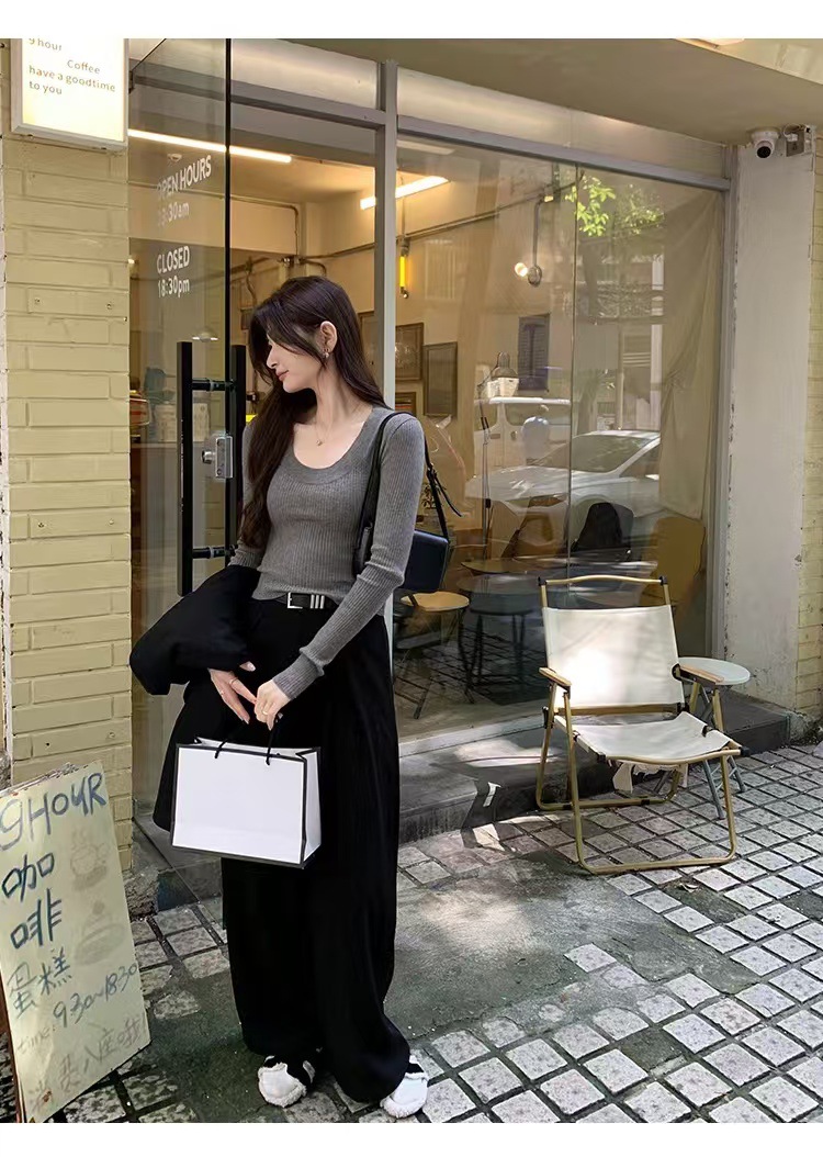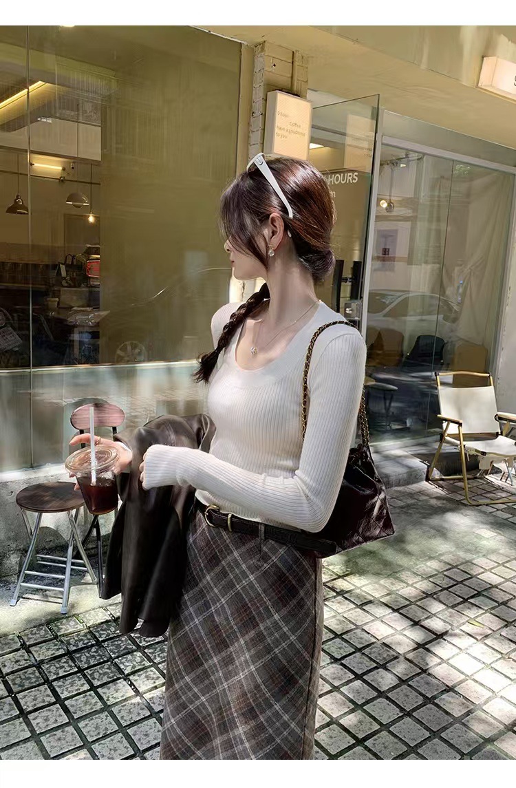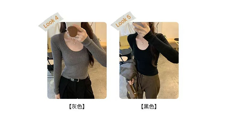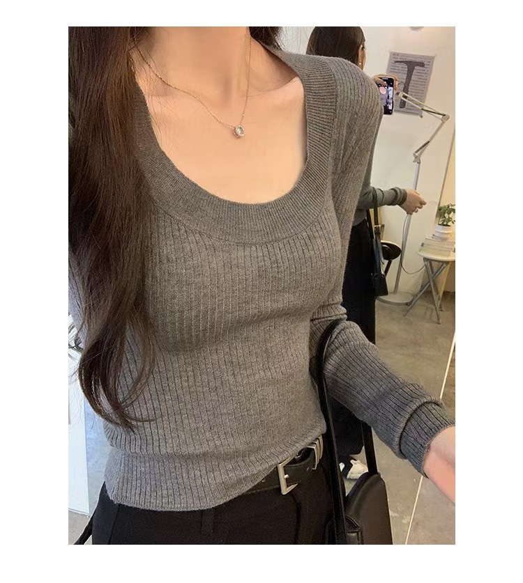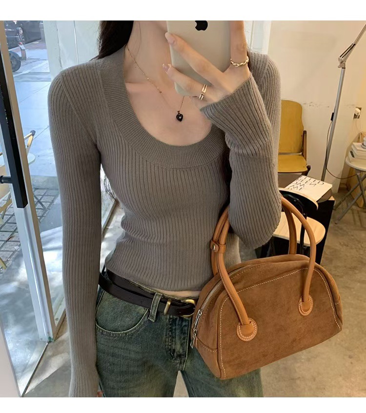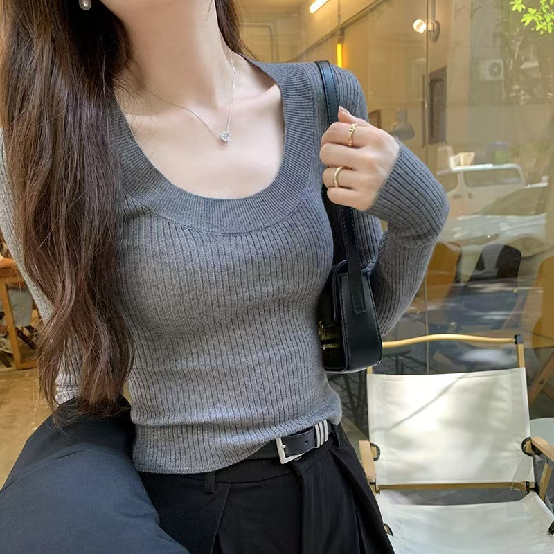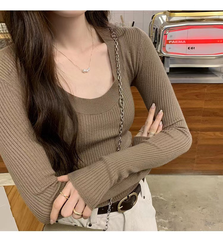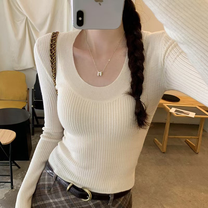 샤넬 스타일 하이 엔드 슈퍼 잘 생긴 U 칼라 내베이스 스웨터 여성 가을 겨울 새로운 한국 슬림 핏 쇼트 탑