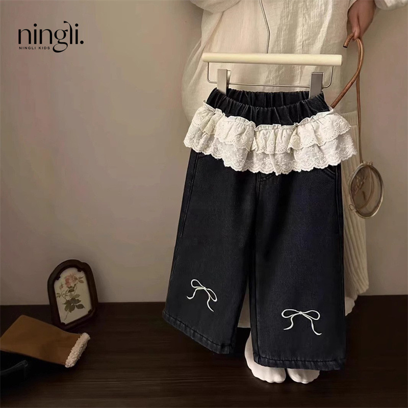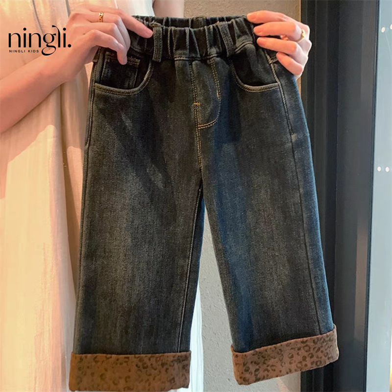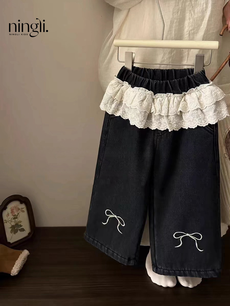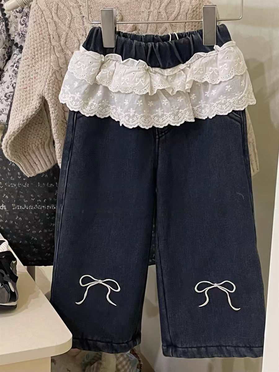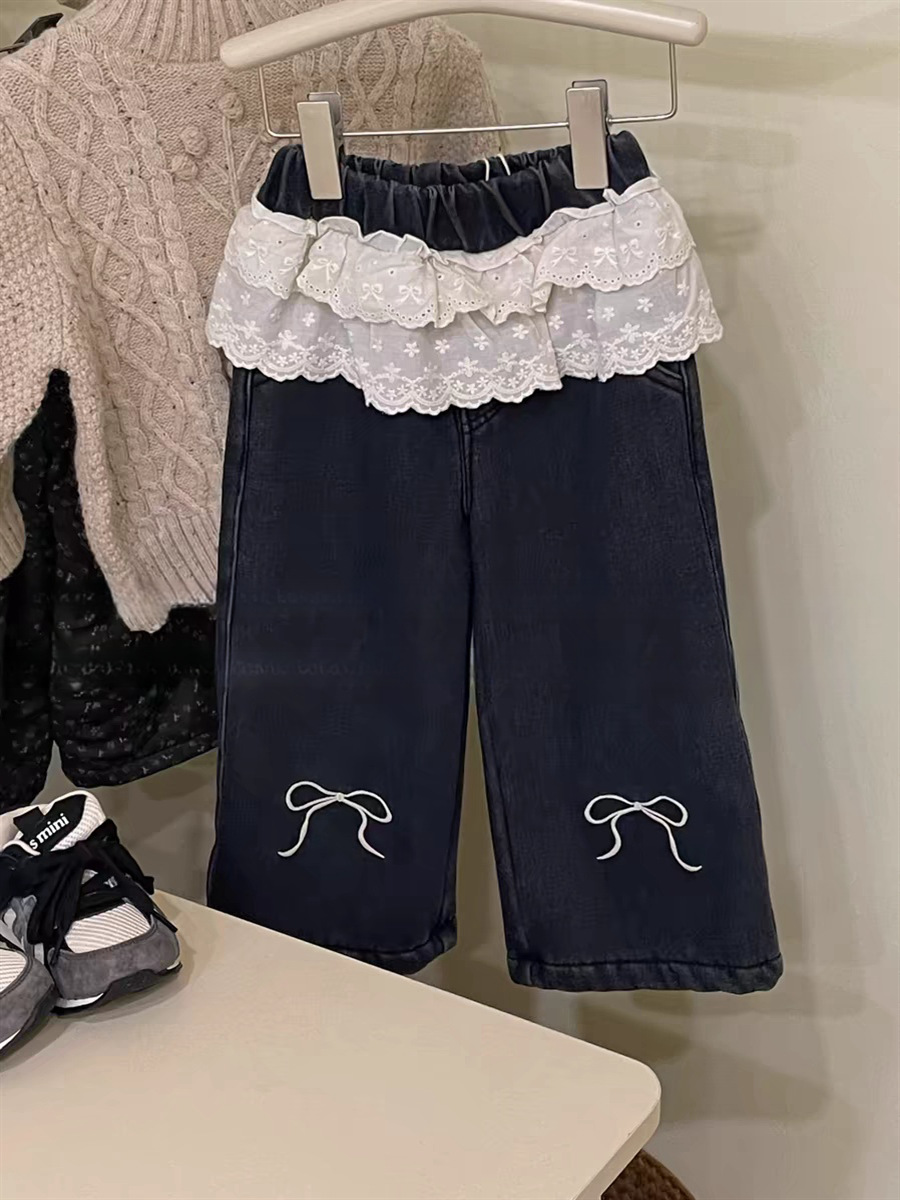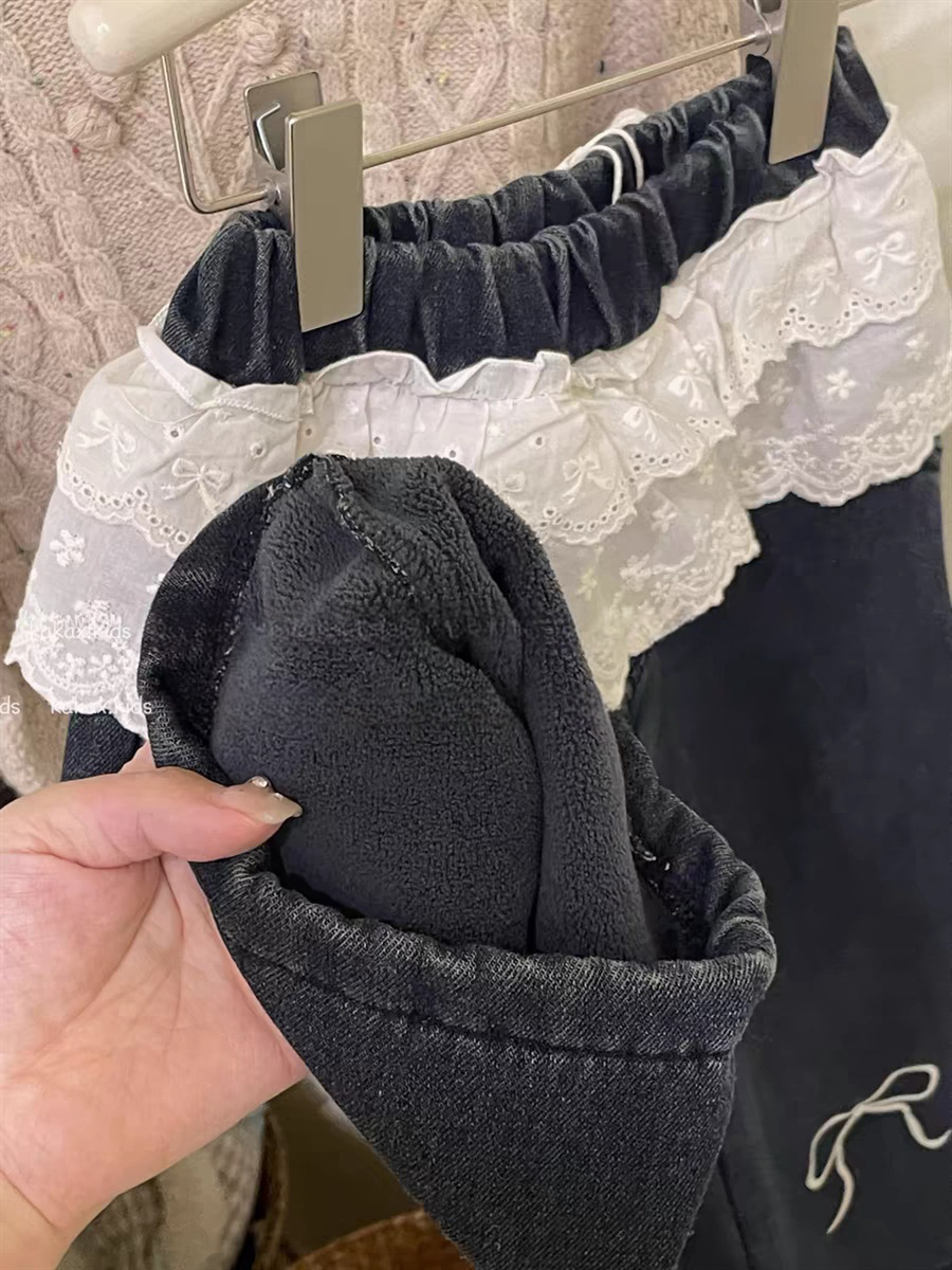 여자를위한 라임 슈퍼웨어 청바지 가을 겨울 한국 레이스 허리 자수 활 기모 청바지 트렌디스토어 가기