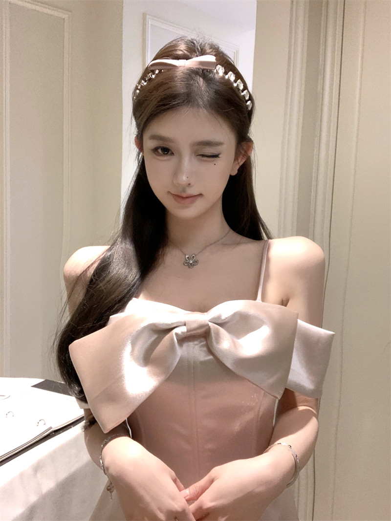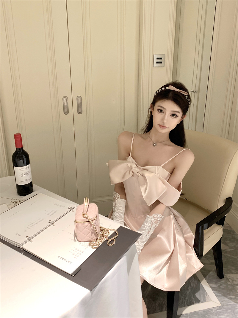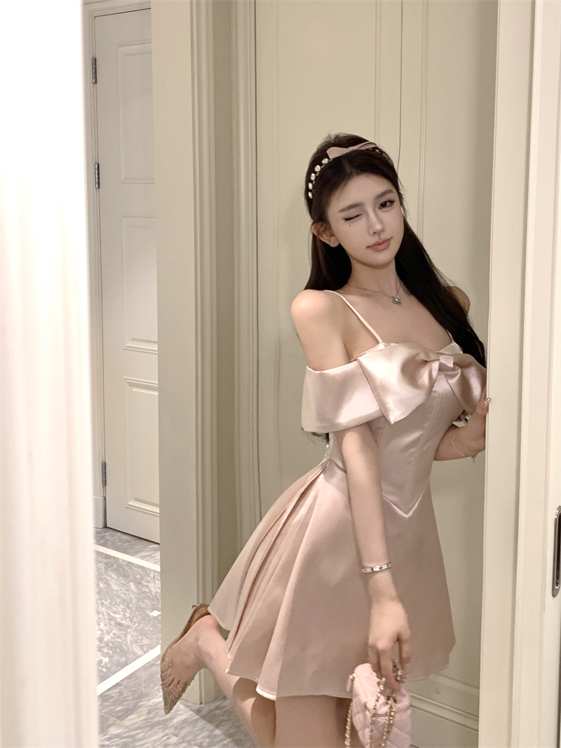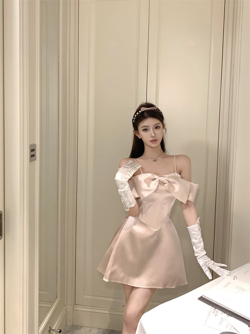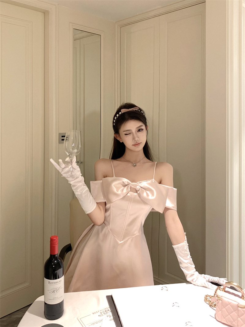 어깨 끈이없는 원피스 여성 성인 의식 원피스 핑크 활 생일 원피스 퍼프 공주 원피스스토어 가기