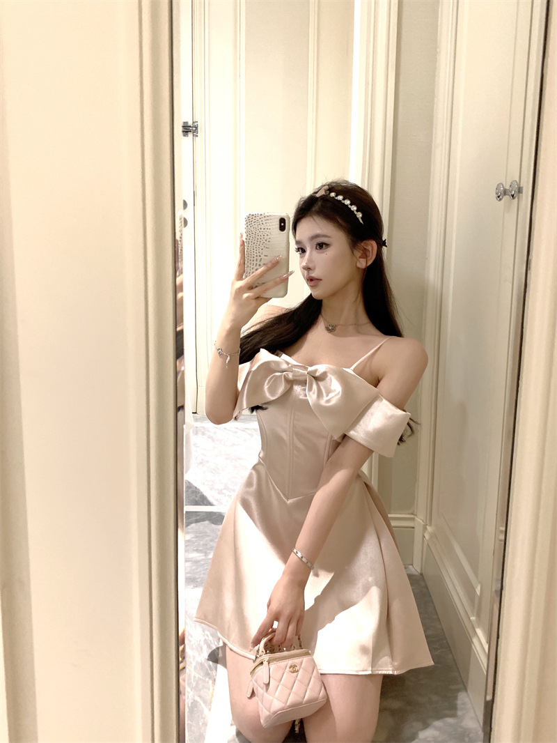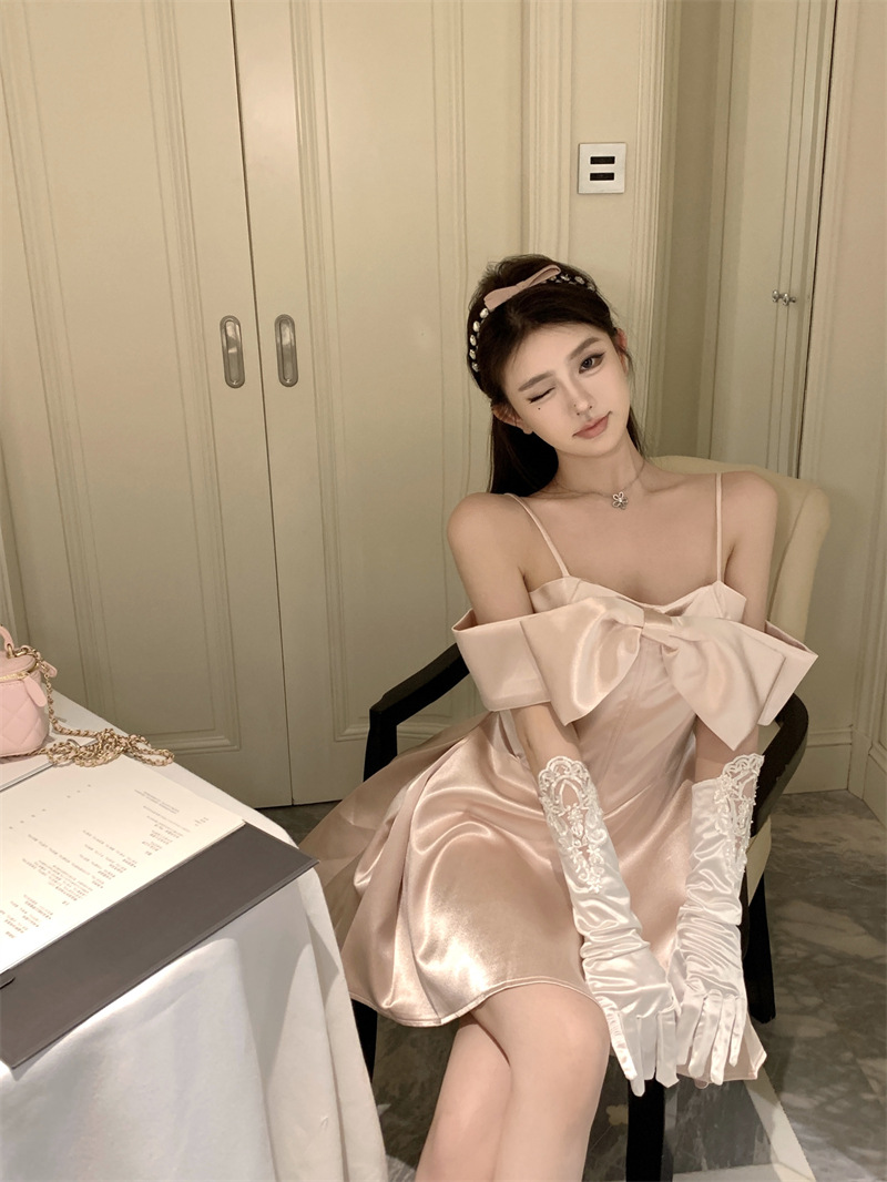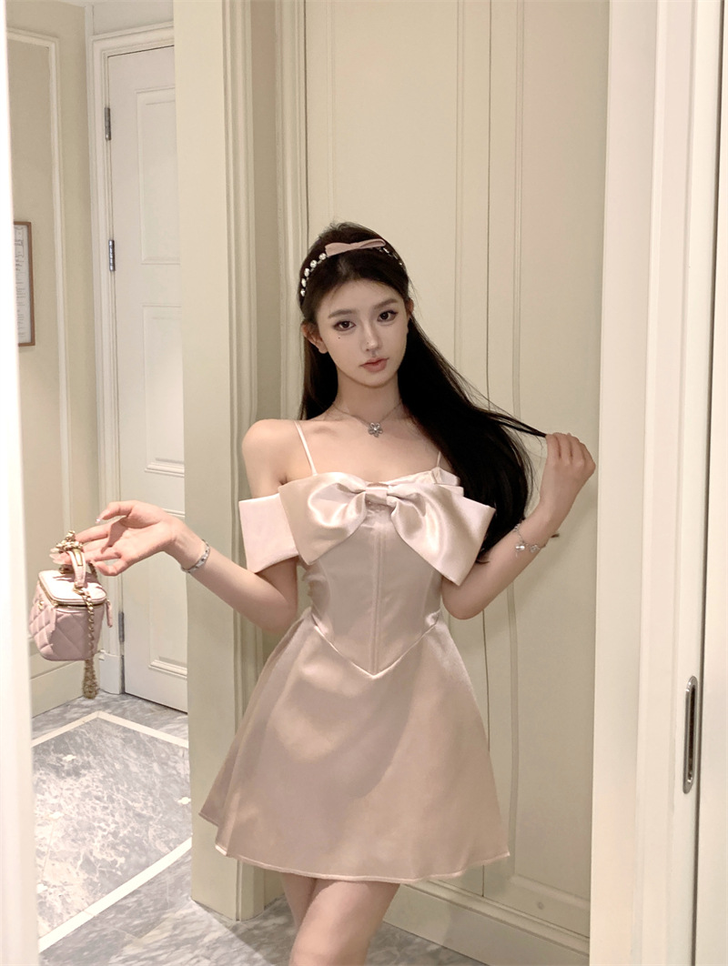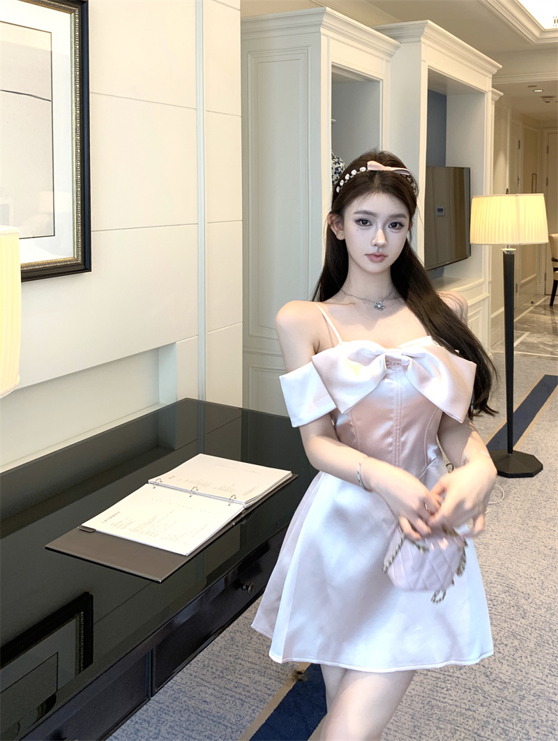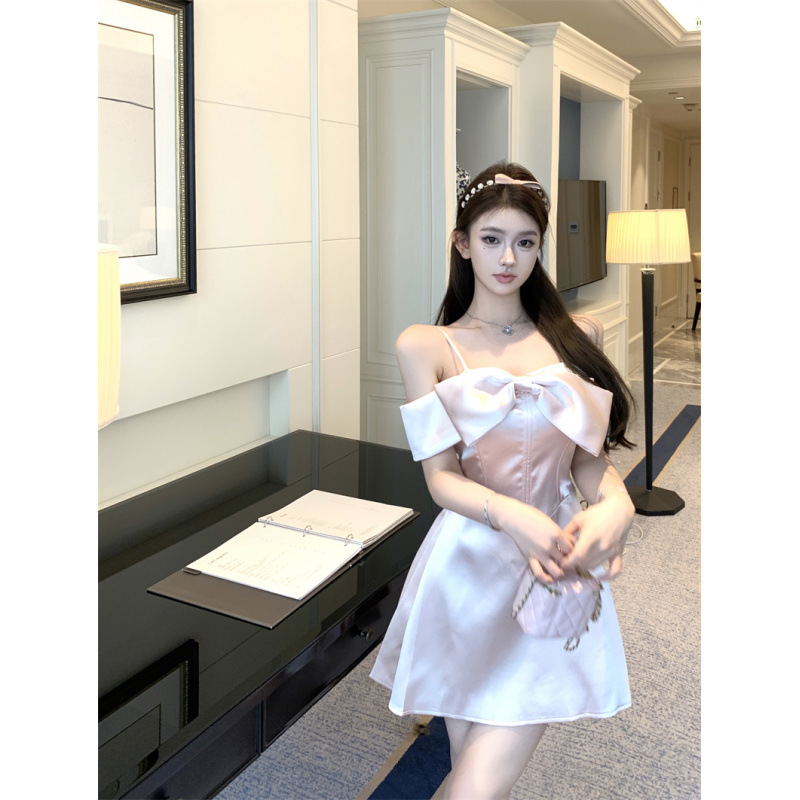 어깨 끈이없는 원피스 여성 성인 의식 원피스 핑크 활 생일 원피스 퍼프 공주 원피스스토어 가기