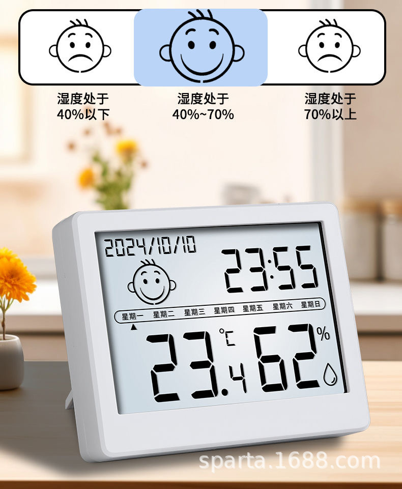 정밀 디지털 온도계 데스크탑 전자 온도 및 습도 측정기 알람 시계 모성 및 유아 가정용 벽 장착 온도 및 습도 실내 및 실외스토어 가기