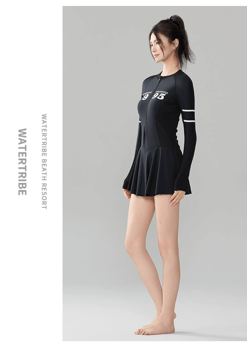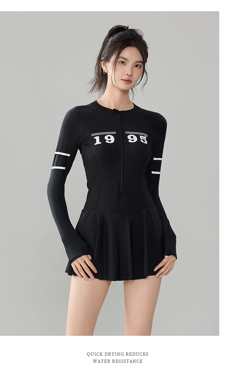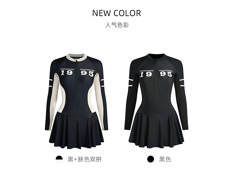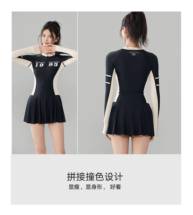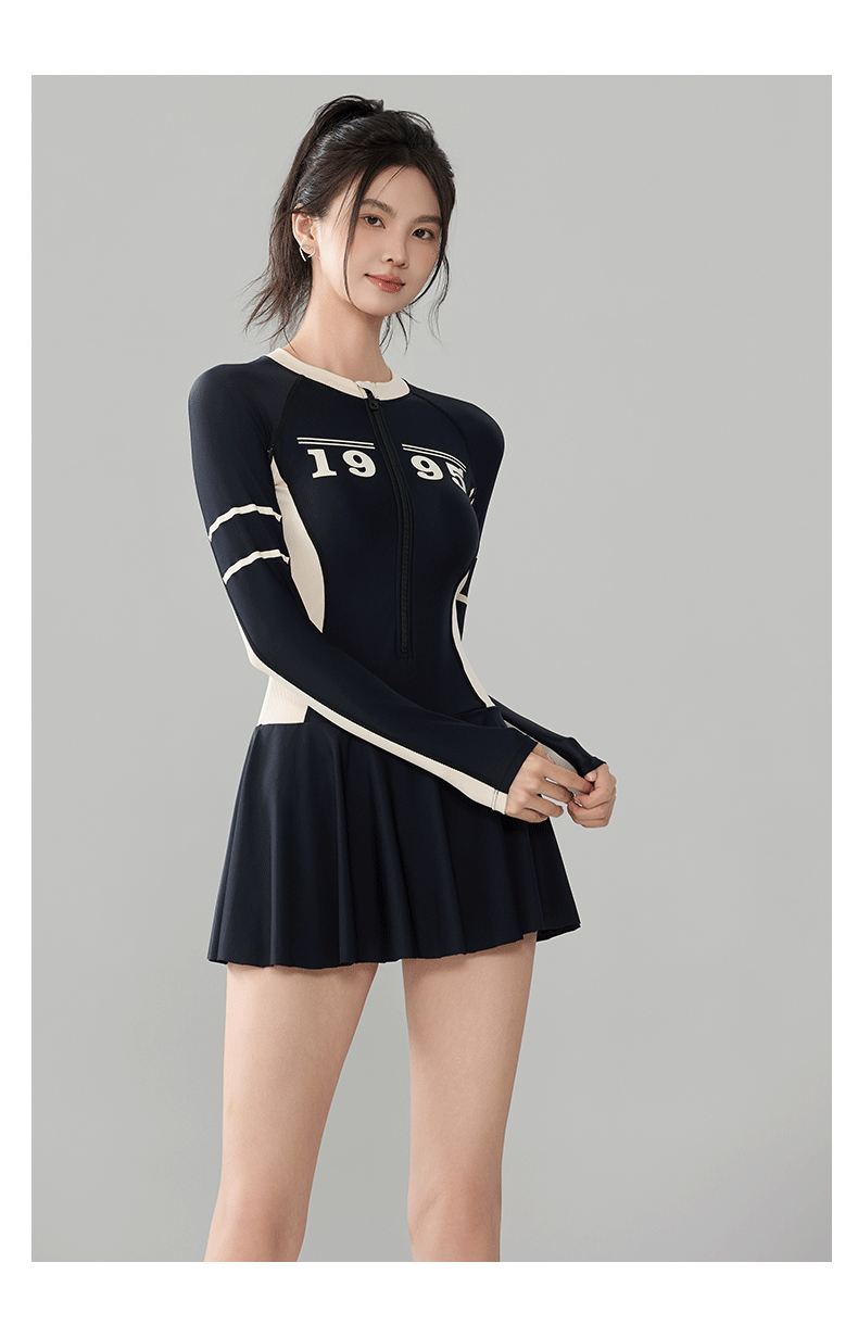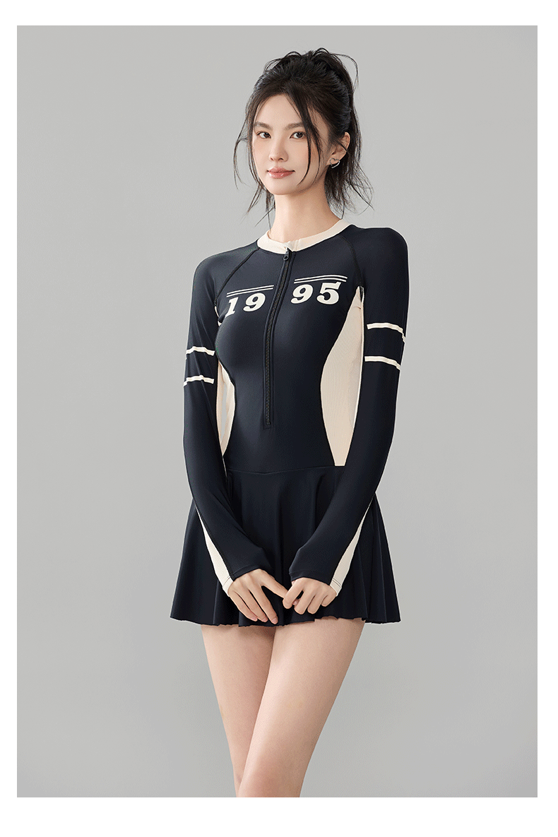 푸치 2025 신상 스포츠 수영복 섹시 수영복 플러스 사이즈 배색 원피스 수영 스커트 긴팔 다이빙 슈트 여성용 속건