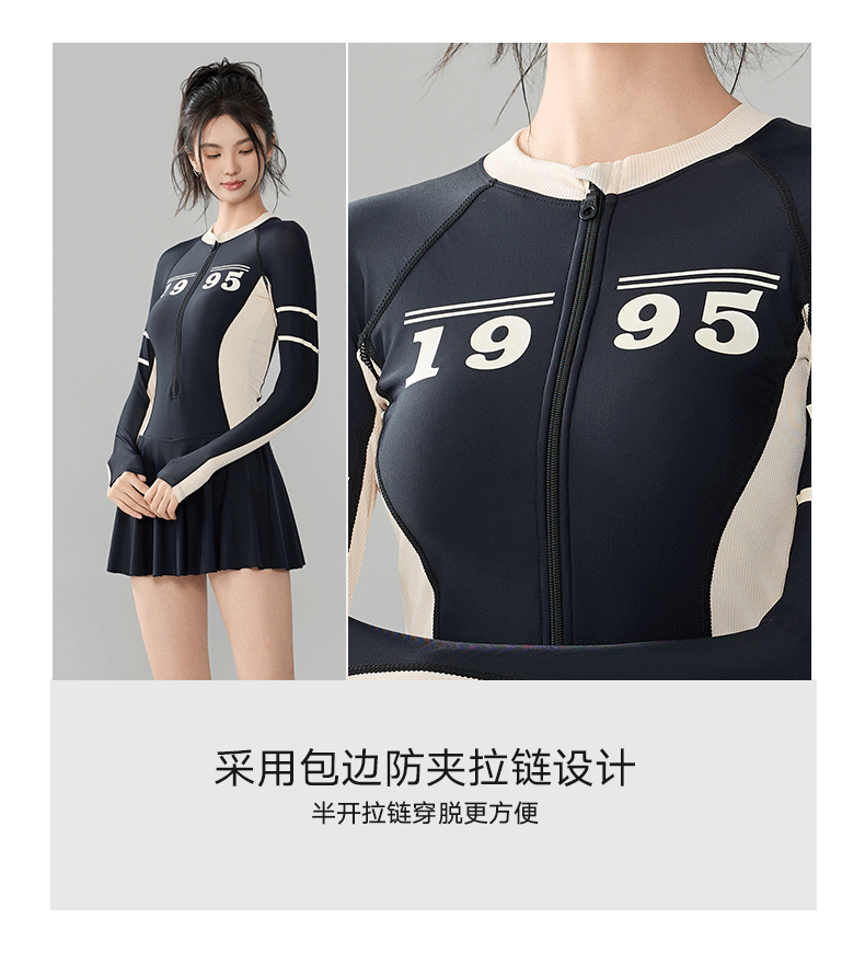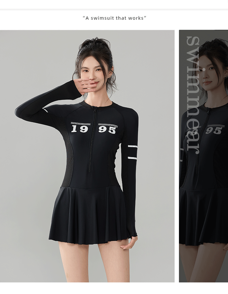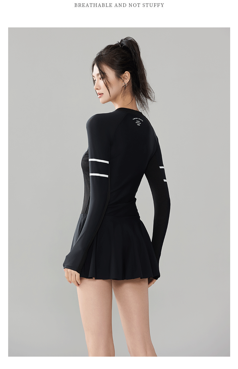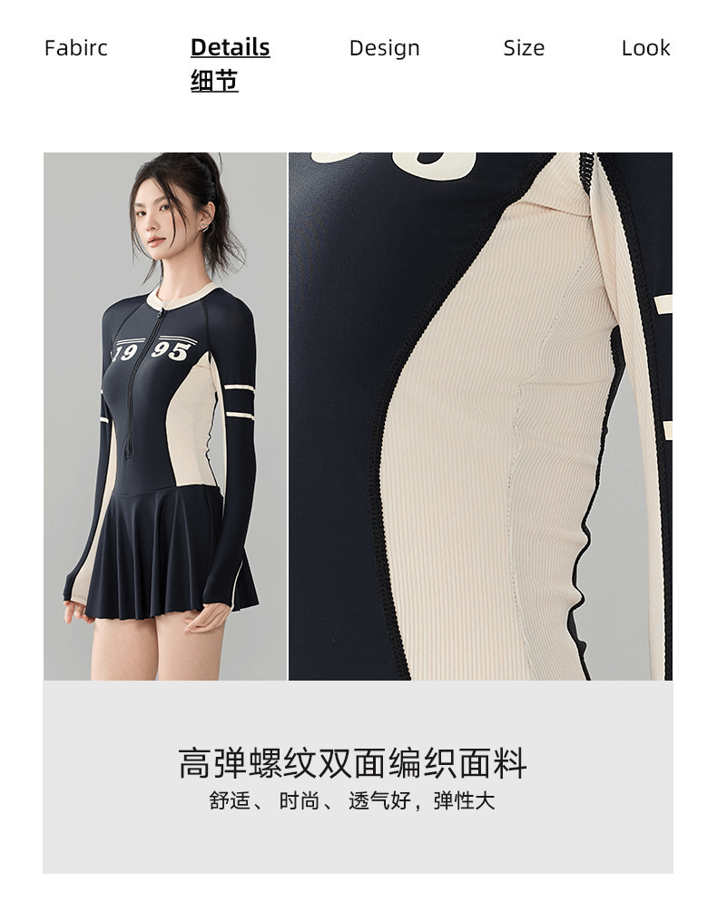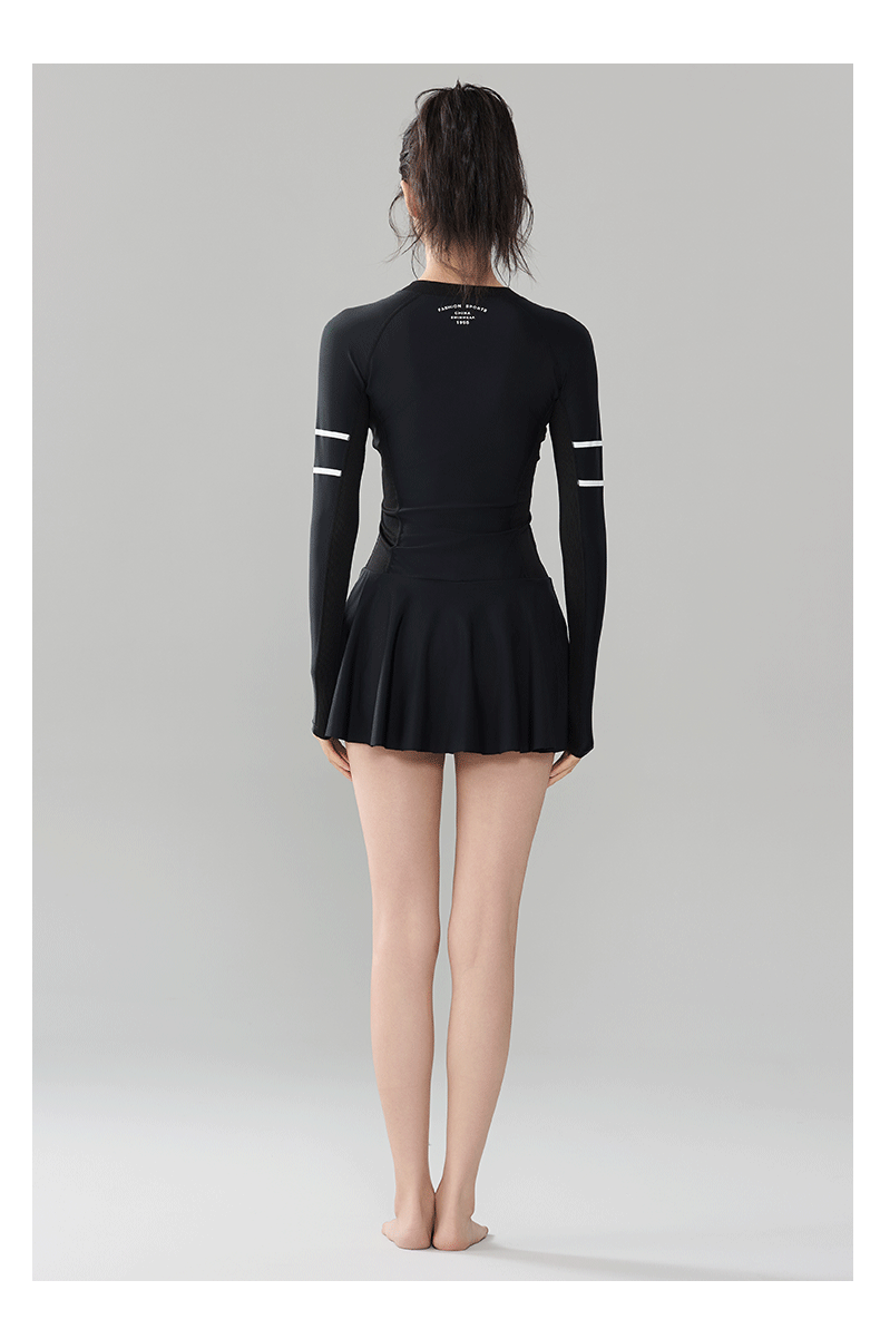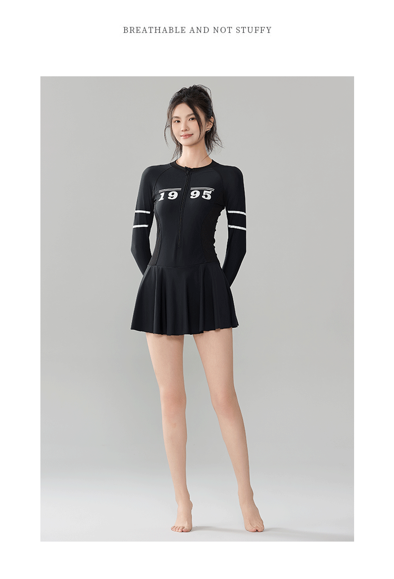 푸치 2025 신상 스포츠 수영복 섹시 수영복 플러스 사이즈 배색 원피스 수영 스커트 긴팔 다이빙 슈트 여성용 속건