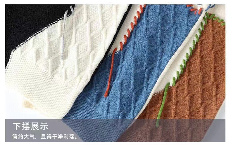 남성용 스웨터 바느질 대비 컬러 겨울 아메리칸 스타일 캐주얼 디자인 센스 니트 스웨터 남성용 느슨한 게으른 스타일 스웨터스토어 가기