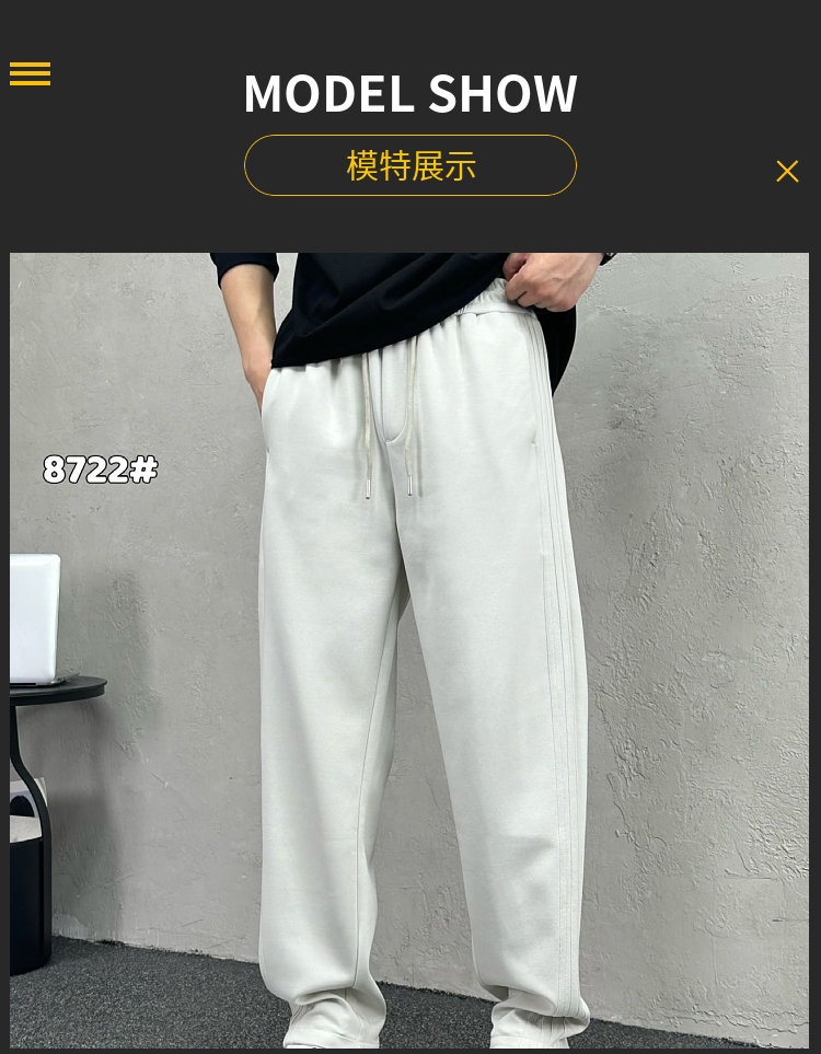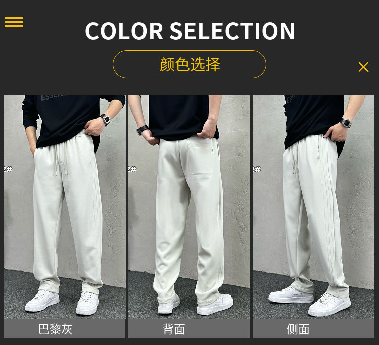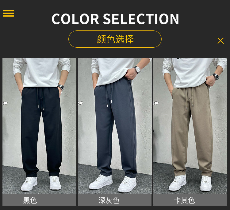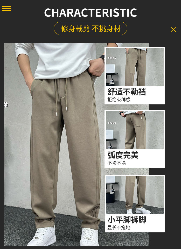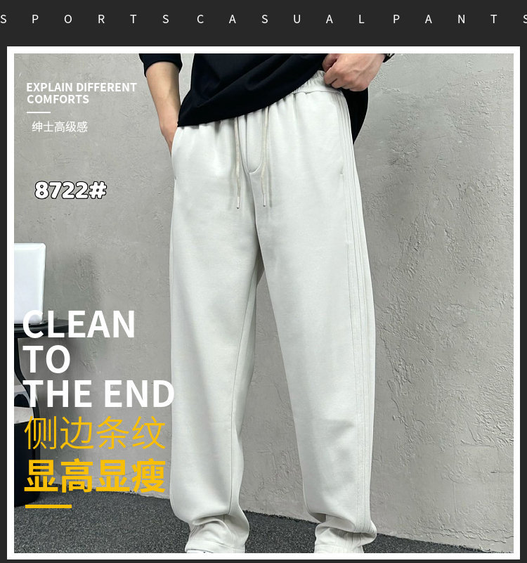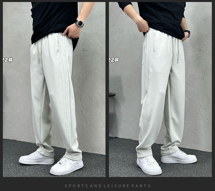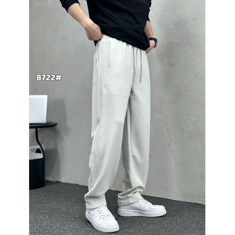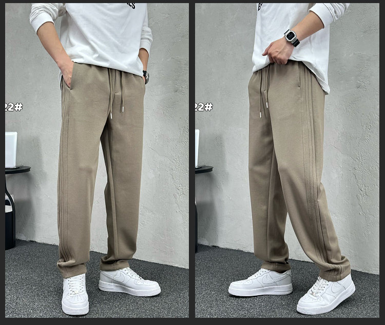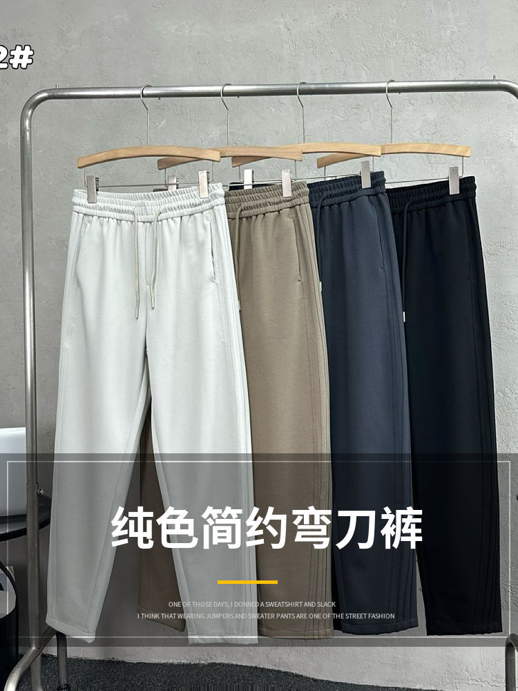 국내 모델! 2025 가을 입체적인 칼바지 스타일의 루즈핏 바나나 팬츠, 단색 캐주얼 팬츠, 남성용 스웨트팬츠