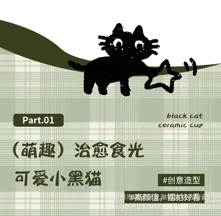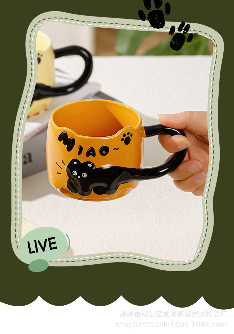 양각 작은 검은 고양이 머그잔 높은 색상 가치 창조적 인 스태킹 컵 귀여운 세라믹 컵 커피 우유 아침 식사 컵 유약 아래스토어 가기